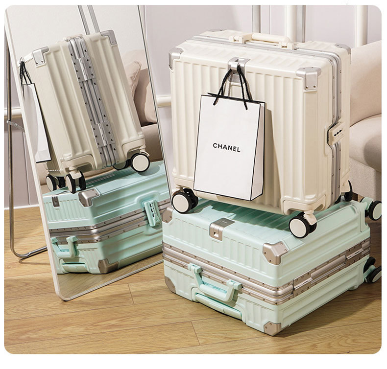 인기 알루미늄 프레임 여행가방 18inch 기내용 가방, 남녀공용 고급스러운 디자인의 트롤리 여행가방, 비밀번호 잠금장치 포함스토어 가기