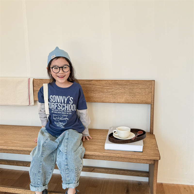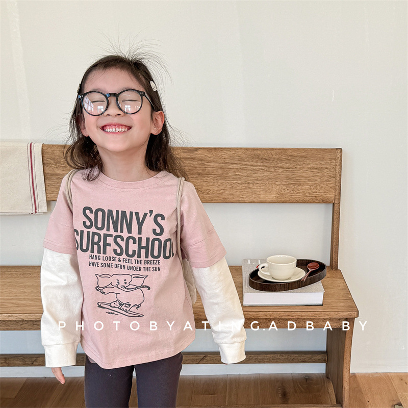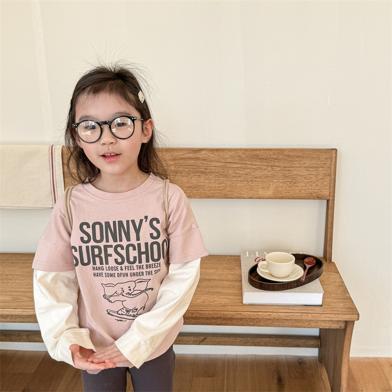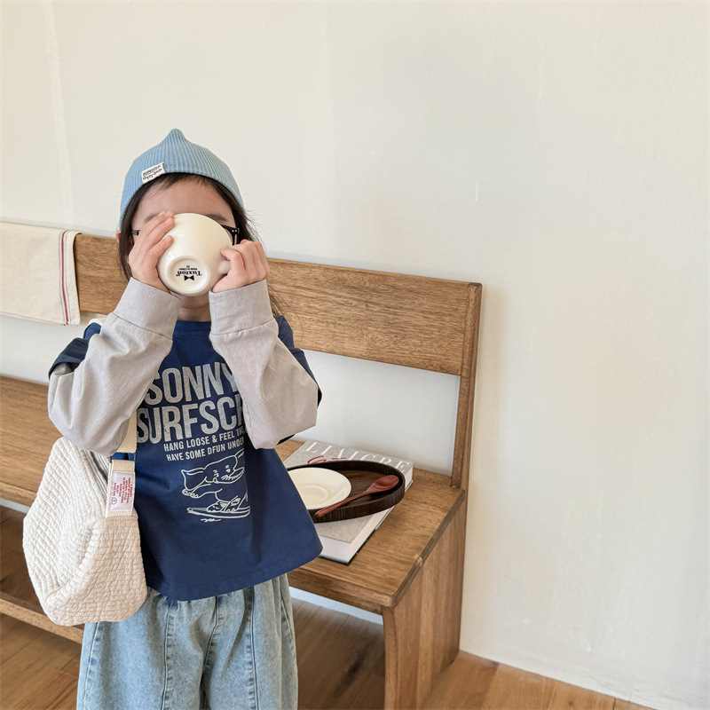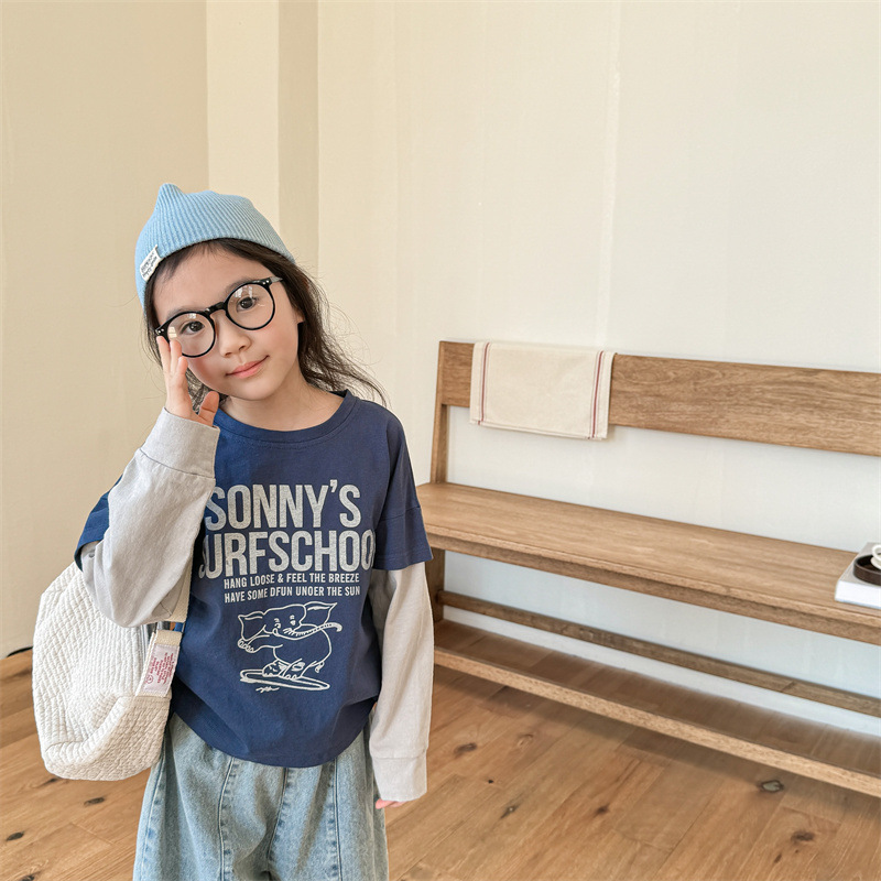 2025 가을 아동복 새로운 어린이 한국 스타일 봄, 가을 긴팔 티셔츠 소년 소녀 스웨트 셔츠 바닥 셔츠 5059스토어 가기