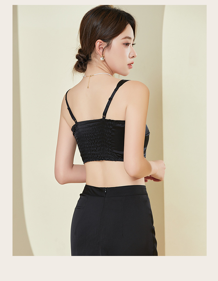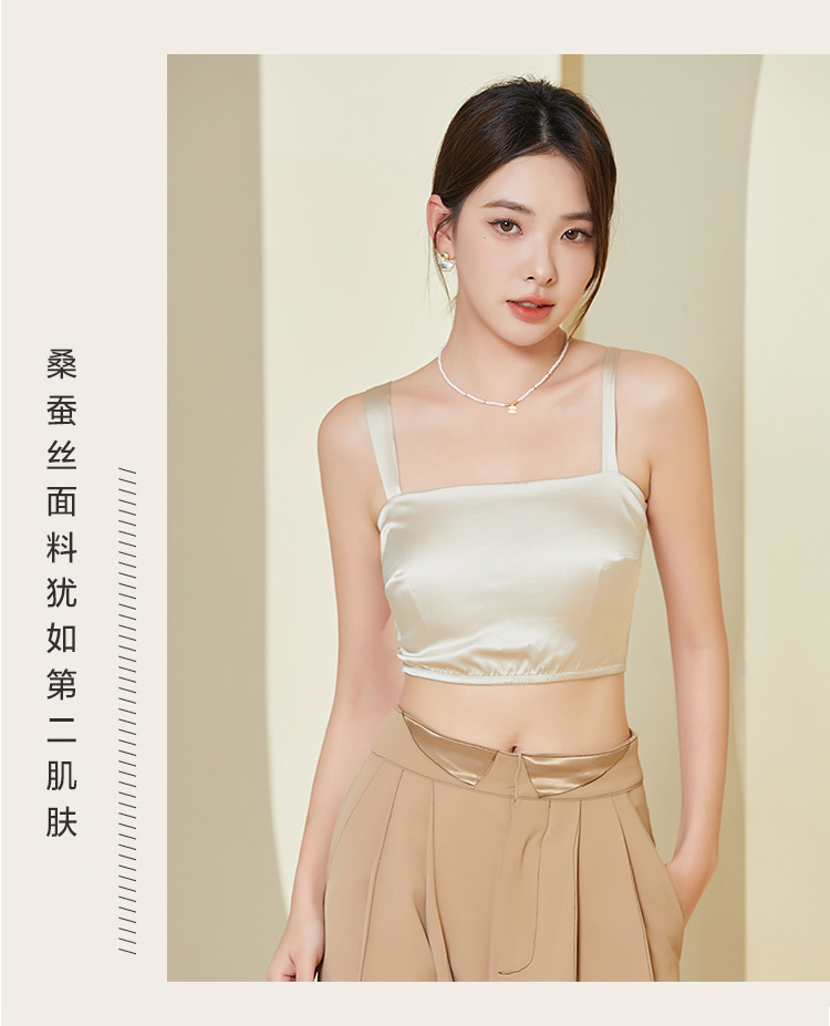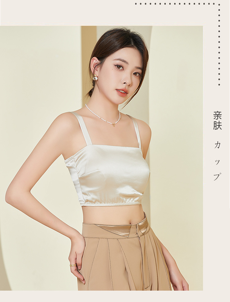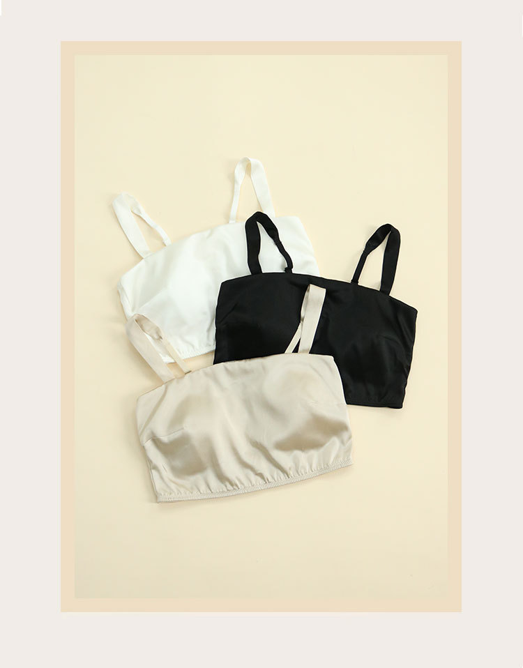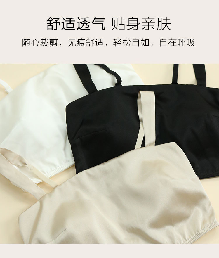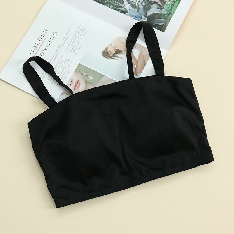 Guolian 봄/여름 새틴 실크 튜브 탑 속옷 라텍스 가슴 패드 얇은 뽕나무 실크 스트랩 브래지어 뷰티 백 속옷