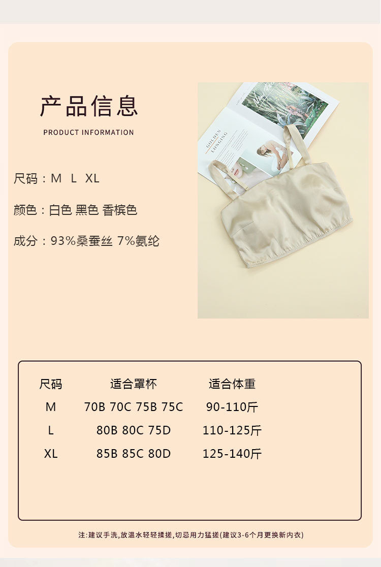 Guolian 봄/여름 새틴 실크 튜브 탑 속옷 라텍스 가슴 패드 얇은 뽕나무 실크 스트랩 브래지어 뷰티 백 속옷스토어 가기