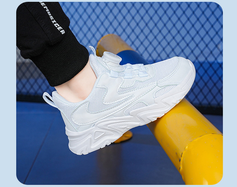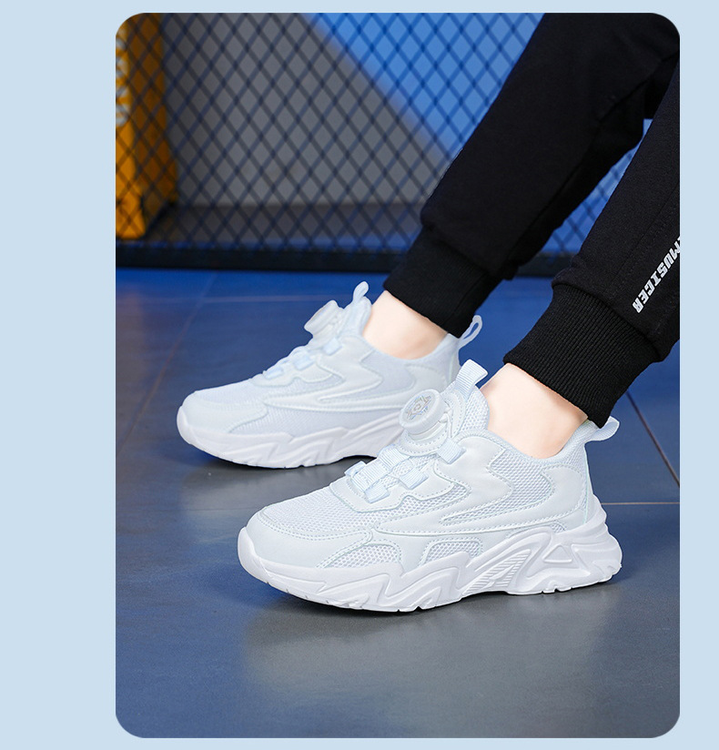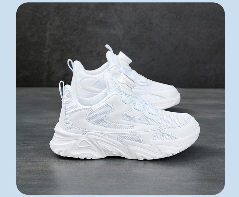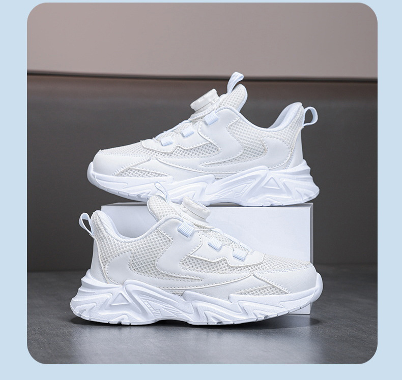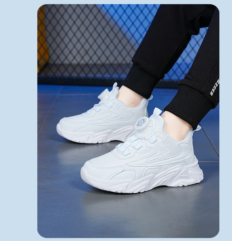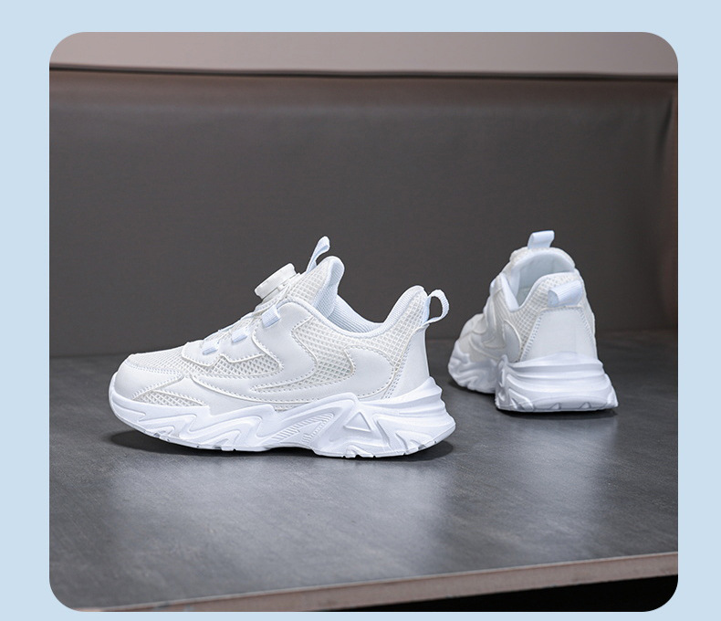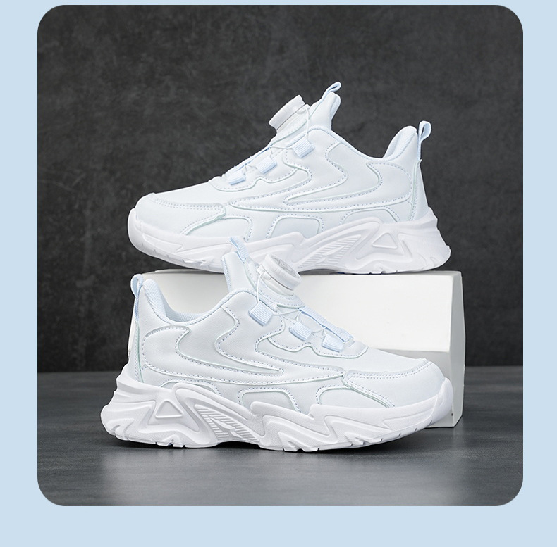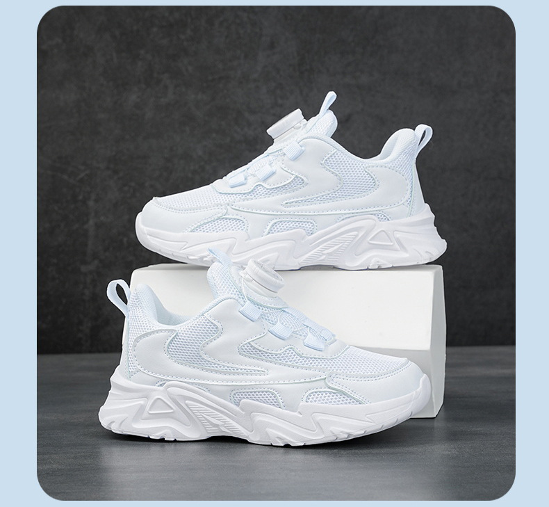 2025년 아동용 운동화, 남아용 가죽 방수, 여아용 캠퍼스 회전 버튼 메쉬 디자인, 유아 및 어린이용스토어 가기
