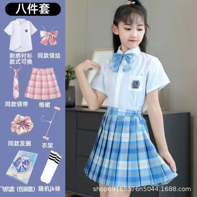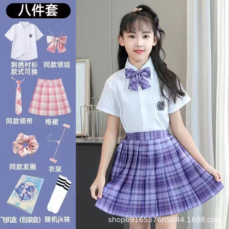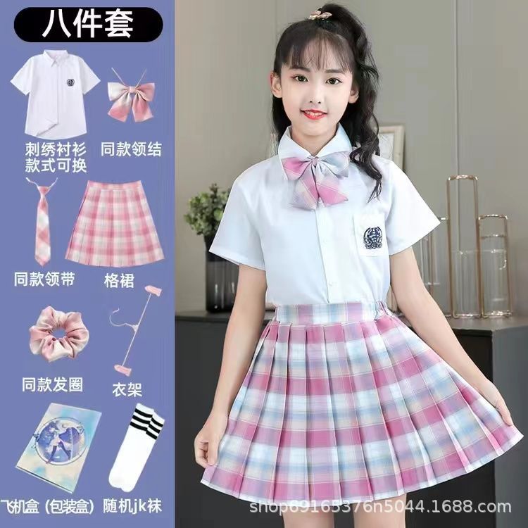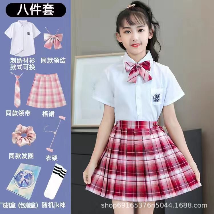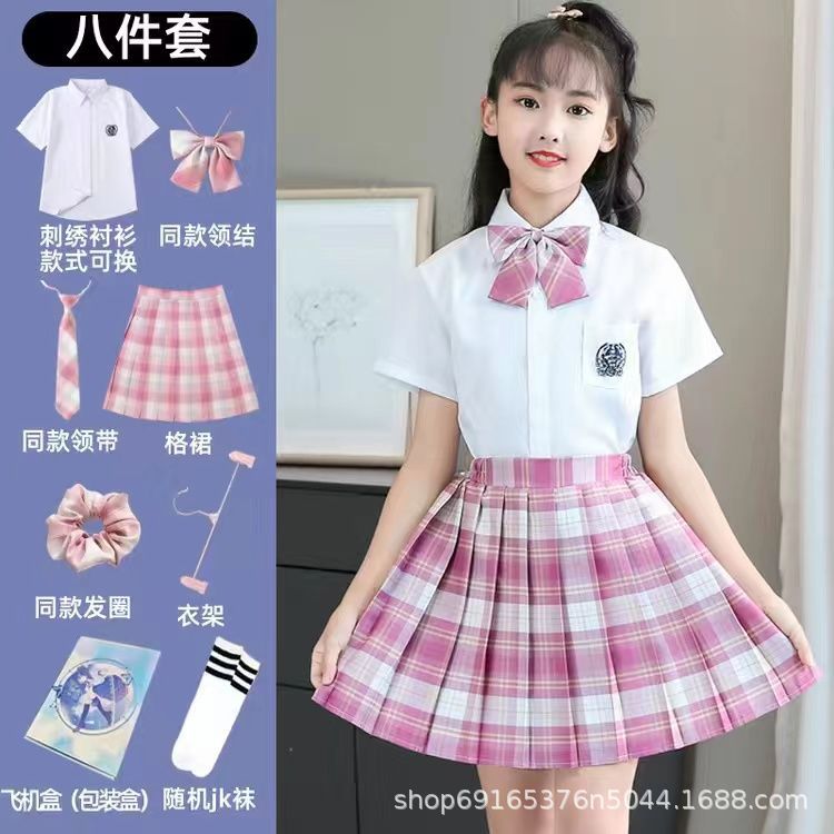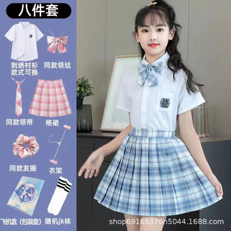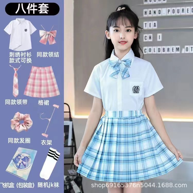 2024 여름 어린이 JK 세트 새로운 서양식 소녀 셔츠 프레피 스타일 스커트 주름 치마 졸업 공연 옷스토어 가기