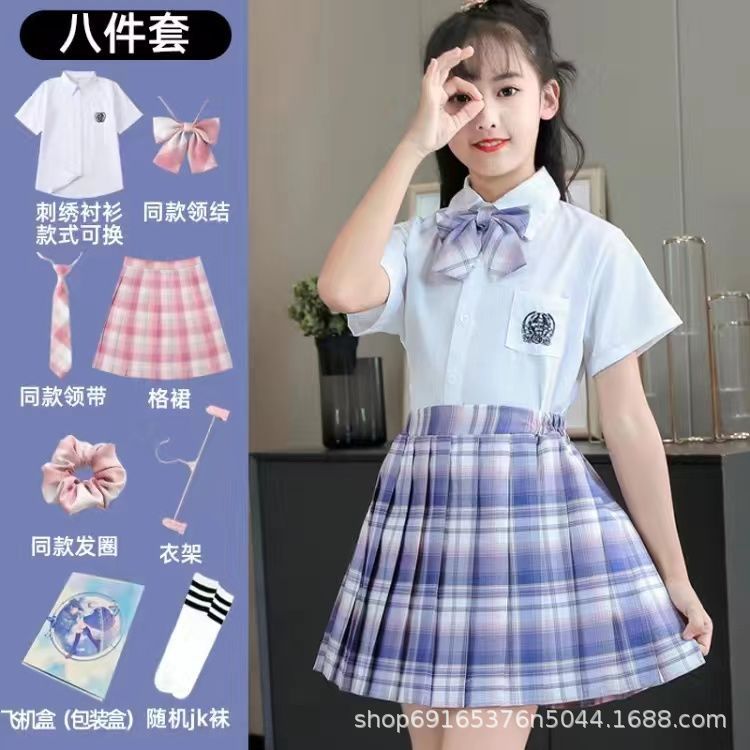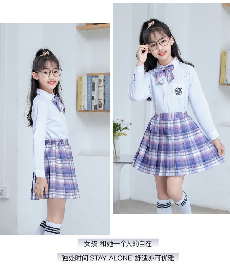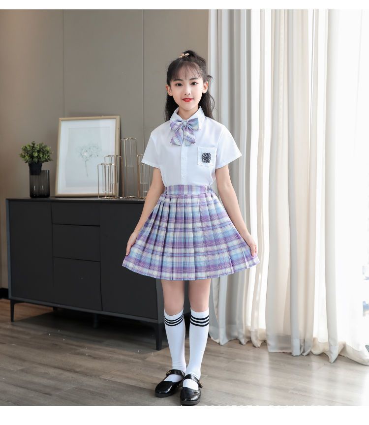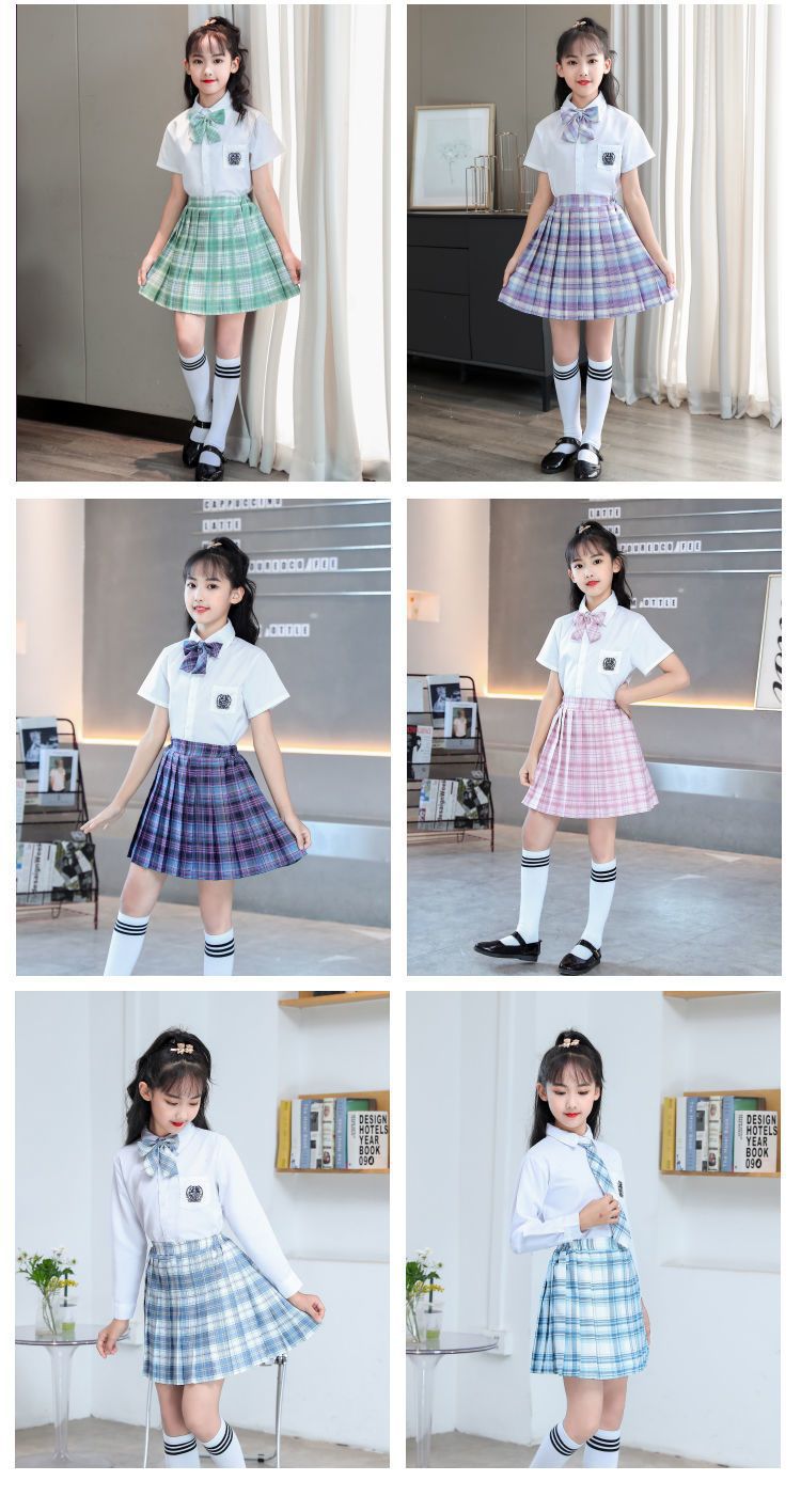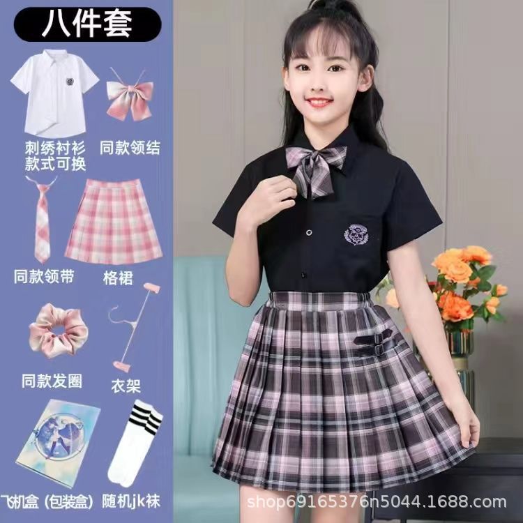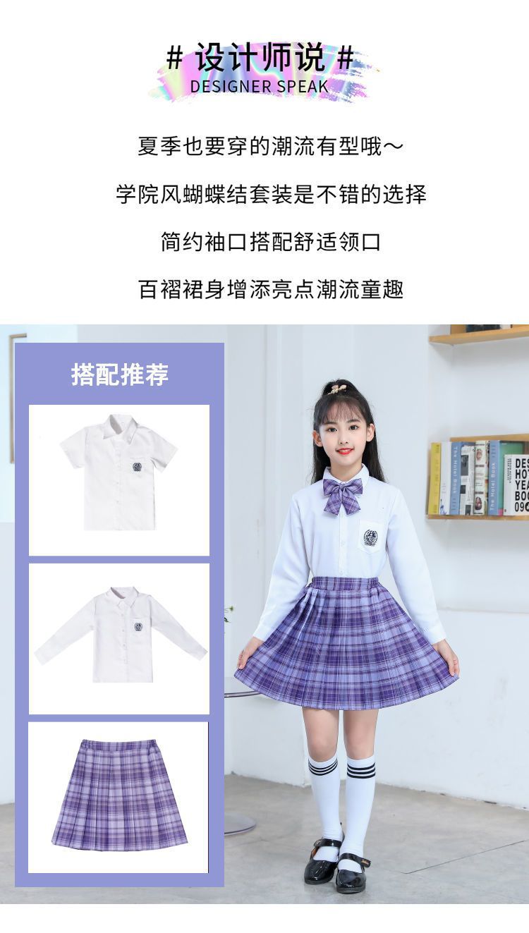 2024 여름 어린이 JK 세트 새로운 서양식 소녀 셔츠 프레피 스타일 스커트 주름 치마 졸업 공연 옷스토어 가기