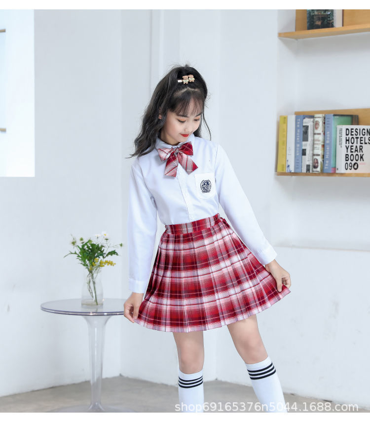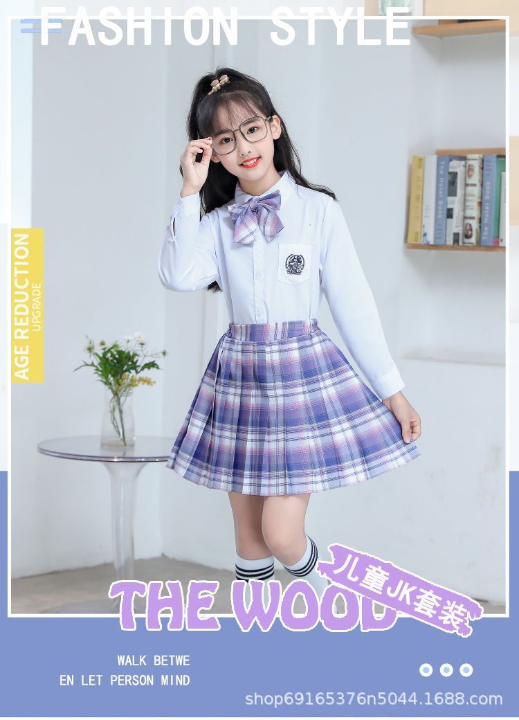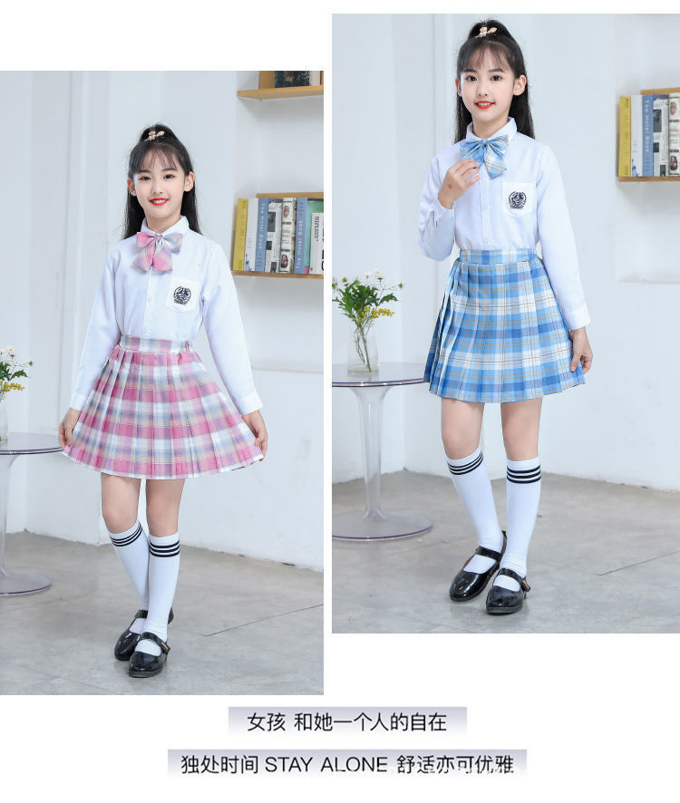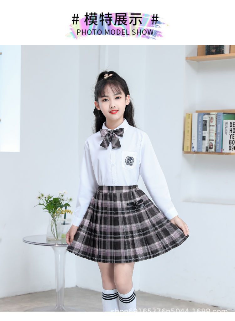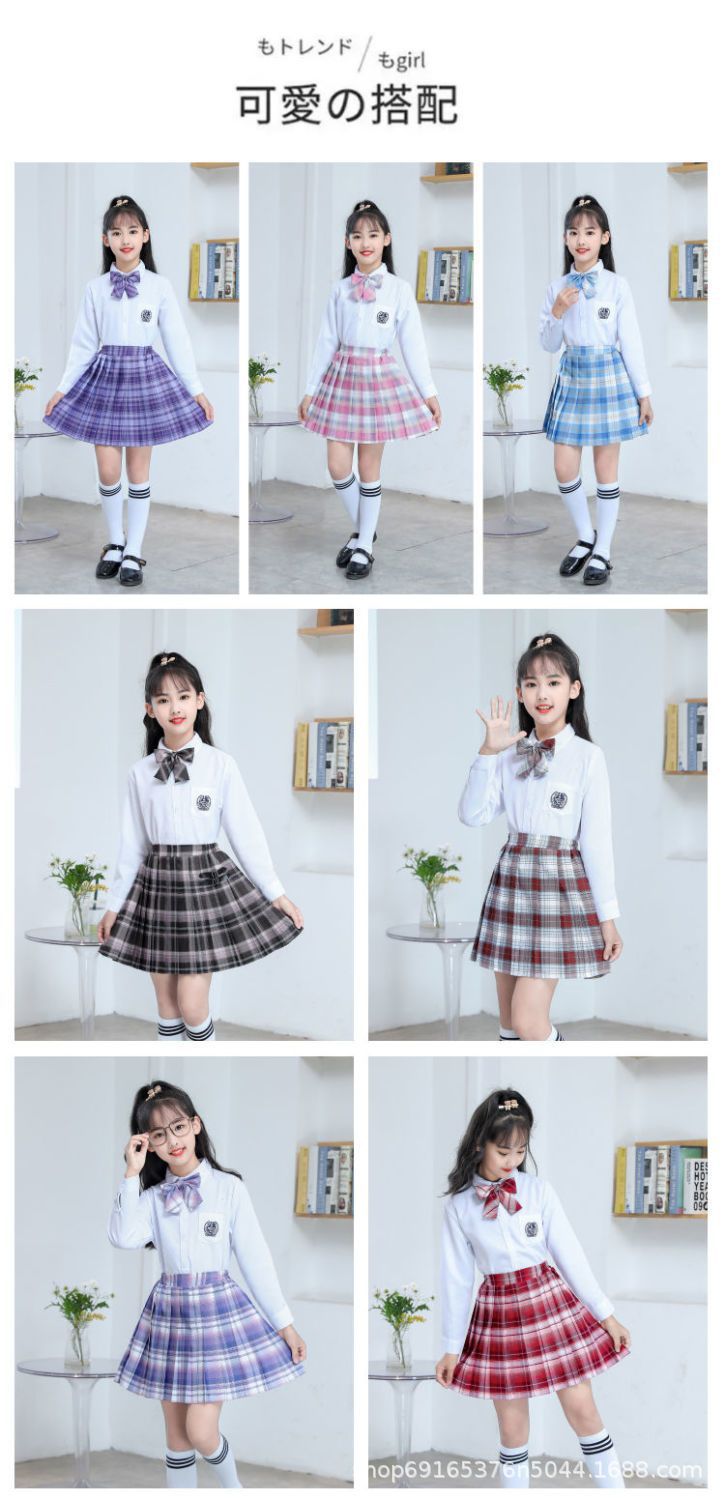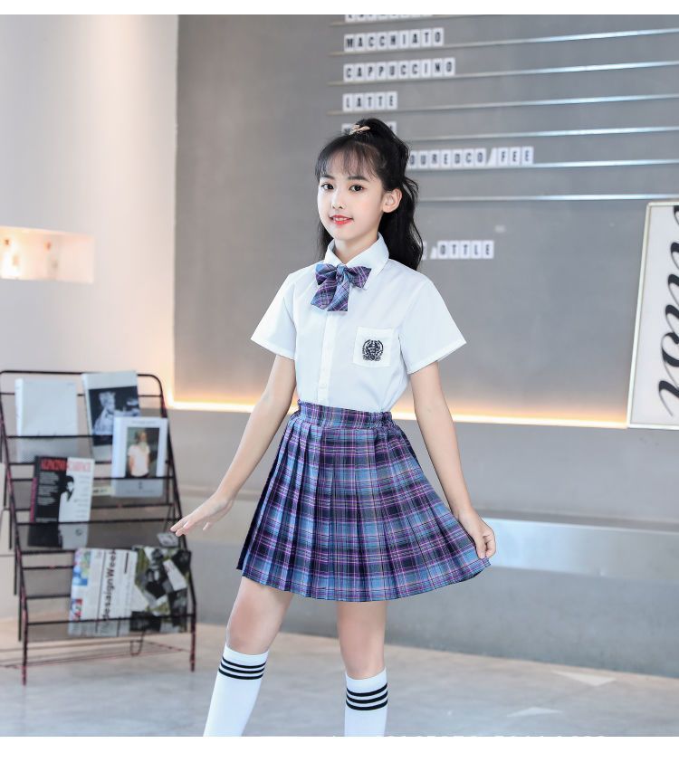 2024 여름 어린이 JK 세트 새로운 서양식 소녀 셔츠 프레피 스타일 스커트 주름 치마 졸업 공연 옷스토어 가기