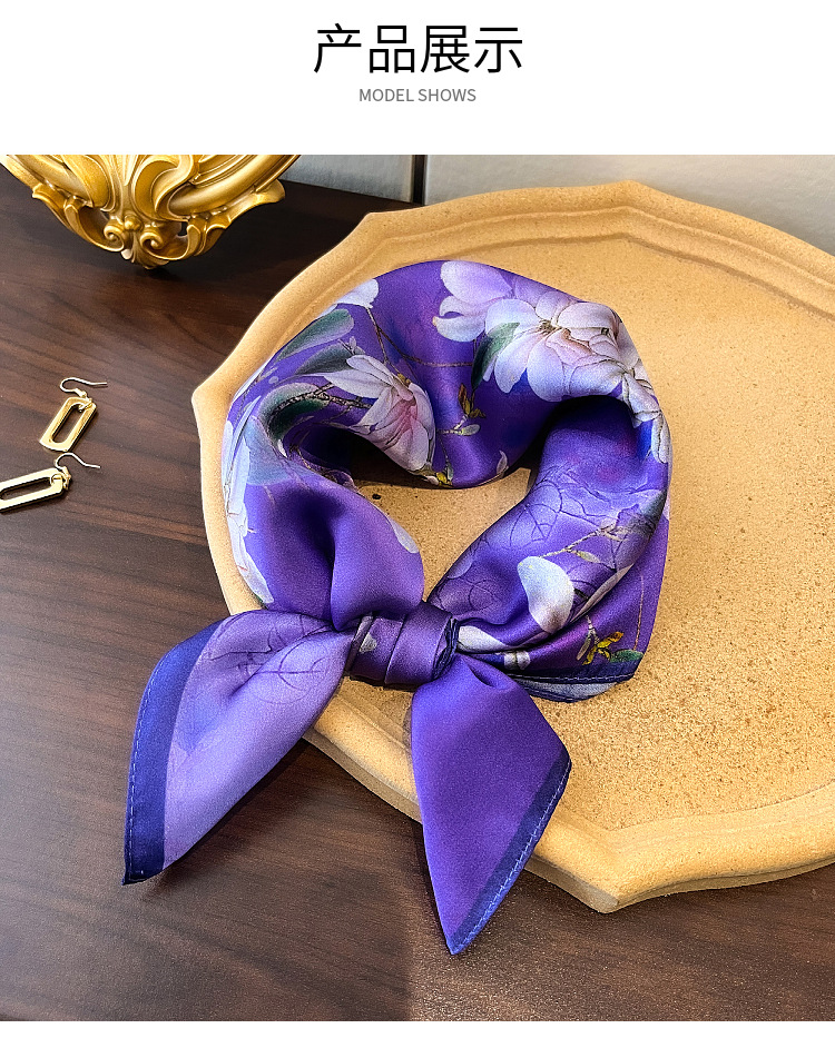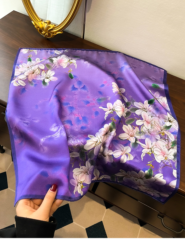 2024 새로운 보라색 우아한 패션 실크 작은 사각형 스카프 다목적 통근 뽕나무 실크 스카프 넥타이 가방 작은 스카프스토어 가기