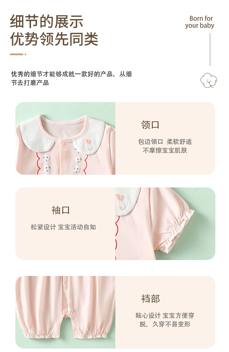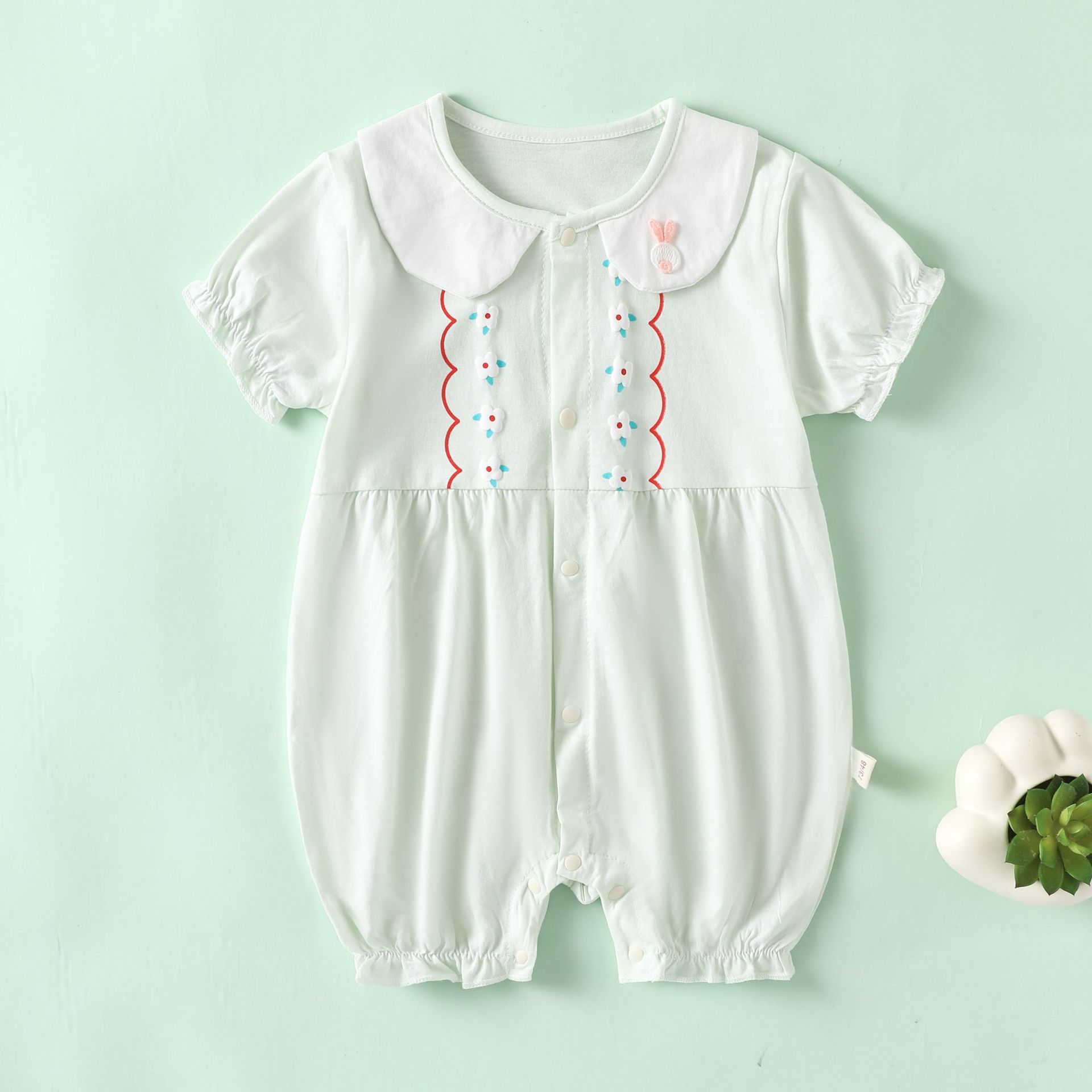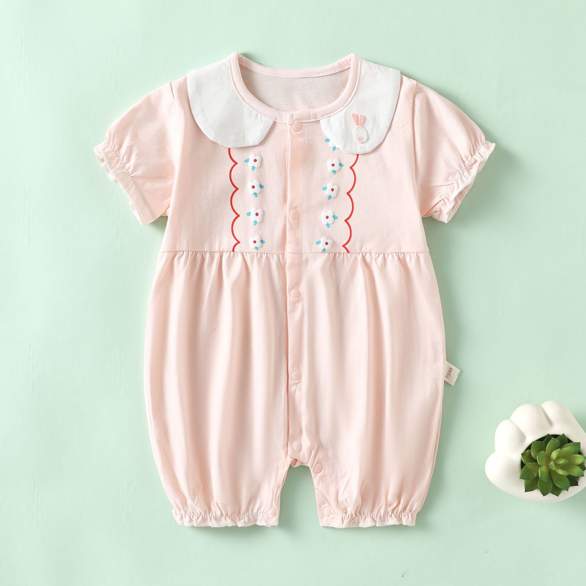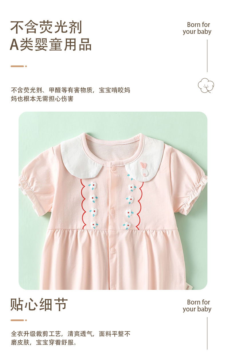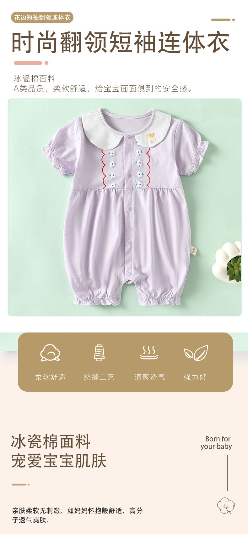 爱啦牛现货夏季薄款冰丝纯棉翻领短袖哈衣女宝宝时尚公主风连体衣
