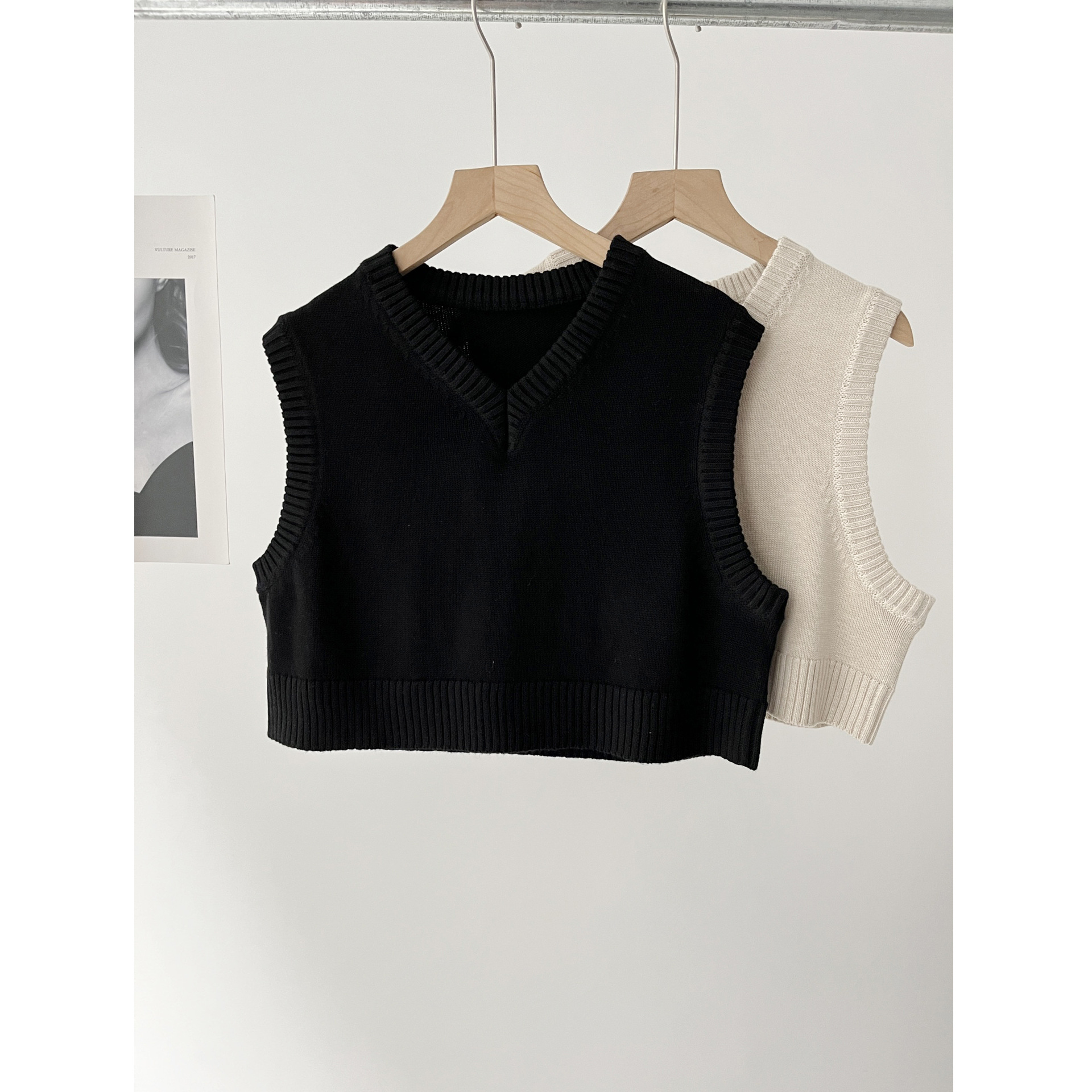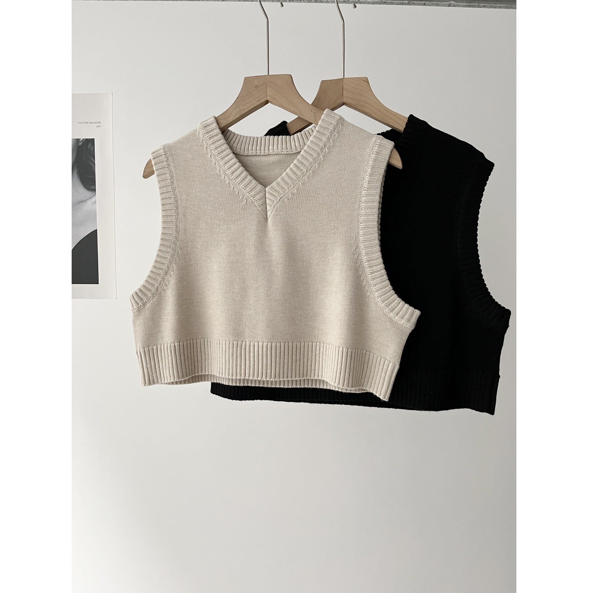 Cs 스타일 여성의 짧은 V 넥 울 조끼 라이트 베이지 1208572001 봄 새로운 1208572002