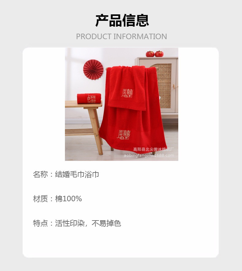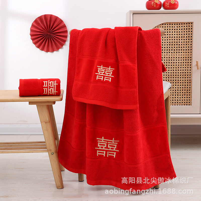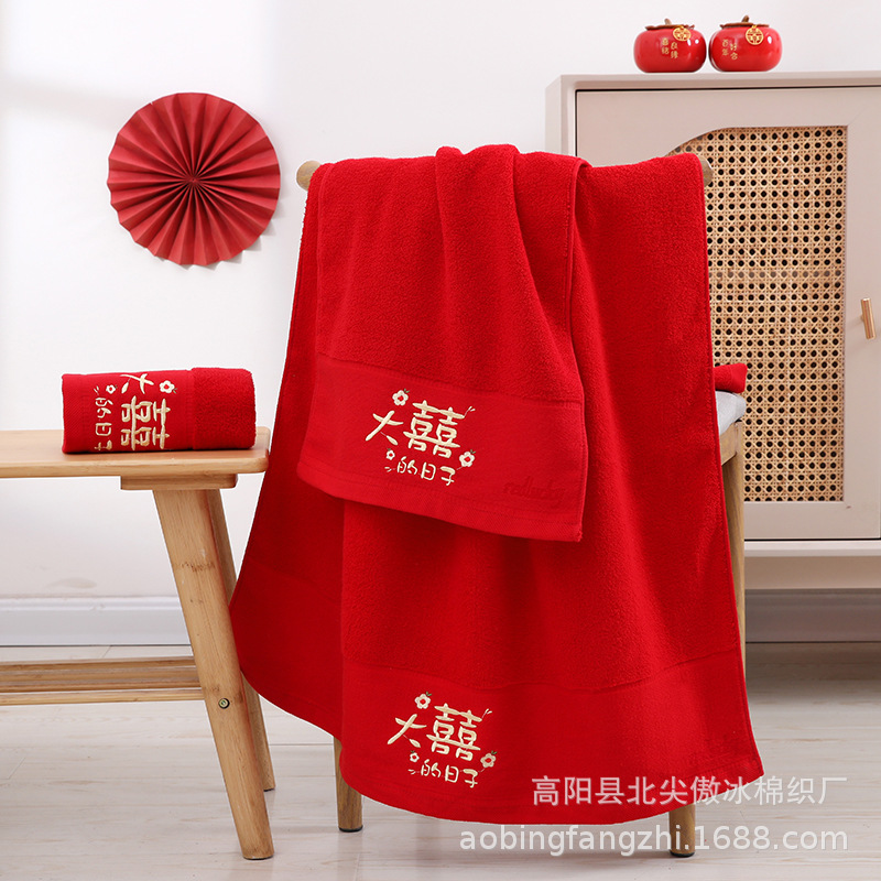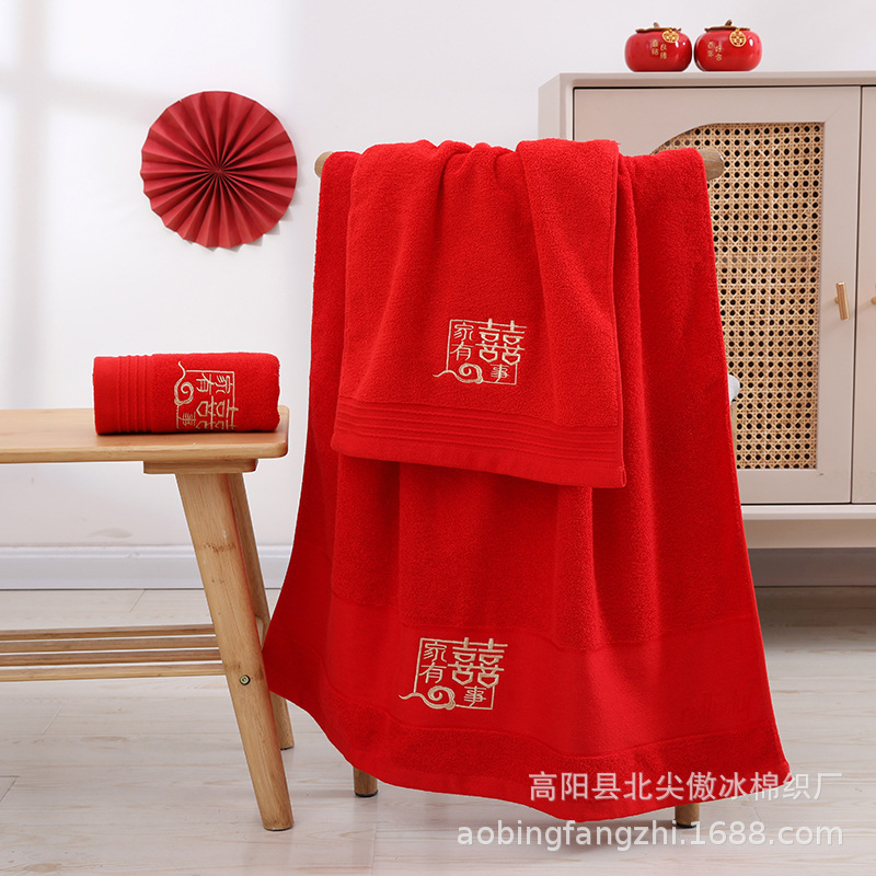 웨딩 지참금 수건 목욕 수건 세트 면 홈 웨딩 동반자 선물 빨간 수건 커플 쌍