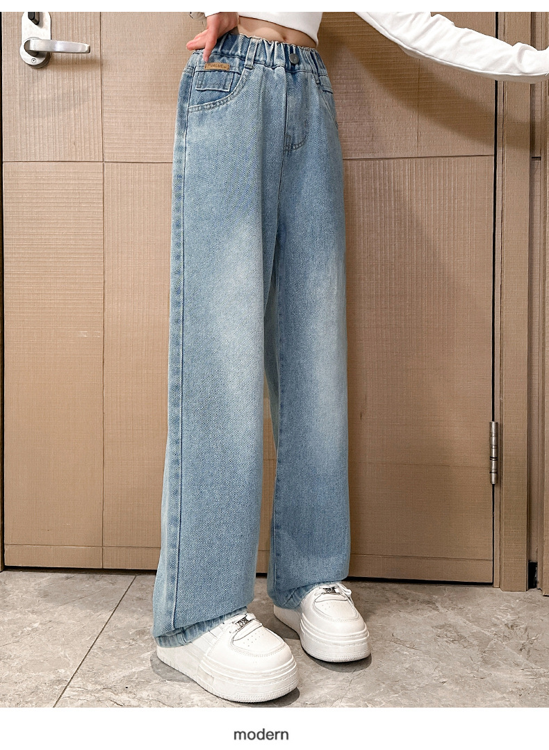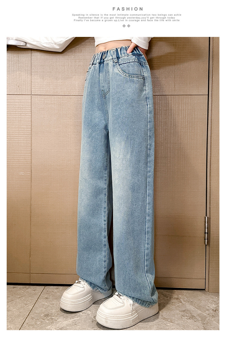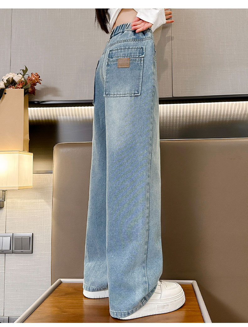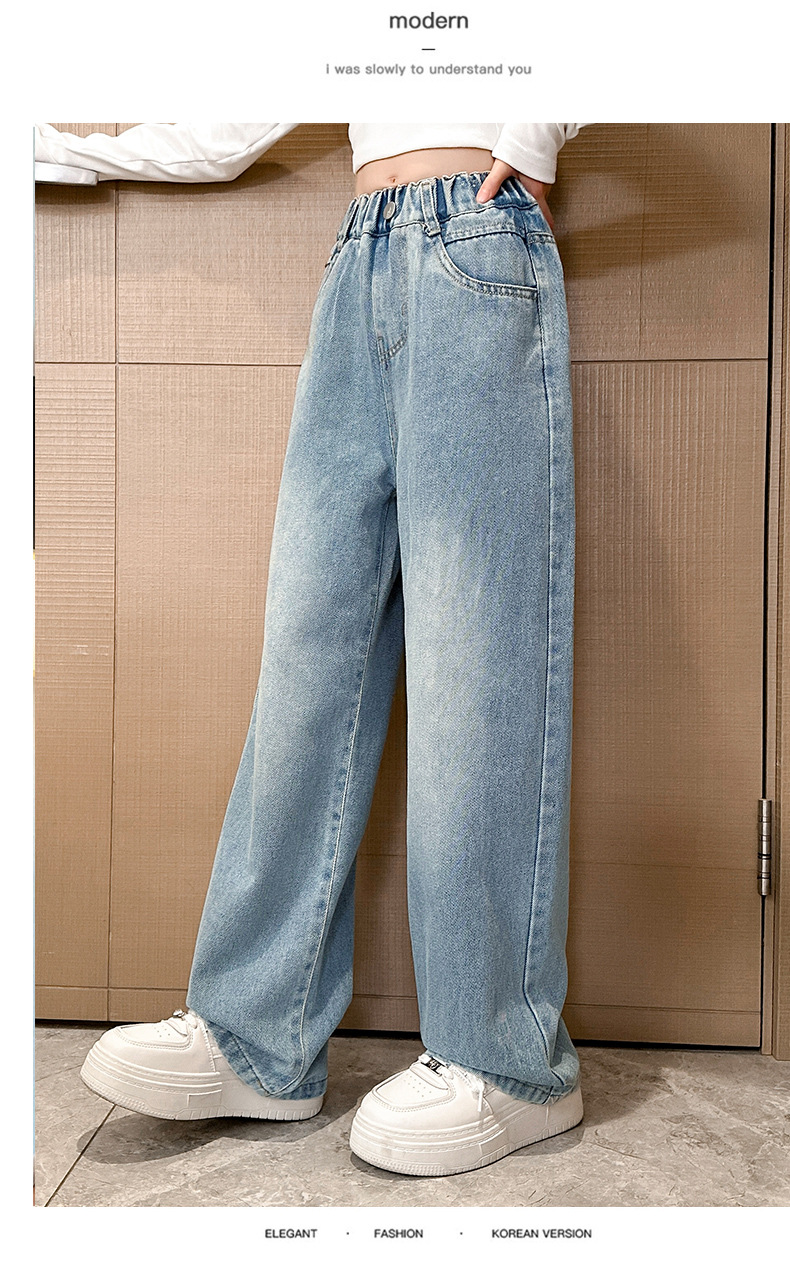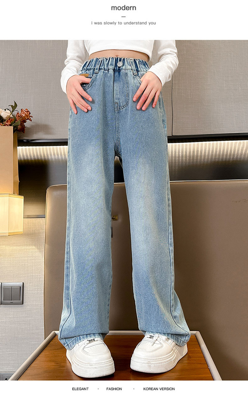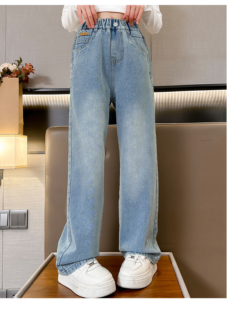 여아 데님 와이드 팬츠 봄 가을 바지 2026 신상 트렌디하고 멋스러운 중대형 아동용 루즈핏 캐주얼 스트레이트 팬츠스토어 가기