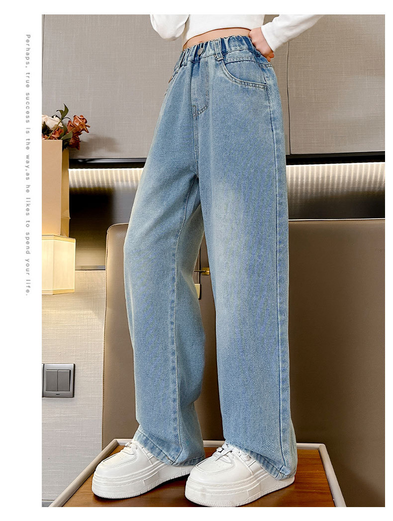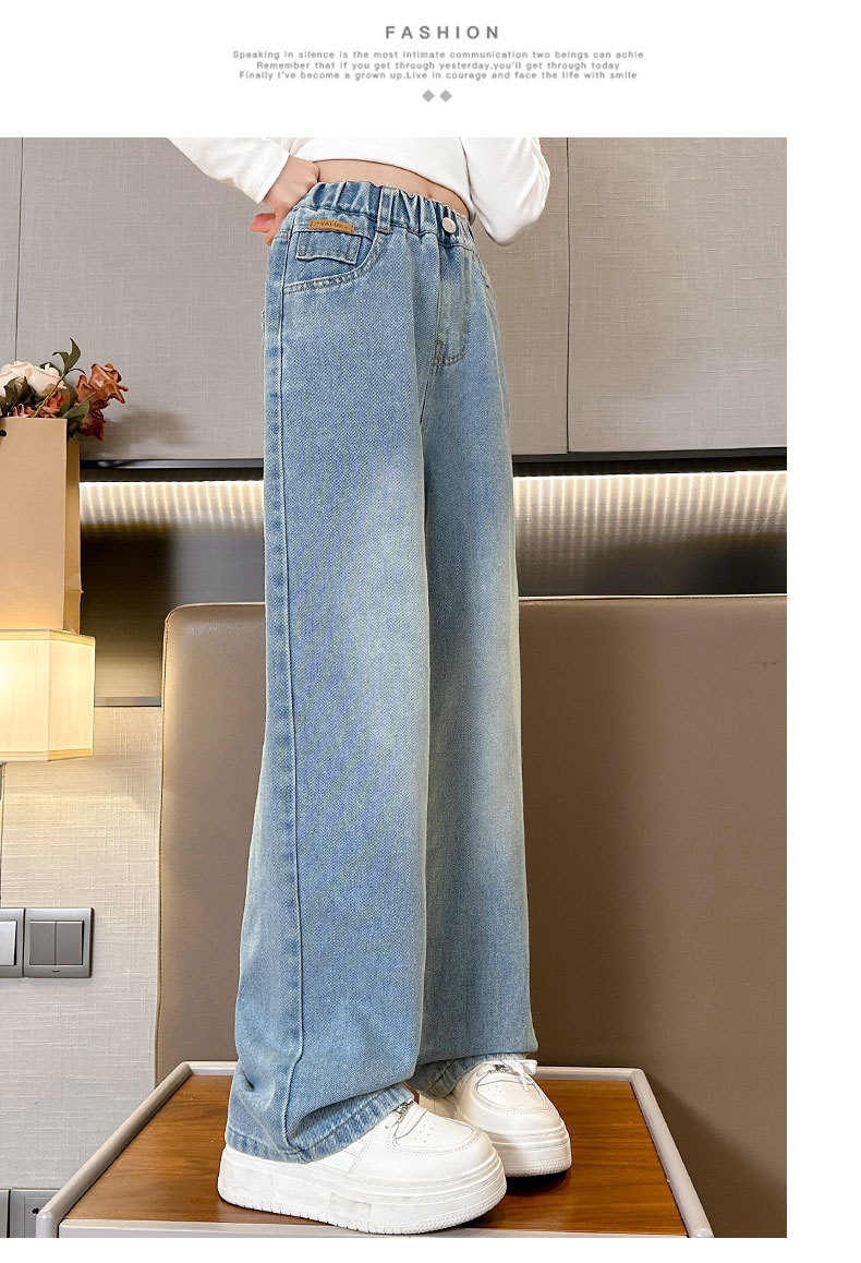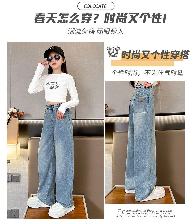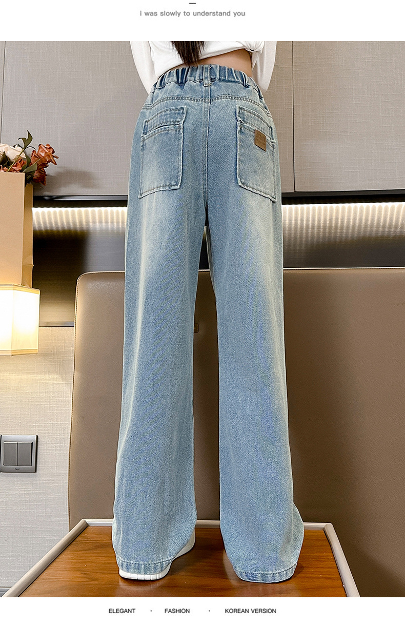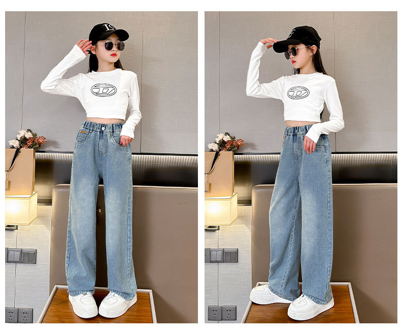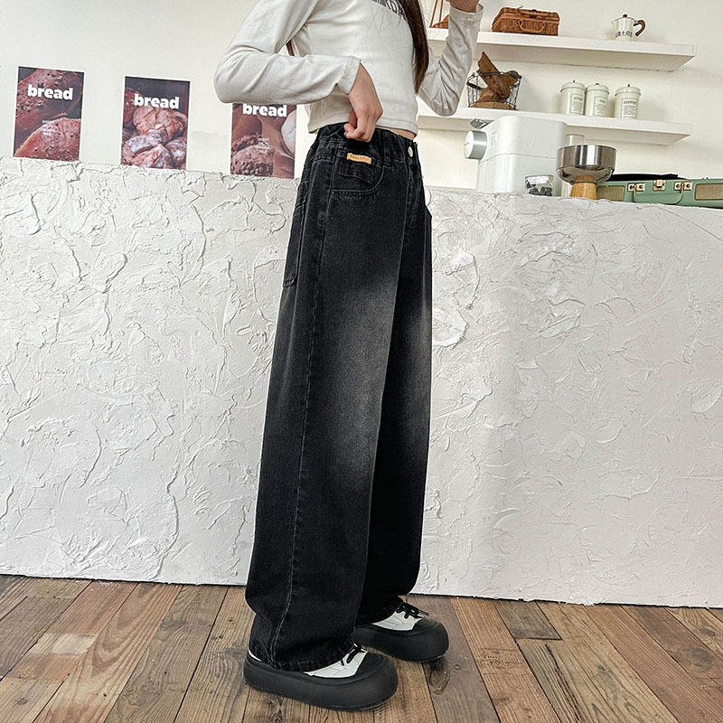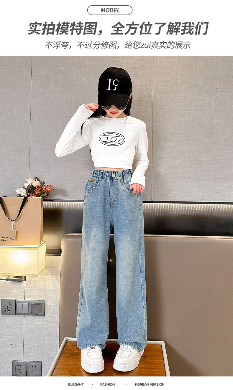 여아 데님 와이드 팬츠 봄 가을 바지 2026 신상 트렌디하고 멋스러운 중대형 아동용 루즈핏 캐주얼 스트레이트 팬츠스토어 가기