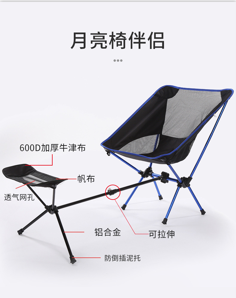 品名:户外月亮椅脚托折叠椅便捷式休闲露营钓鱼伸缩脚托脚踏铝合金脚撑