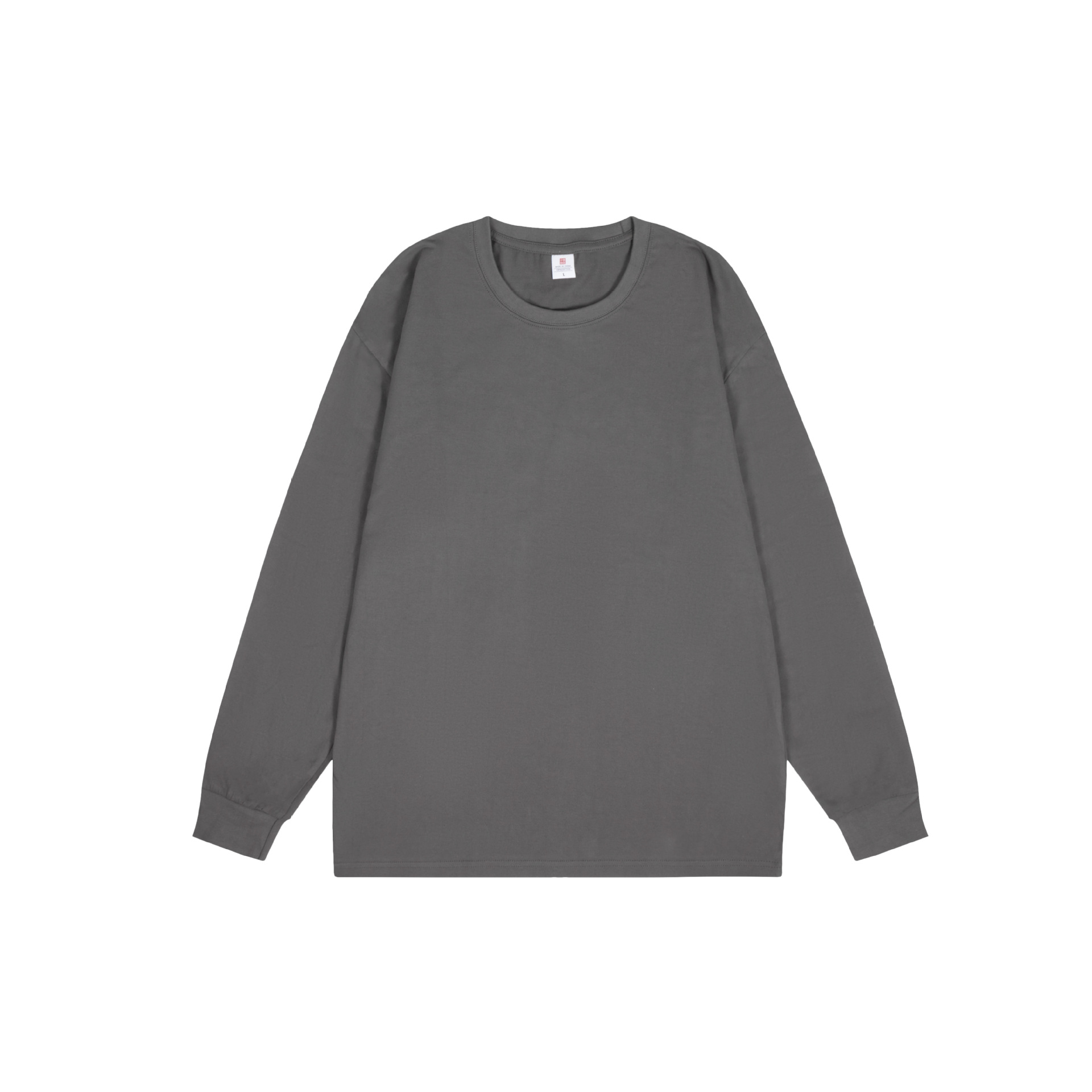 가을, 겨울 230g 헤비급 트렌디 브랜드 순수 코튼 솔리드 컬러 긴팔 티셔츠 남성용 스레드 커프스 패션 캐주얼 바닥 셔츠 여성용스토어 가기