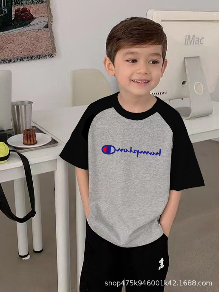 국경 도매 면화 패션 브랜드 아동복 소년 반팔 티셔츠 느슨한 어린이 얇은 땀 흡수성 티셔츠 반소매 탑