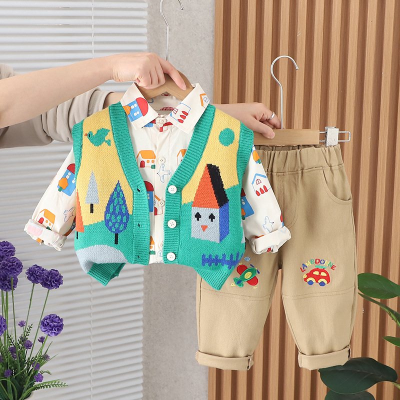 2024 봄 어린이 세트 스웨터 조끼 카디건 어린이 3 피스 만화 캐주얼 아동복 한국 봄 의류스토어 가기