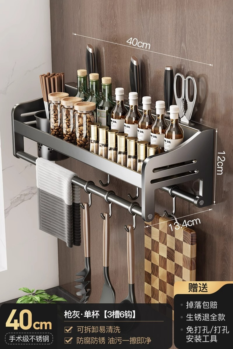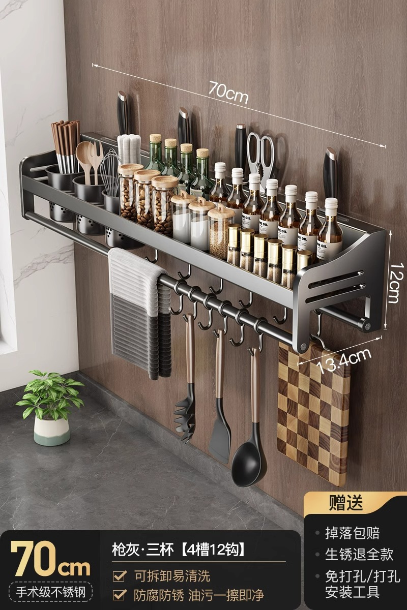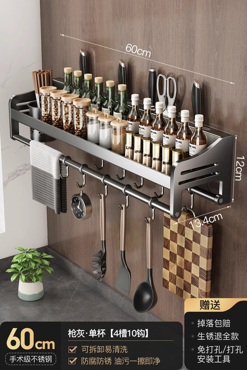 免打孔厨房多功能置物架家用壁挂式调味料筷子刀架用品大全收纳架