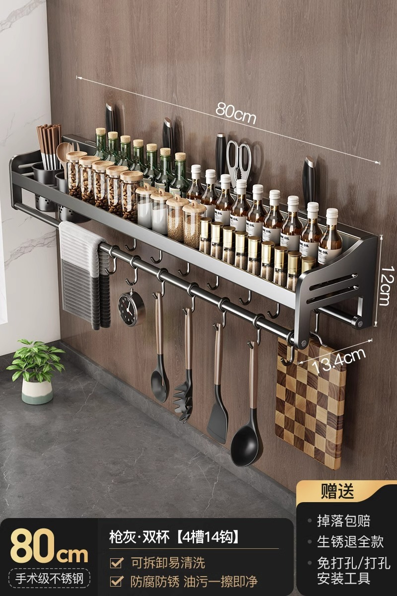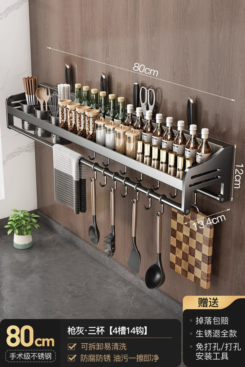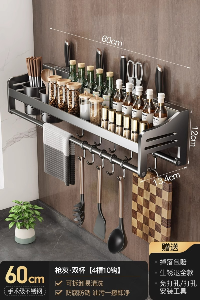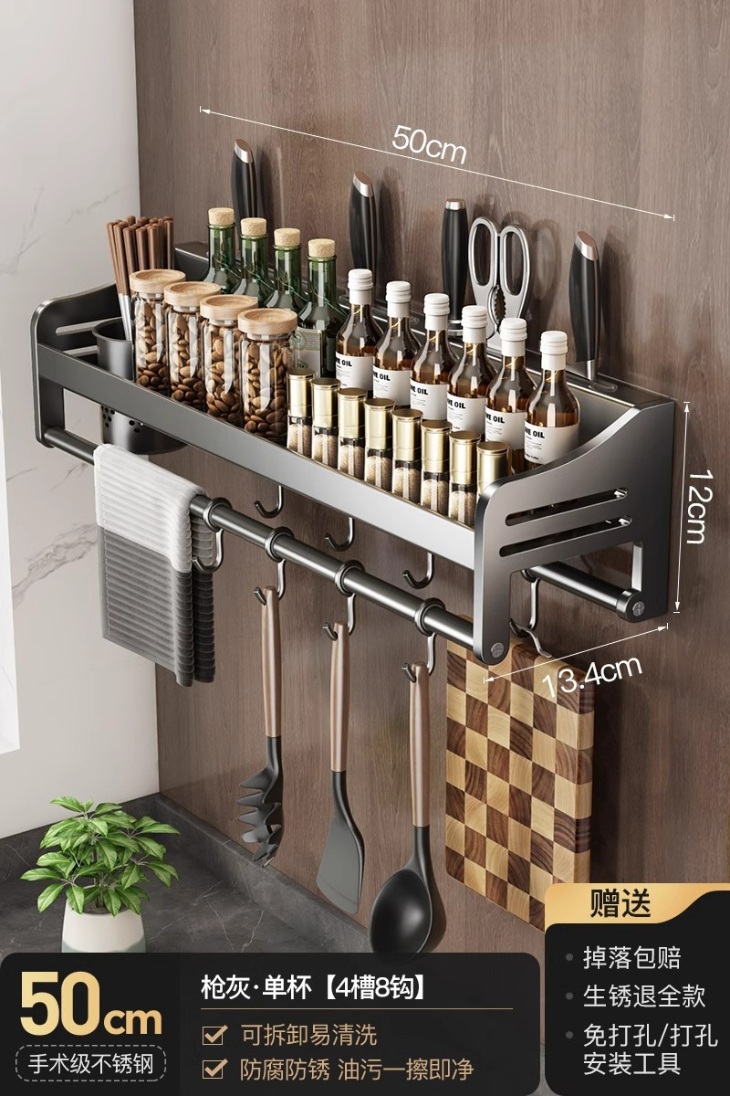 免打孔厨房多功能置物架家用壁挂式调味料筷子刀架用品大全收纳架