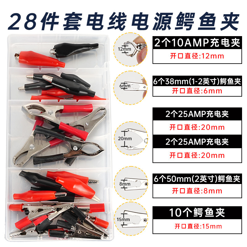 28 조각 악어 클립 전원 와이어 테스트 클립 대형 및 중간 스몰 사이즈 절연 슬리브 LRC 배선 시스 유니버설스토어 가기