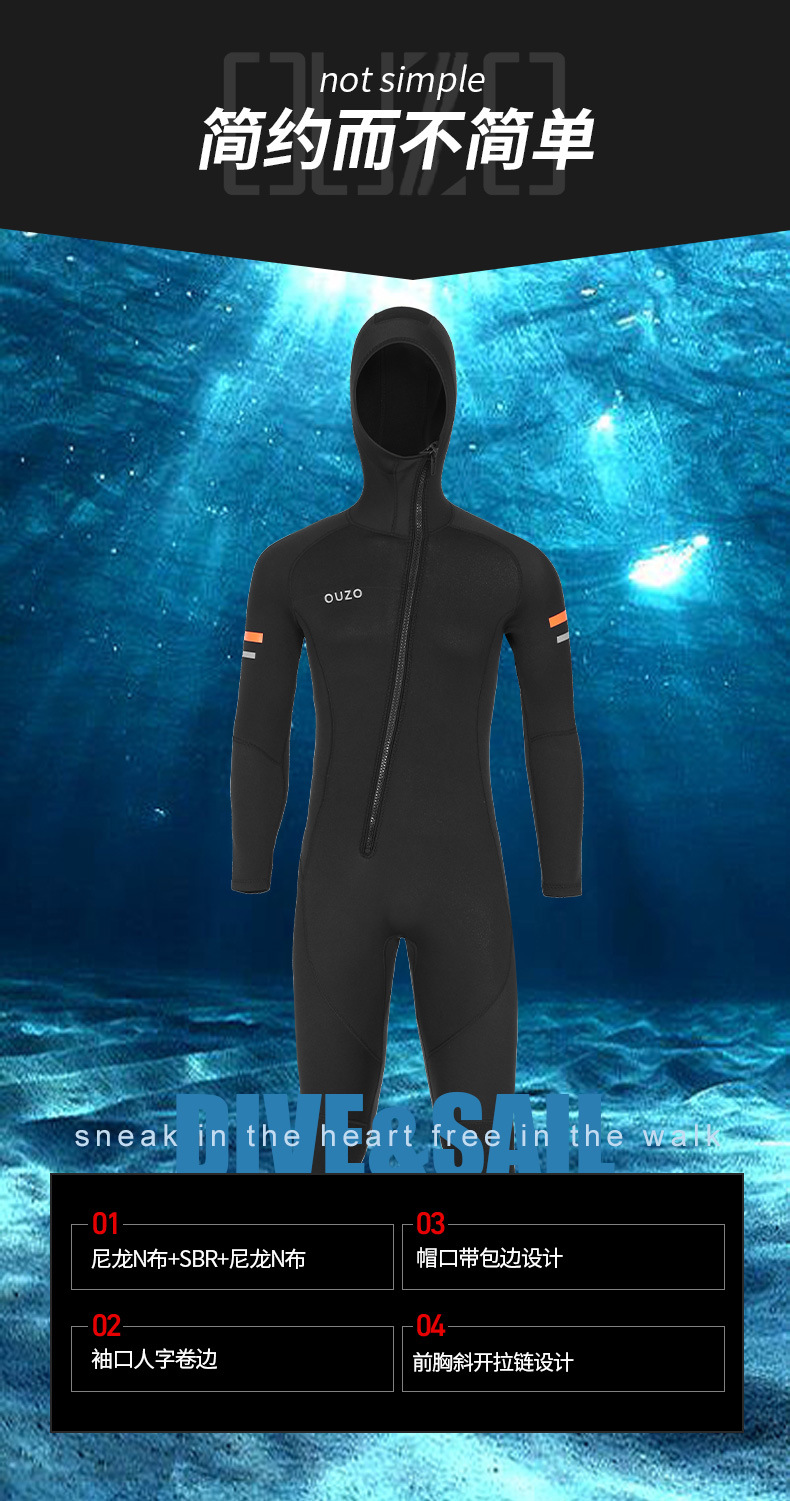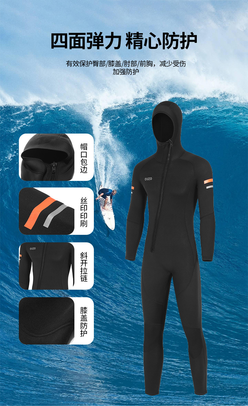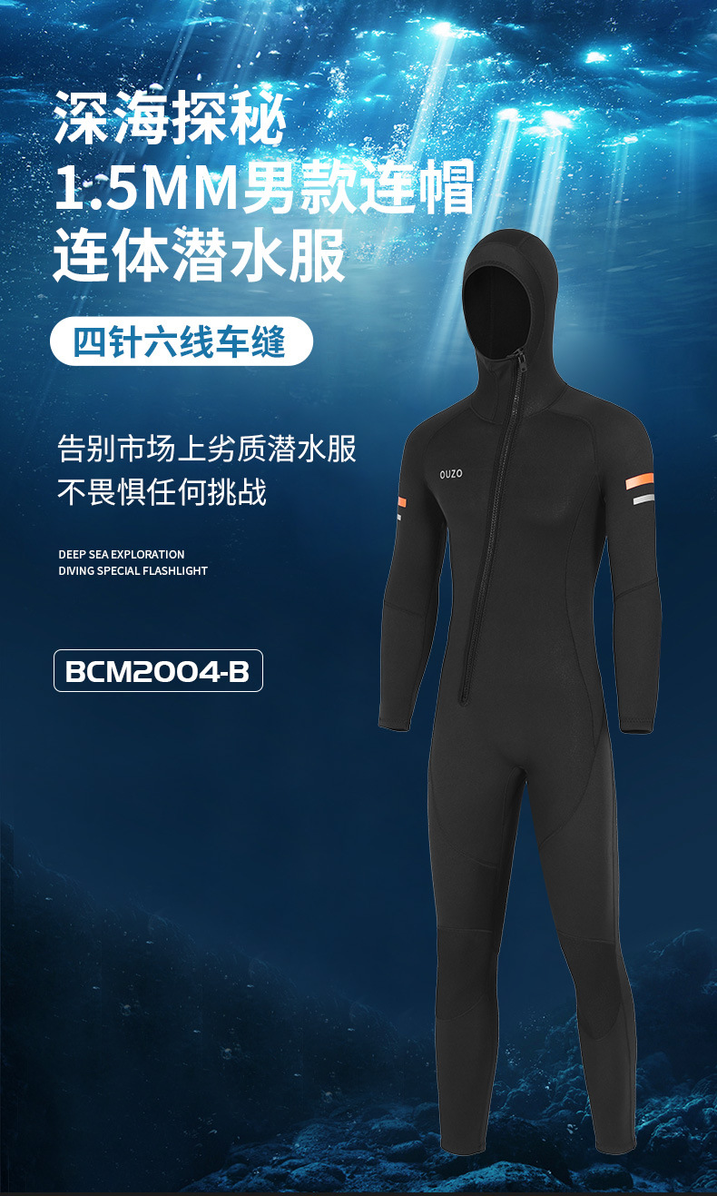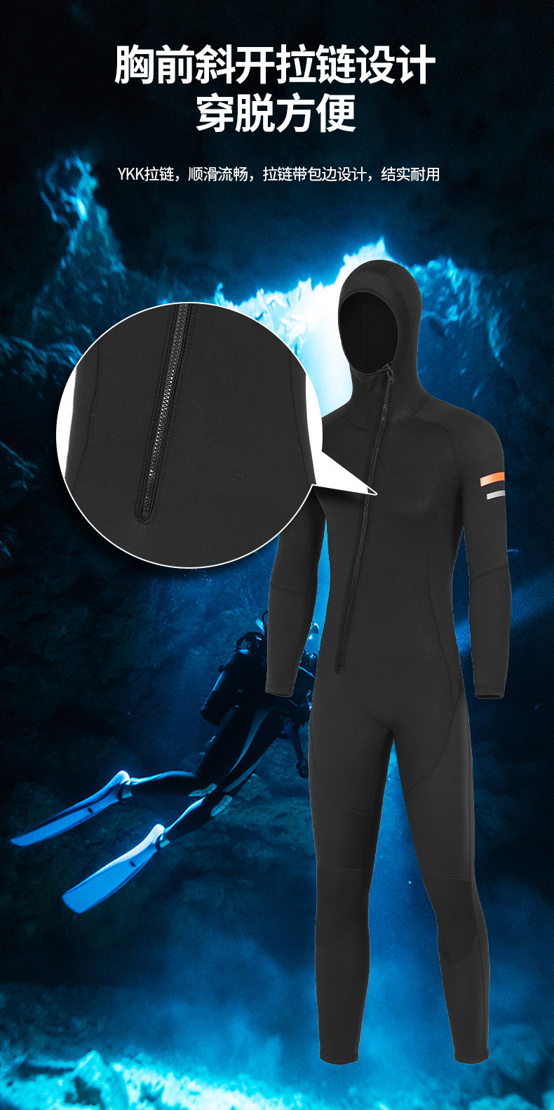 新款1.5mm潜水服 男款长袖连体连帽潜水衣防寒保暖防晒浮潜冲浪衣