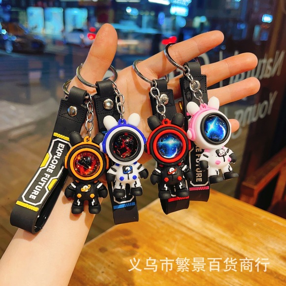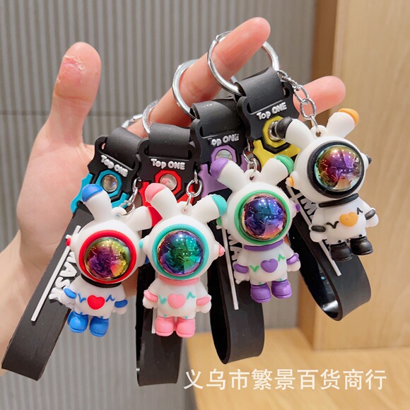 新款情侣闪电熊钥匙扣包包宇航员汽车硅胶钥匙链太空人挂件小礼品