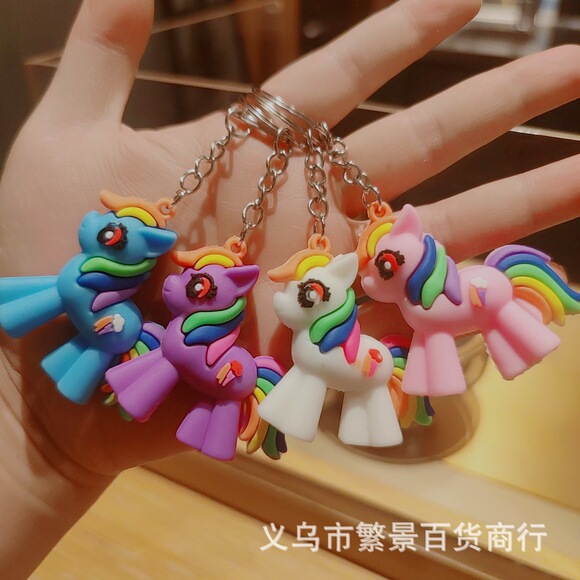 卡通小马宝莉独角兽钥匙扣可爱汽车钥匙链彩虹马男女包包挂件礼品