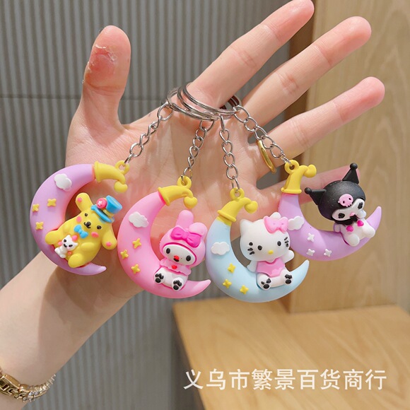 新款卡通月亮三丽鸥钥匙扣 背包小挂件 pvc软胶立体防丢钥匙链