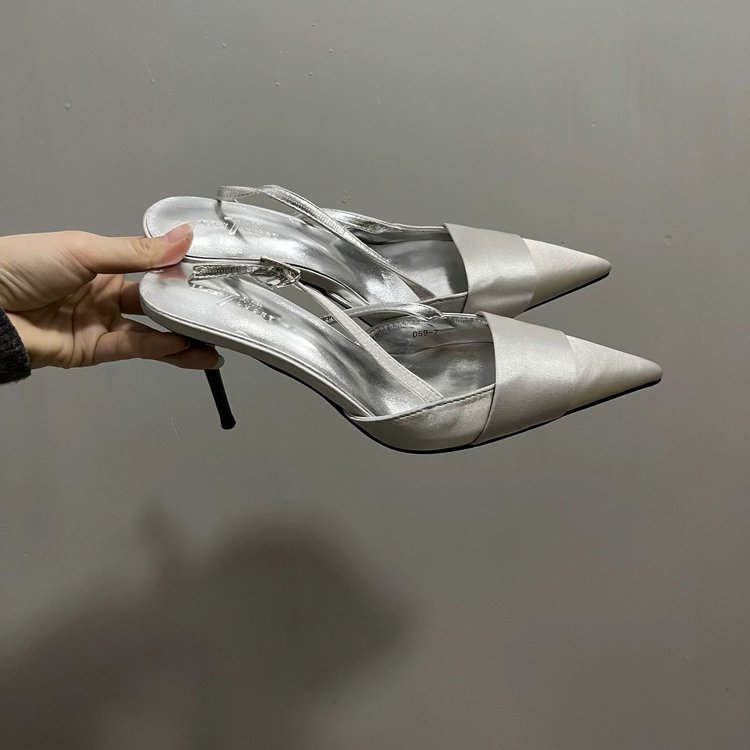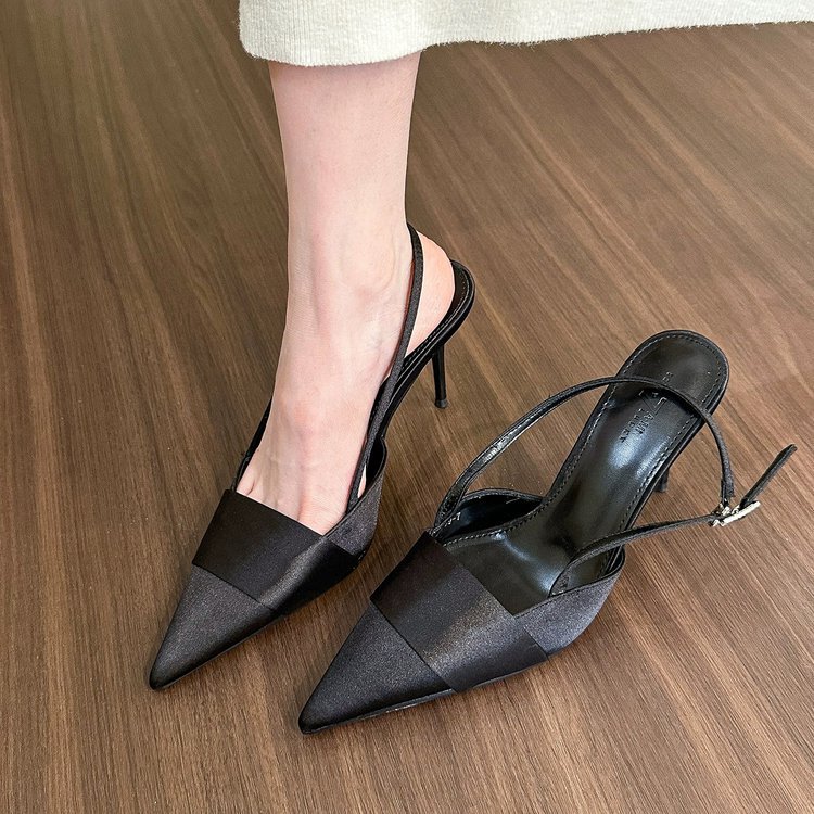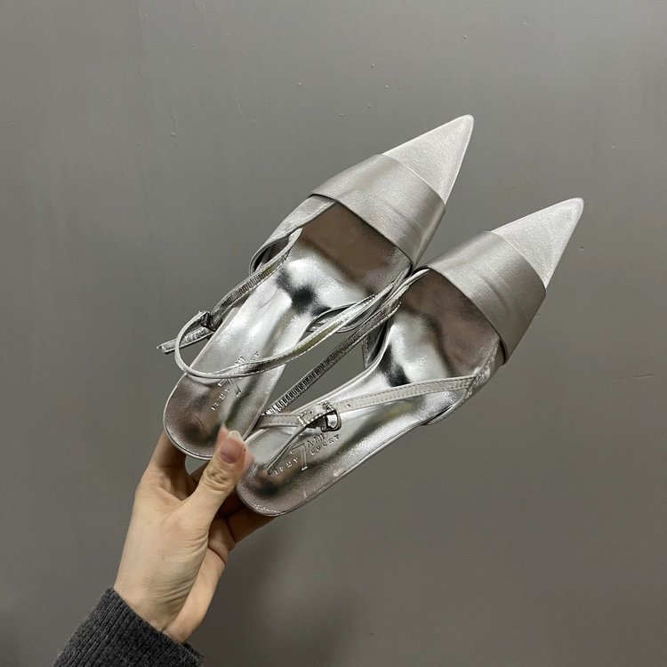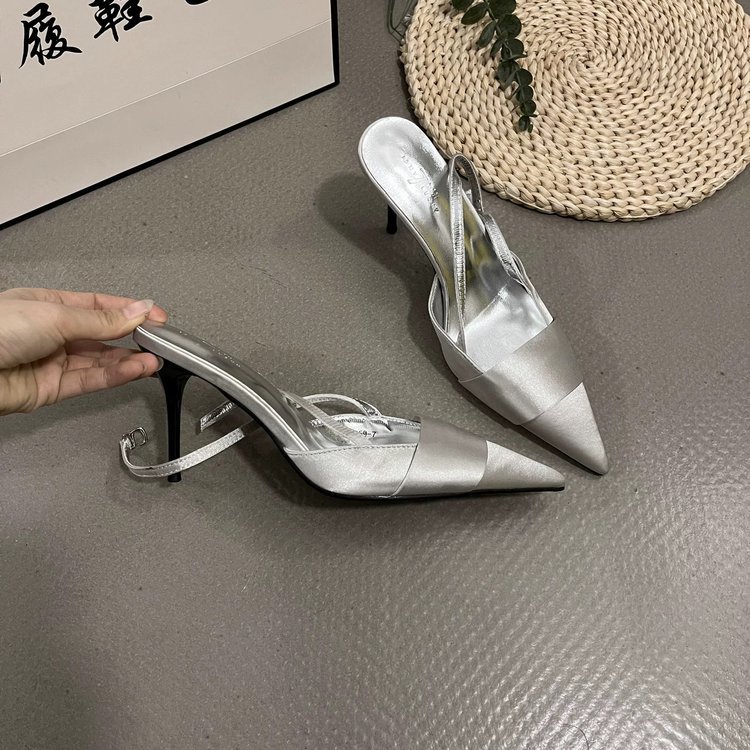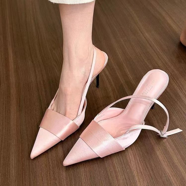 2026 봄 여름 신상품 포인티드 토 샌들, 얇은 굽, 얕은 입구, 뒷끈, 하이힐, 스커트와 함께 입는 패셔너블한 여성화 도매스토어 가기