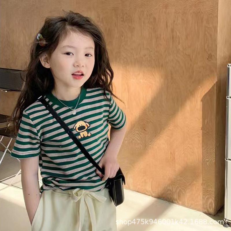 도매 국경 어린이 줄무늬 반팔 티셔츠 만화 서양식 여름 의류 소년 소녀 얇은 탑 반팔 티셔츠스토어 가기