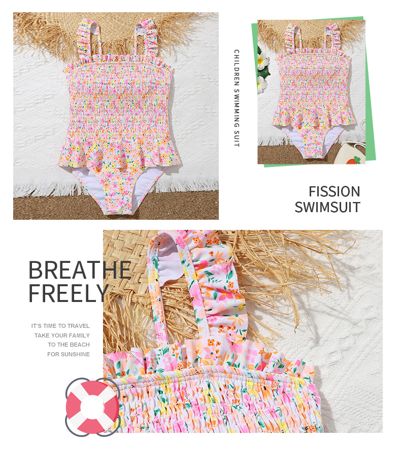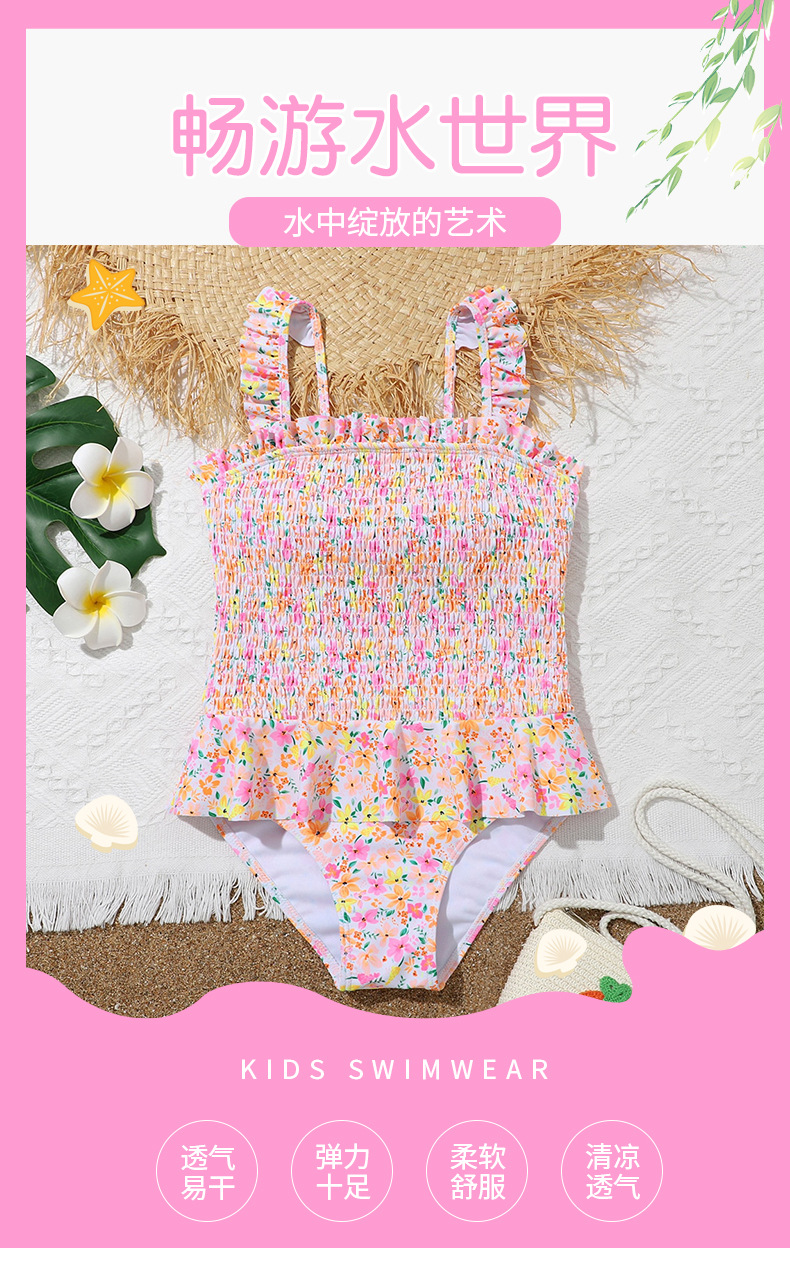 2025 꽃무늬 원피스 수영복 아동 수영복 여아 여름 수출용 아동 수영복 여아 비키니
