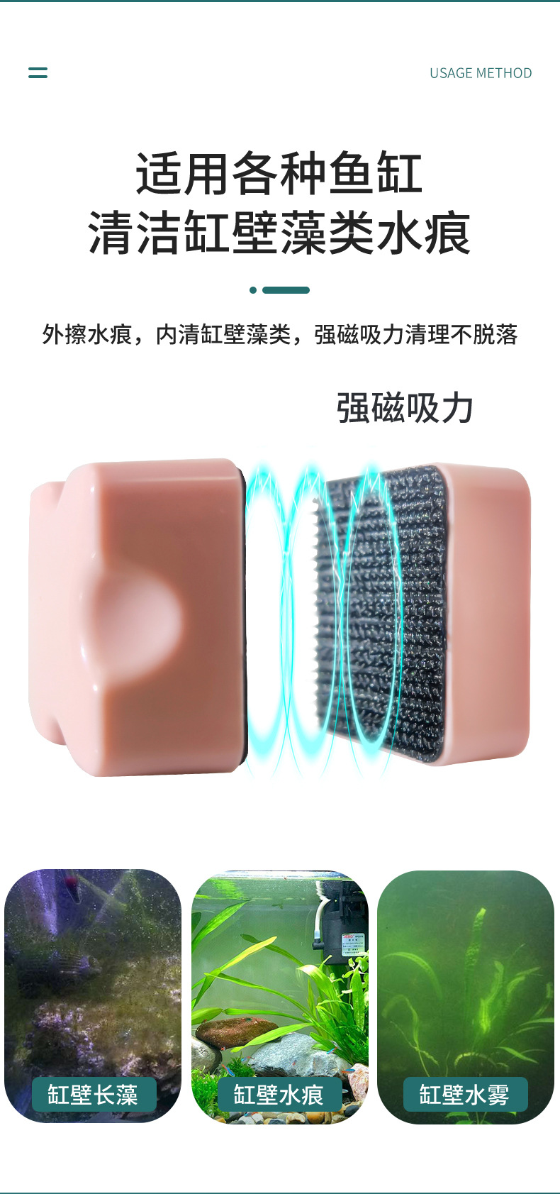 물고기 탱크 청소 도구 공급 자석 브러시 수족관 탱크 벽 조류 제거 자석 브러시 도매 가게 추천스토어 가기