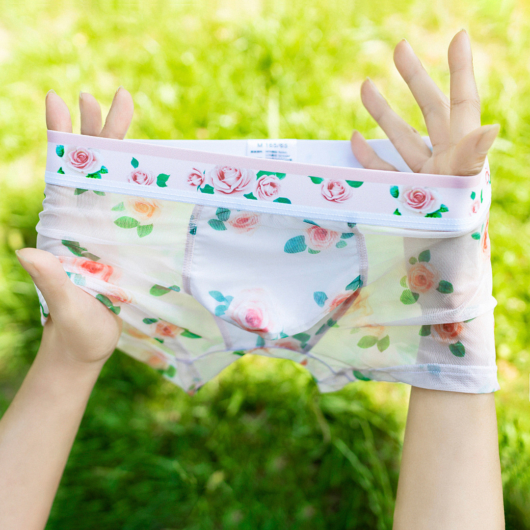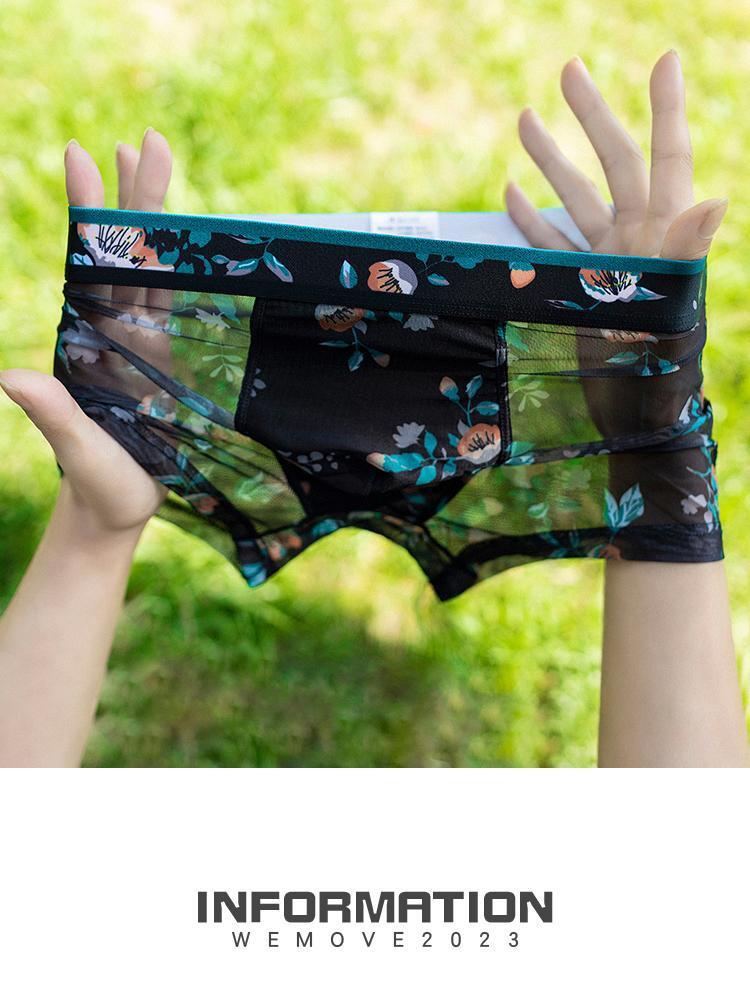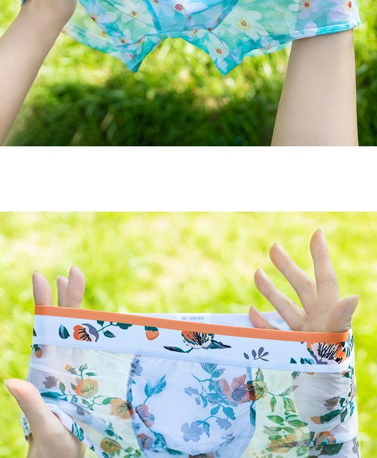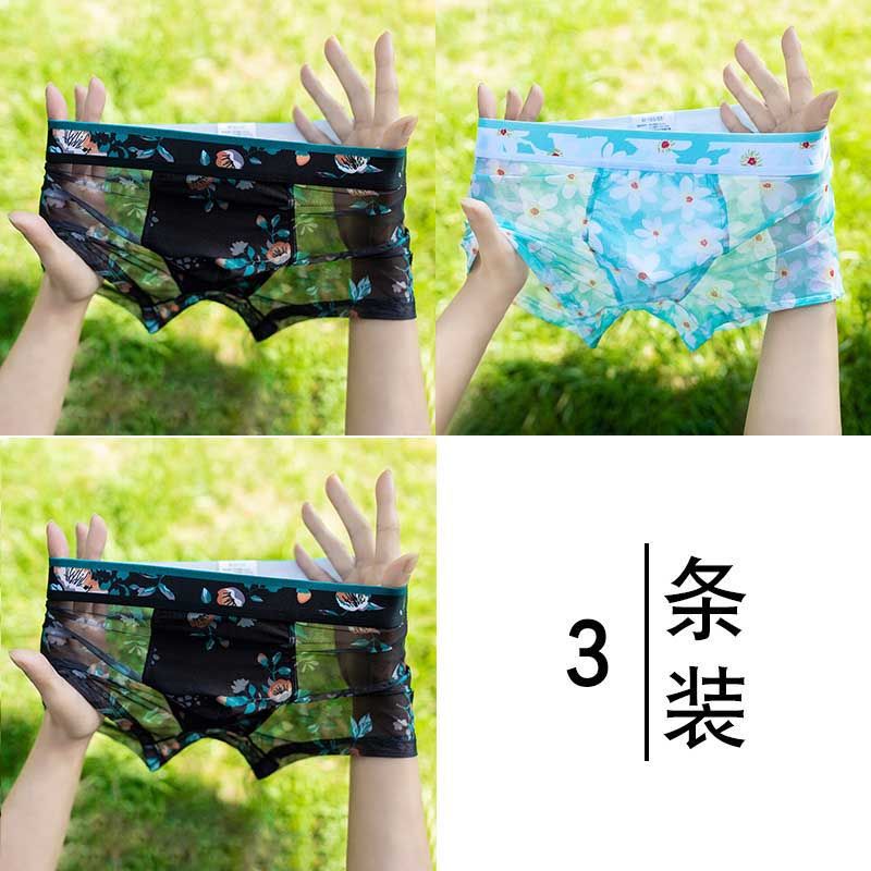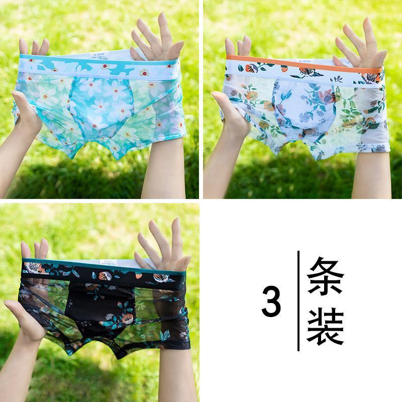 메쉬 초박형 통기성 남성 속옷 남성용 아이스 실크 비 마킹 복서 반바지 여름 유행 인쇄 투명 4 코너 바지
