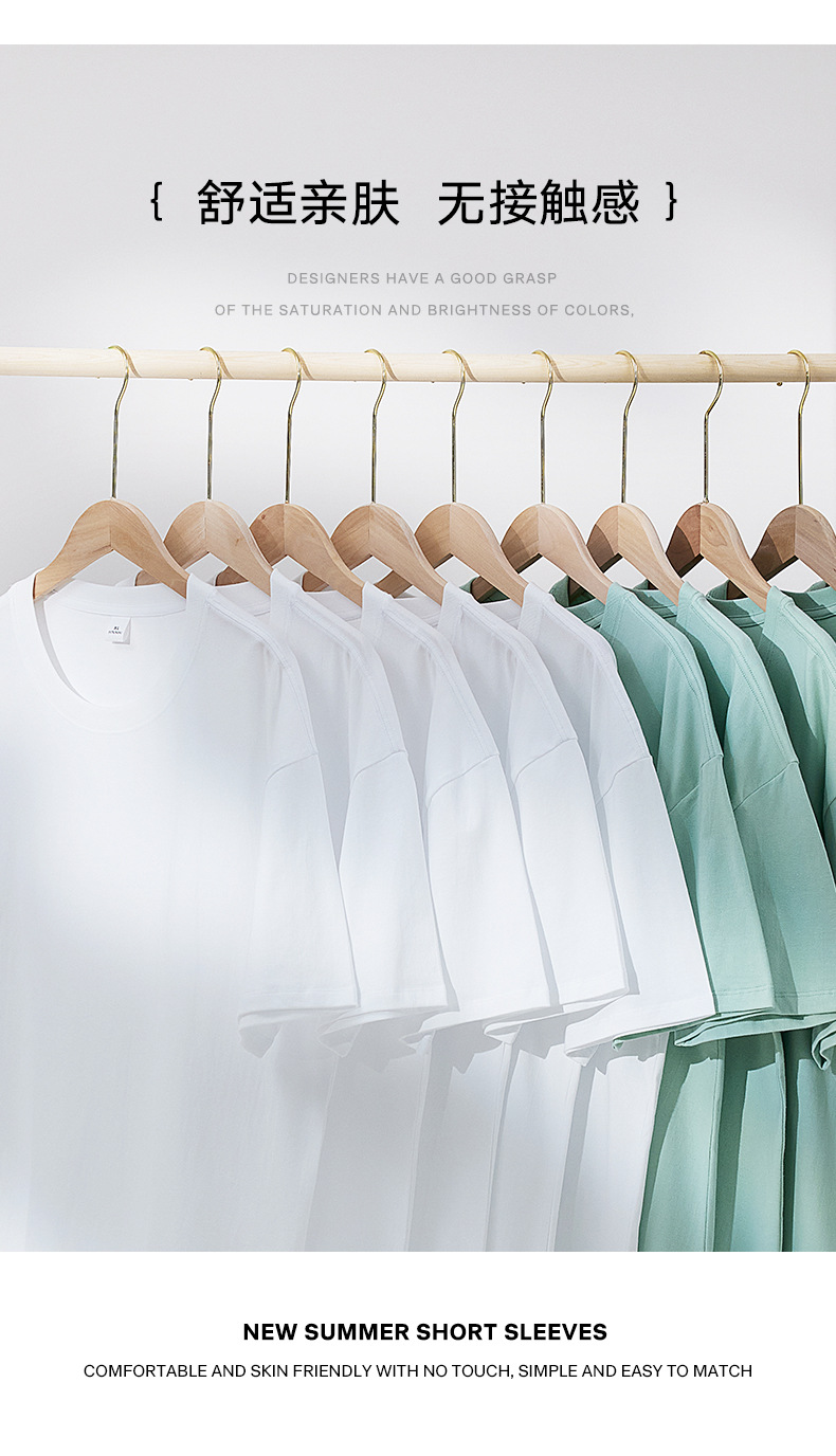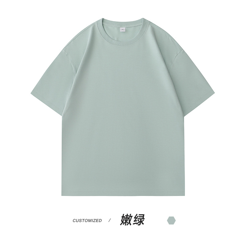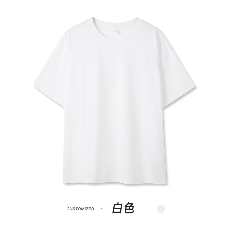 헤비 코튼 반팔 티셔츠 남성용 느슨한 단색베이스 셔츠 캐주얼 남성 티셔츠 화이트 여름 옷스토어 가기