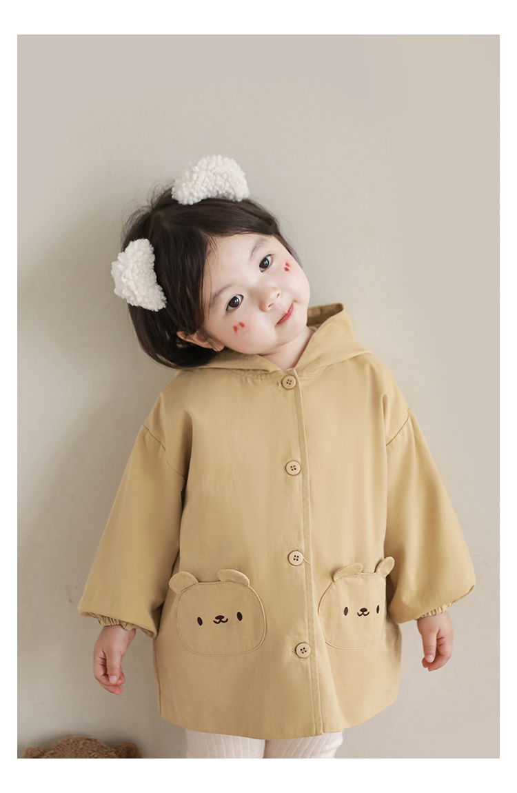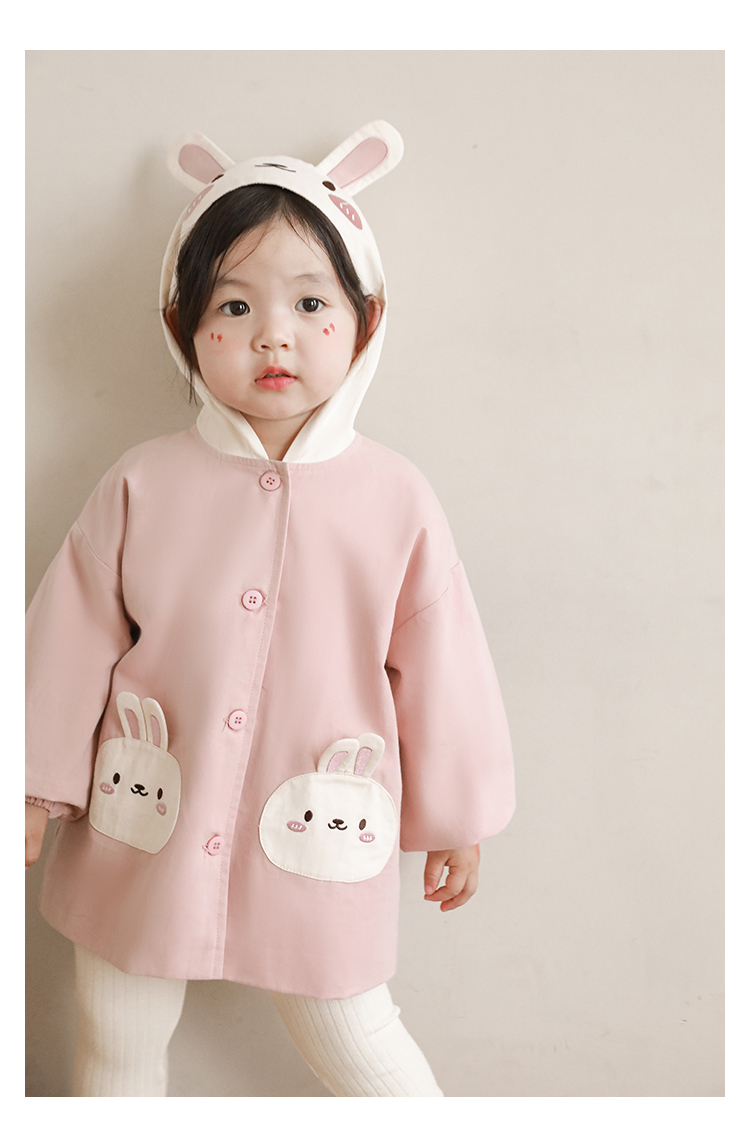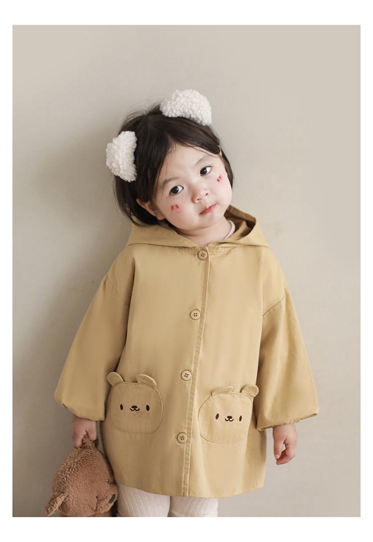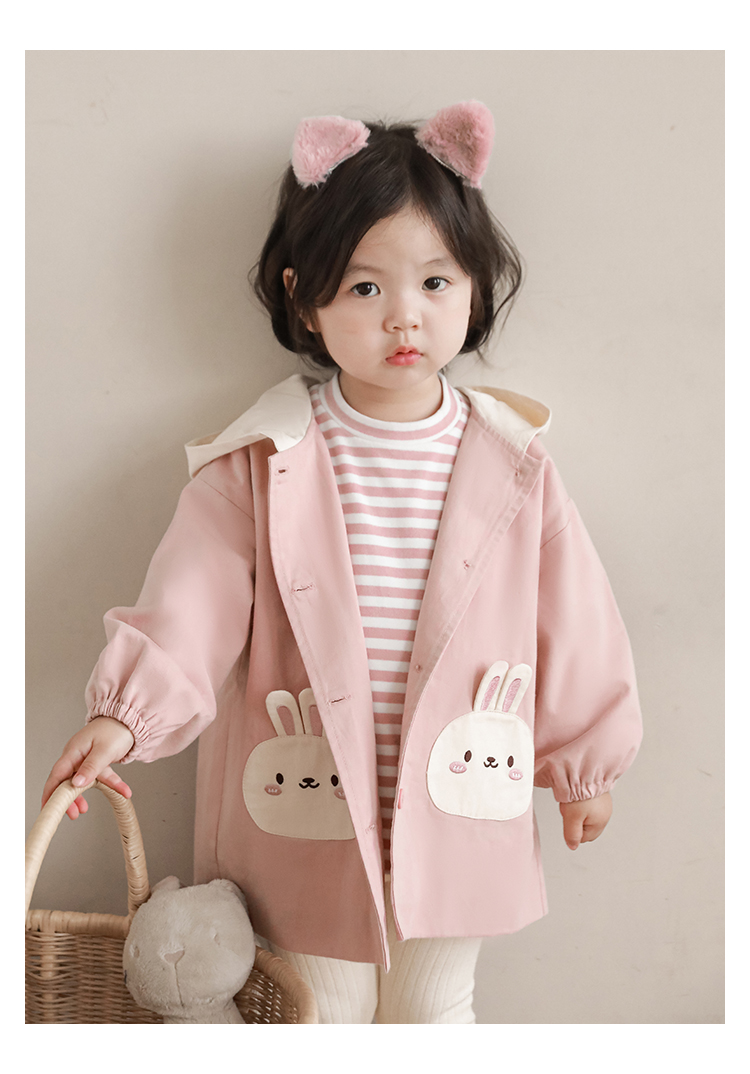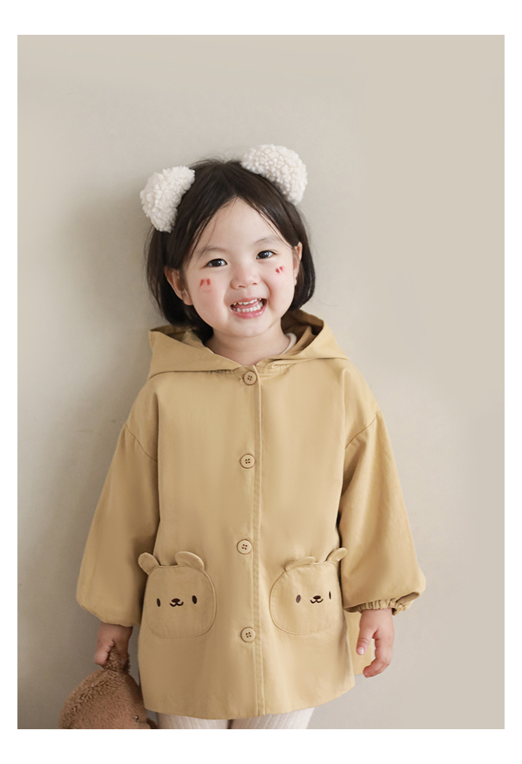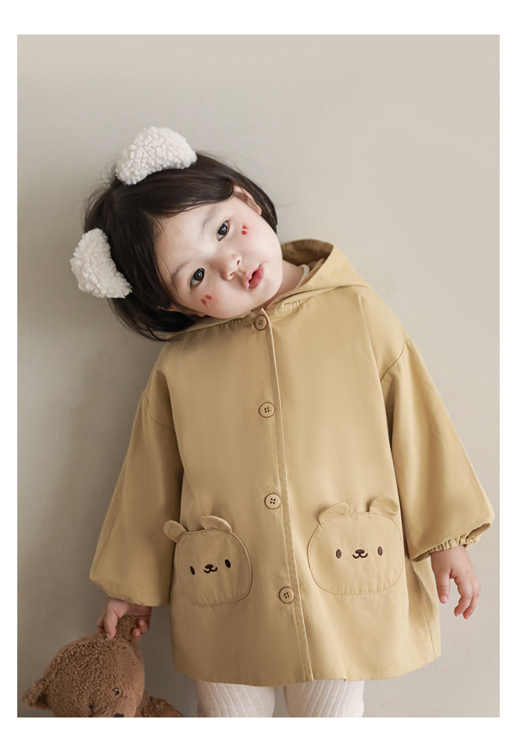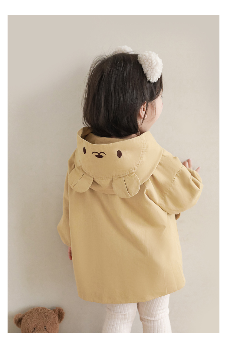 여자의 봄과 가을 코트 귀 후드 만화 트렌치 코트 어린이 패션 패치 자수 긴 소매 겉옷