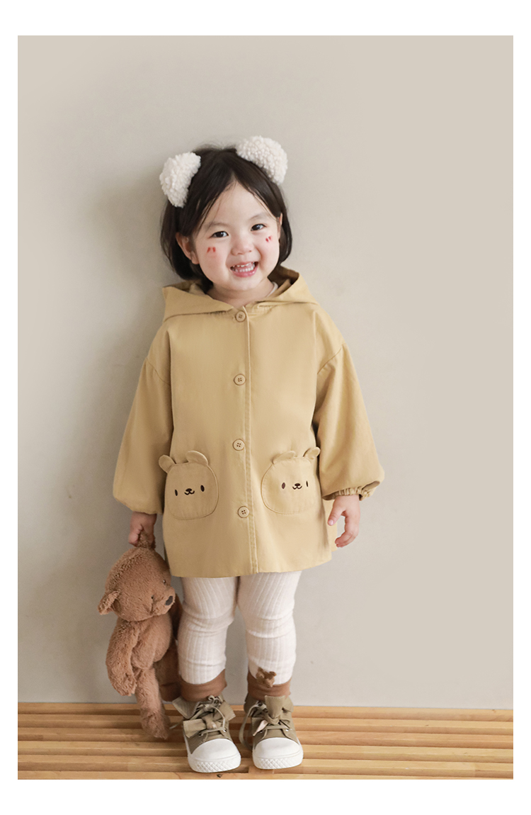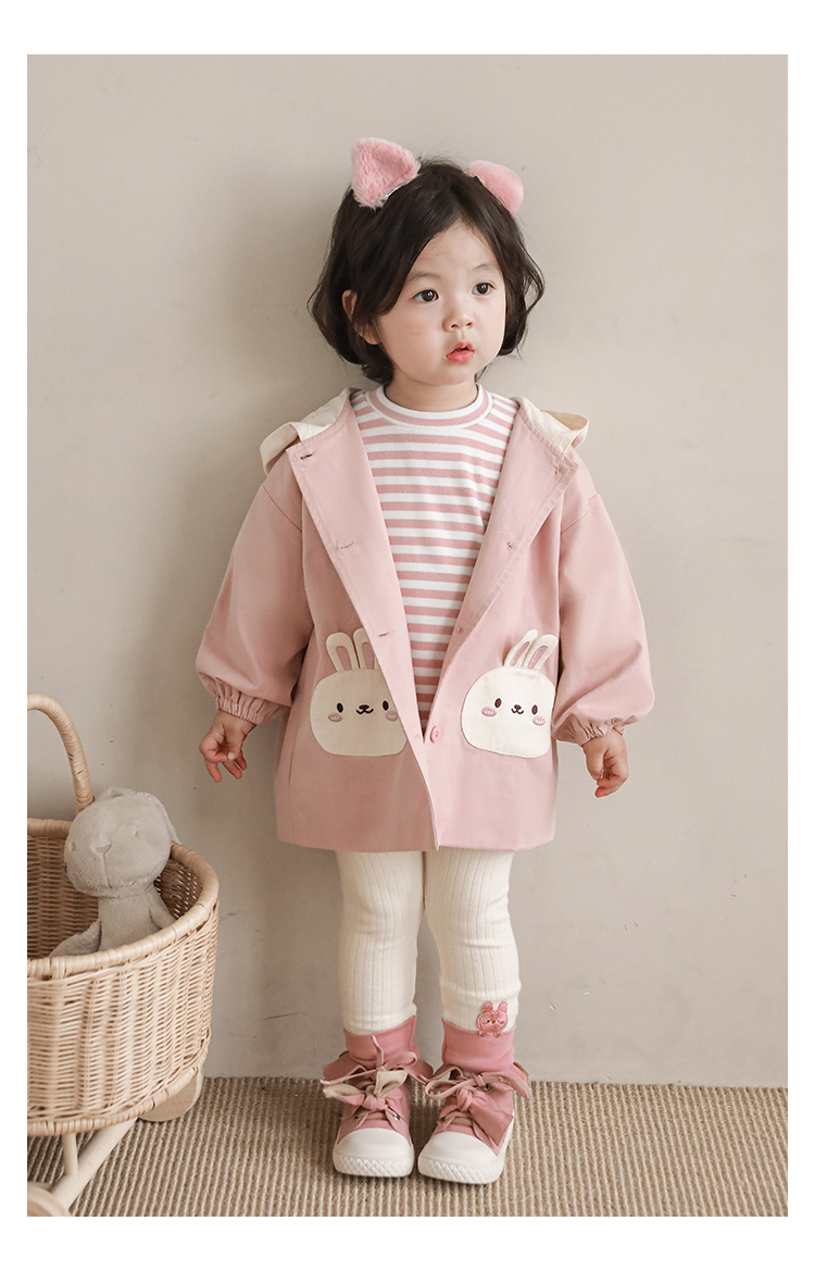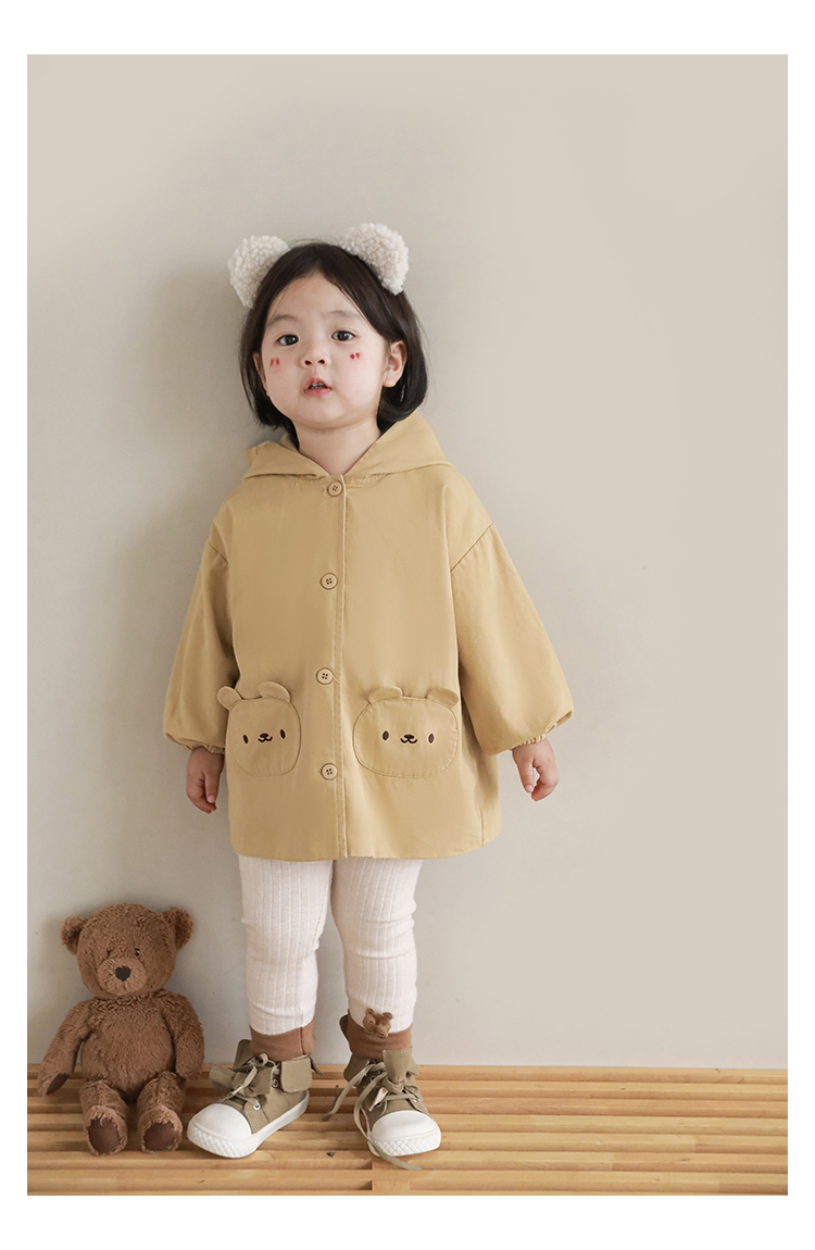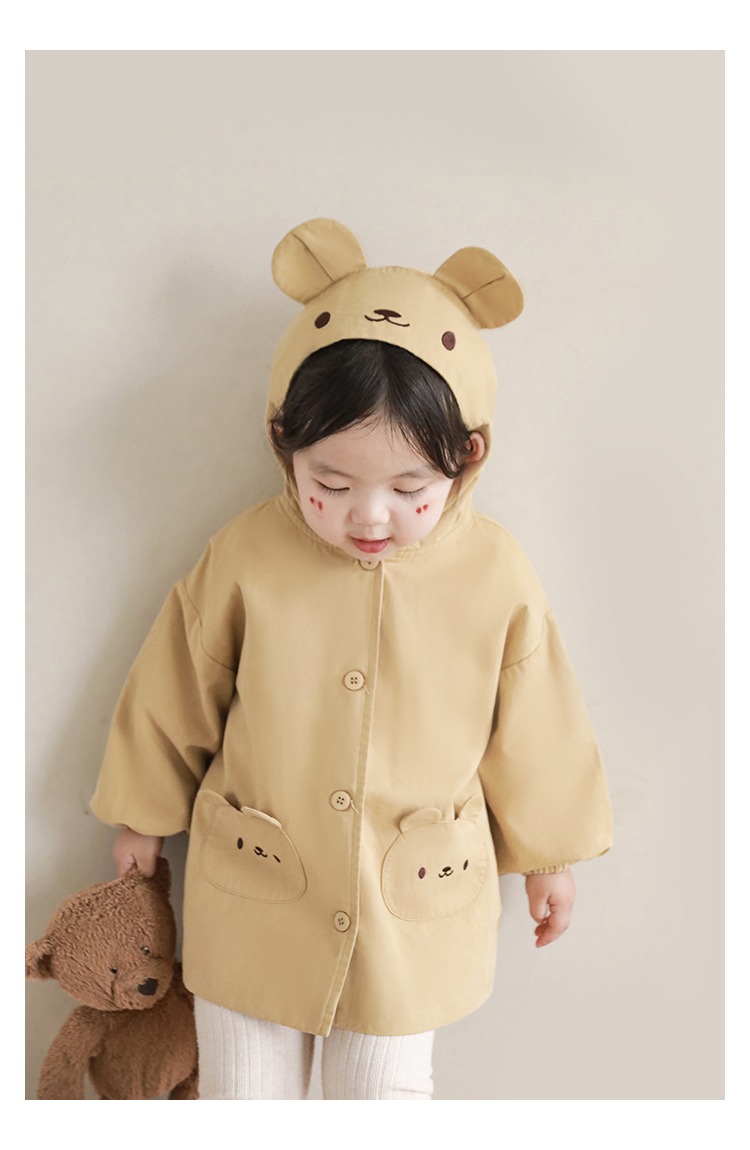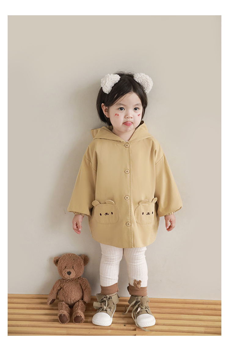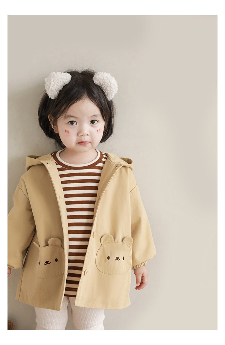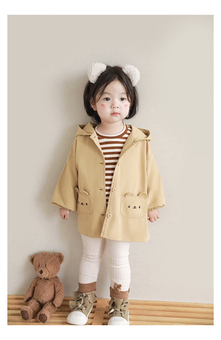 여자의 봄과 가을 코트 귀 후드 만화 트렌치 코트 어린이 패션 패치 자수 긴 소매 겉옷