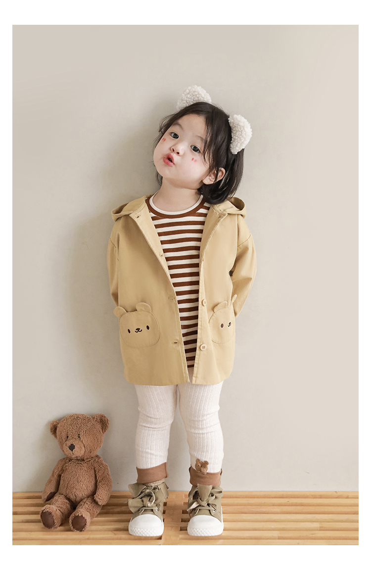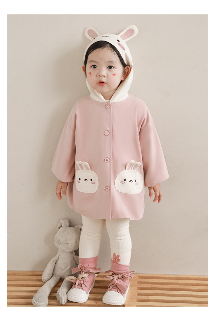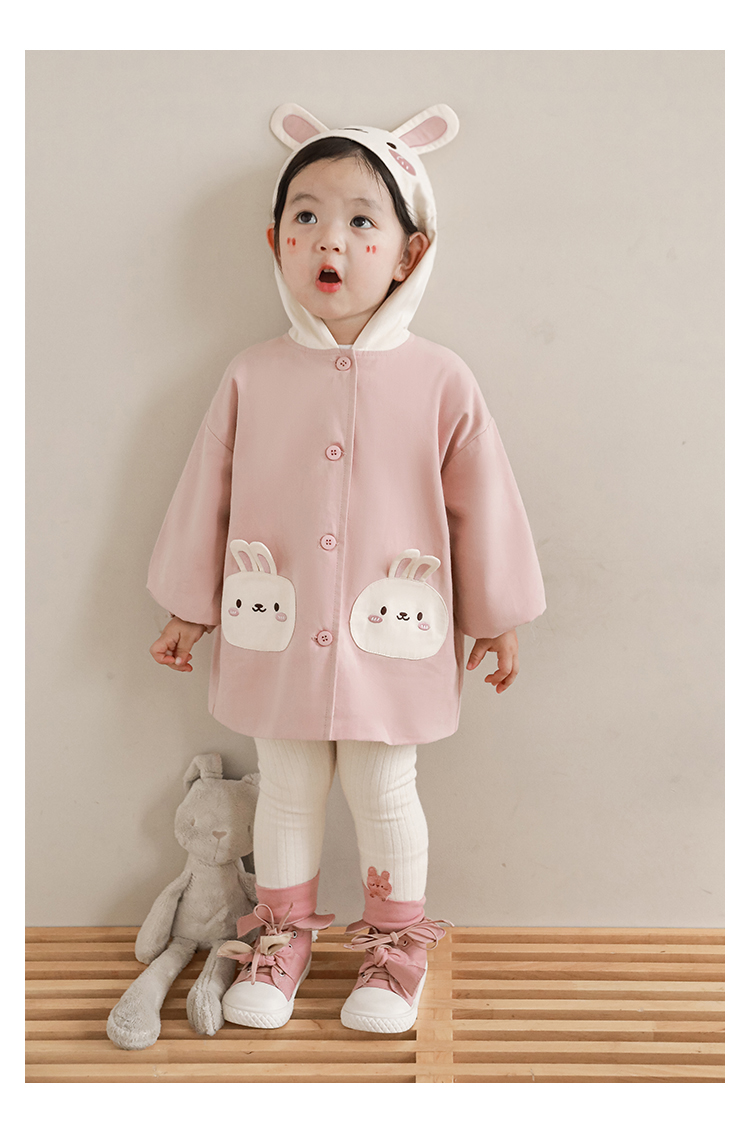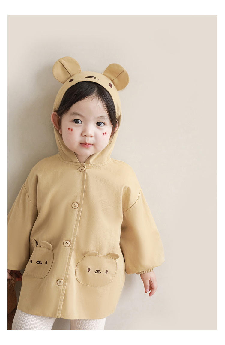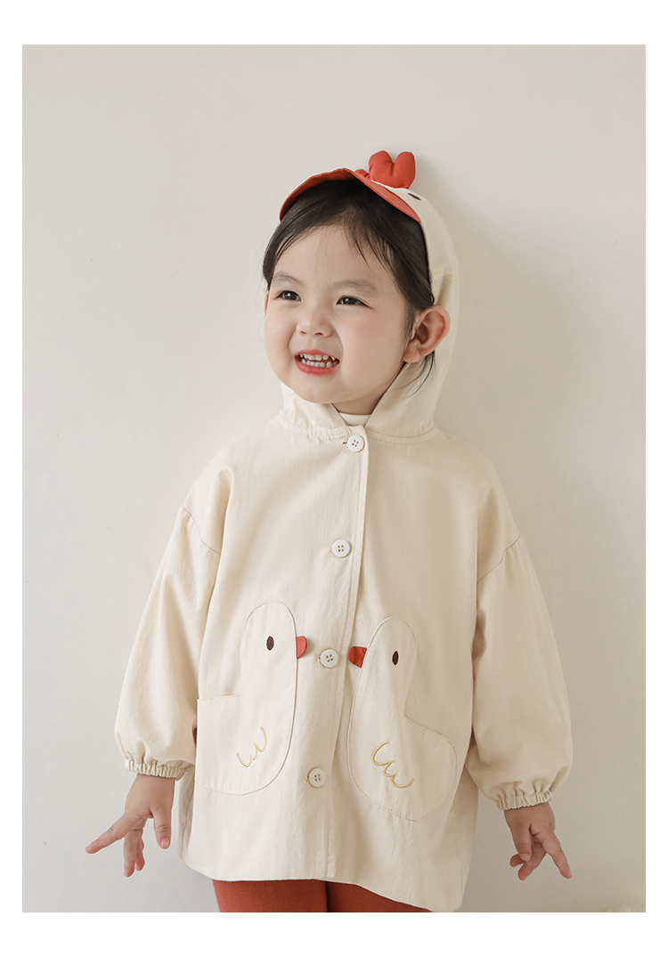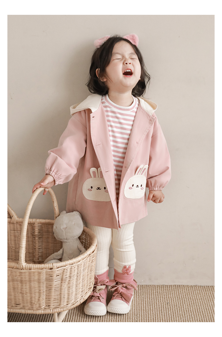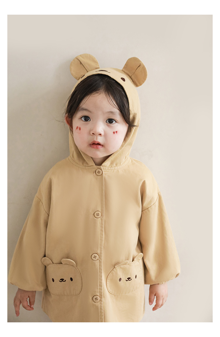여자의 봄과 가을 코트 귀 후드 만화 트렌치 코트 어린이 패션 패치 자수 긴 소매 겉옷