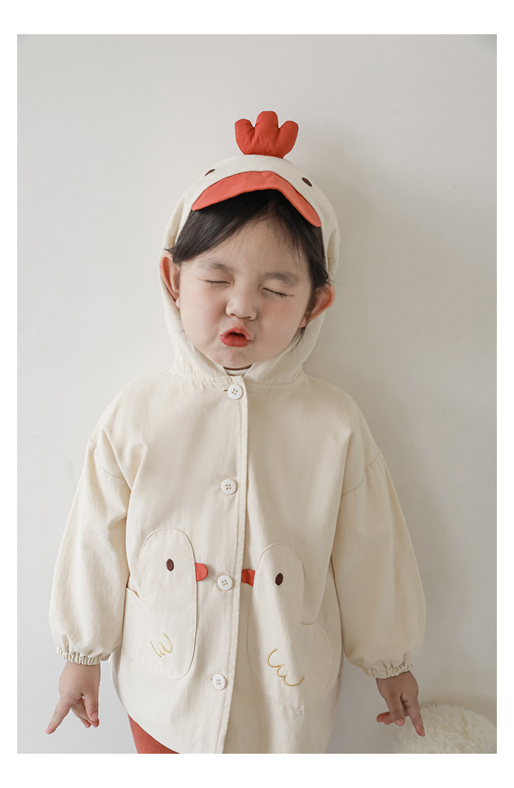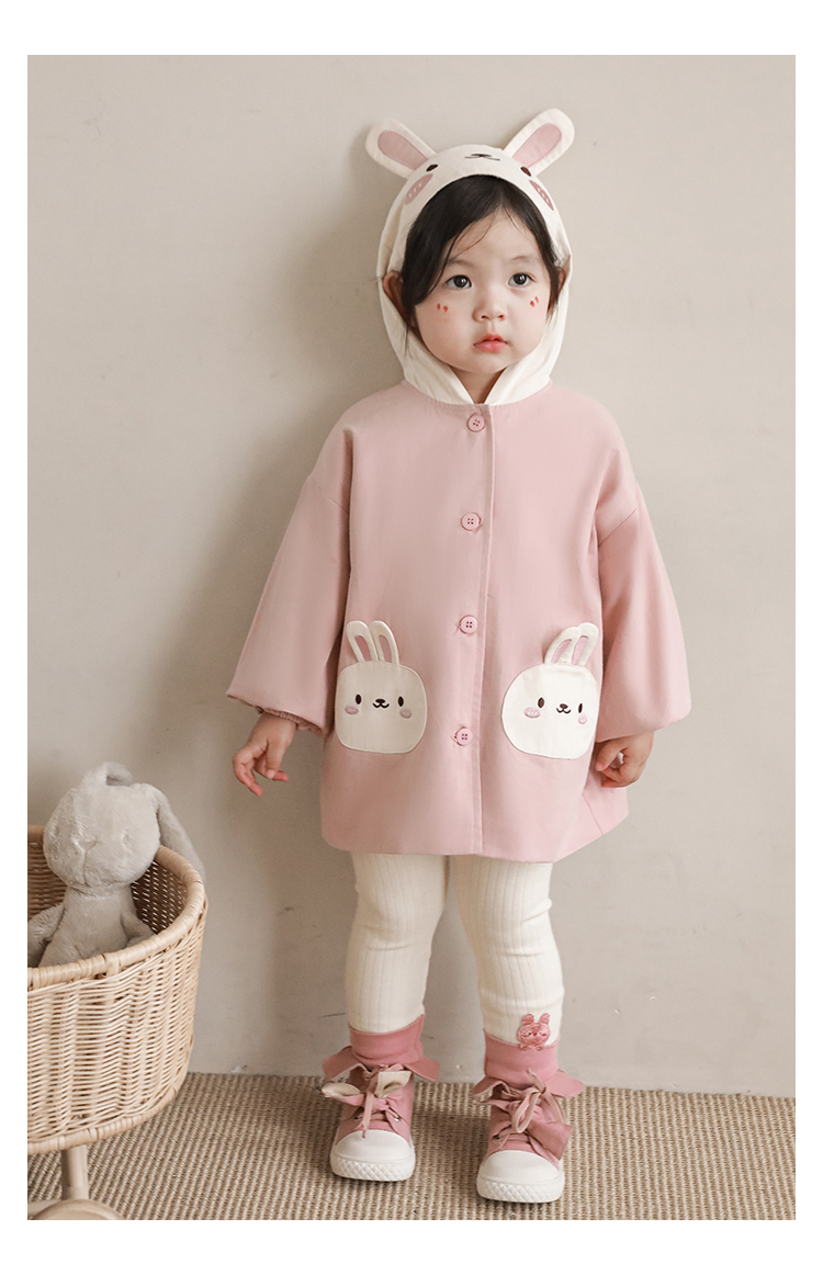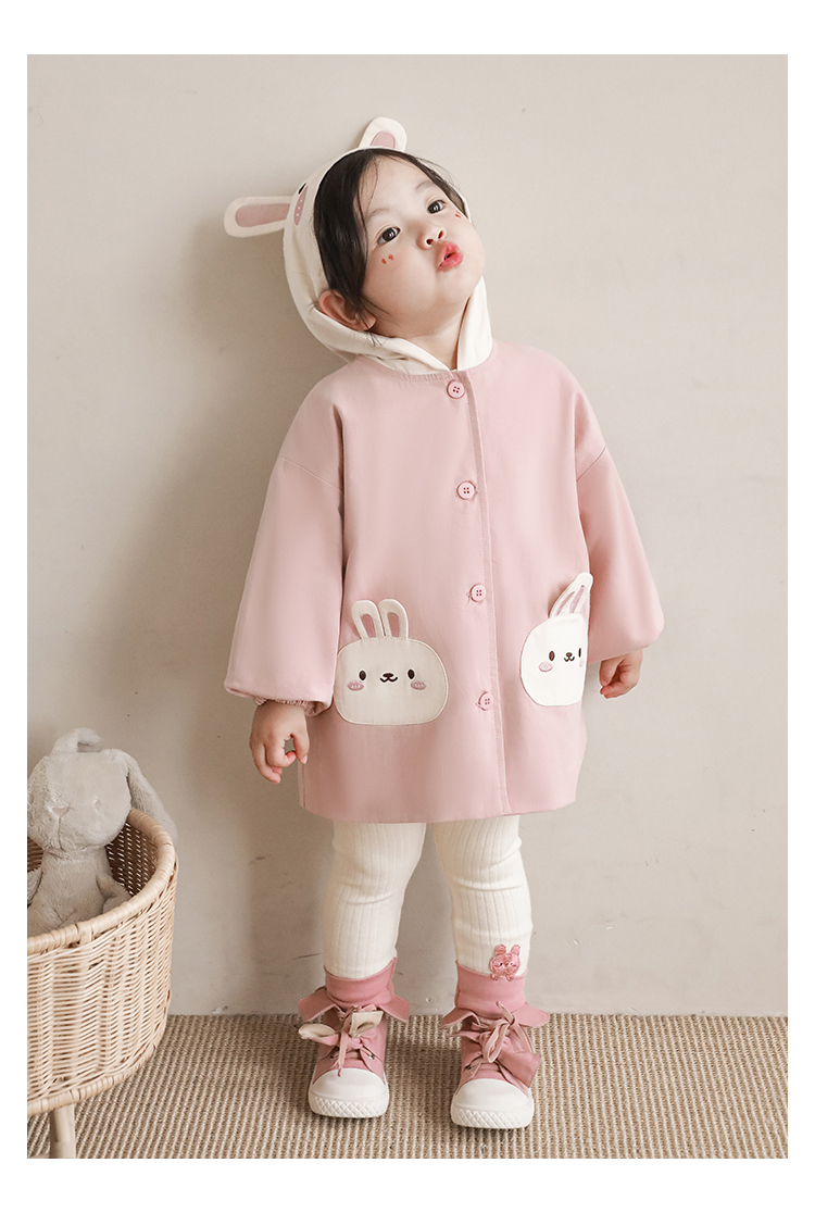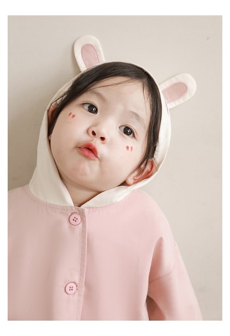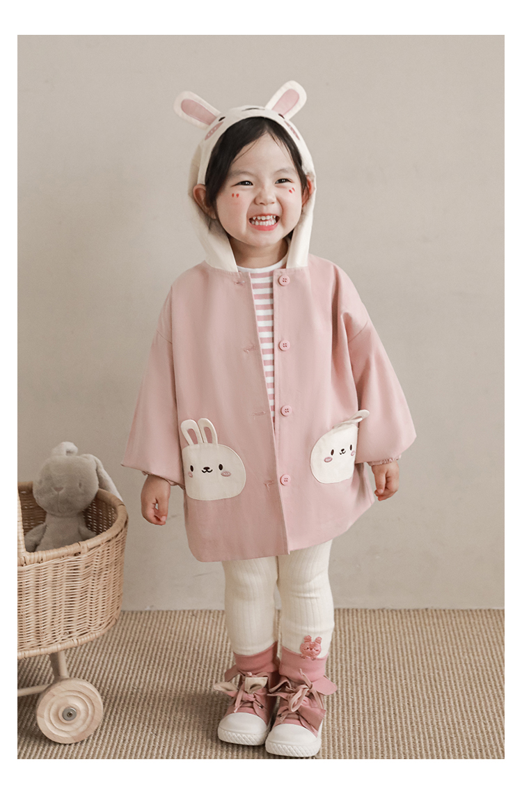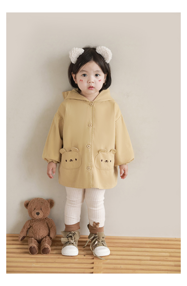 여자의 봄과 가을 코트 귀 후드 만화 트렌치 코트 어린이 패션 패치 자수 긴 소매 겉옷