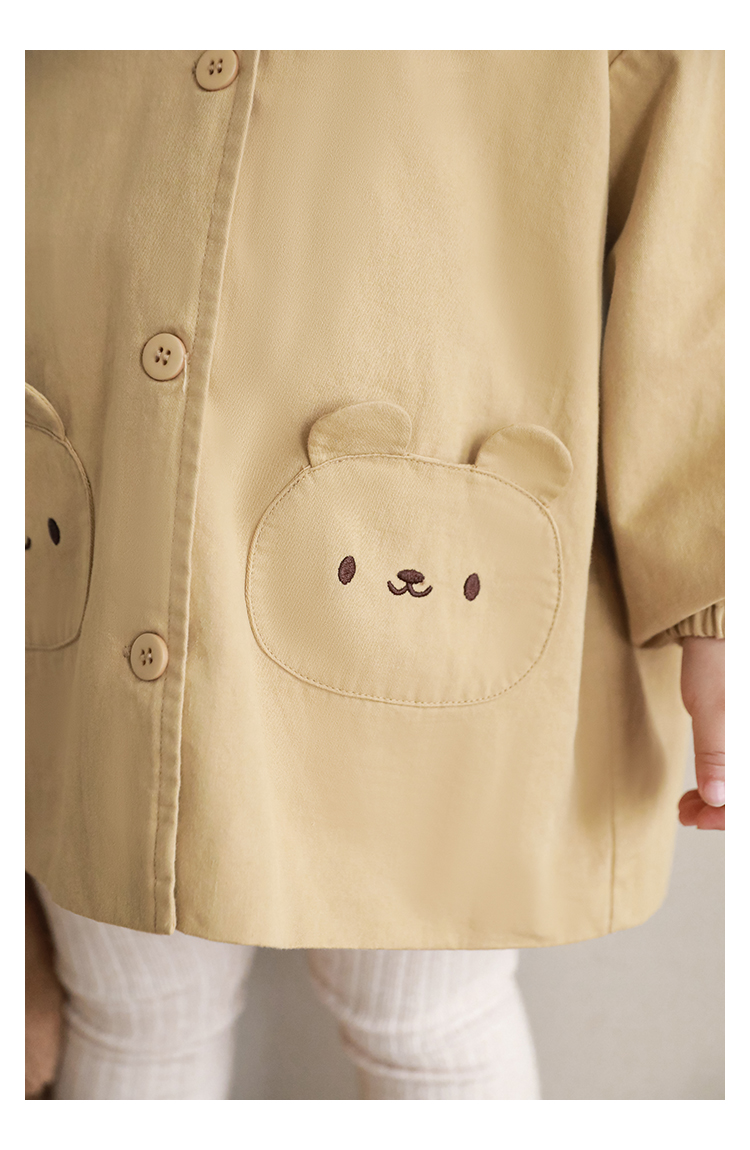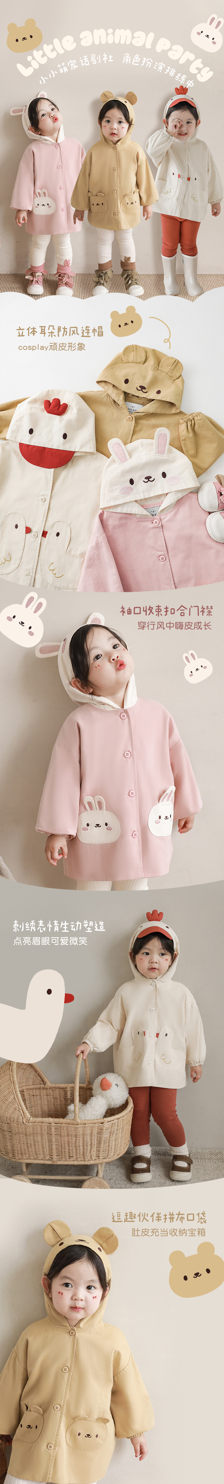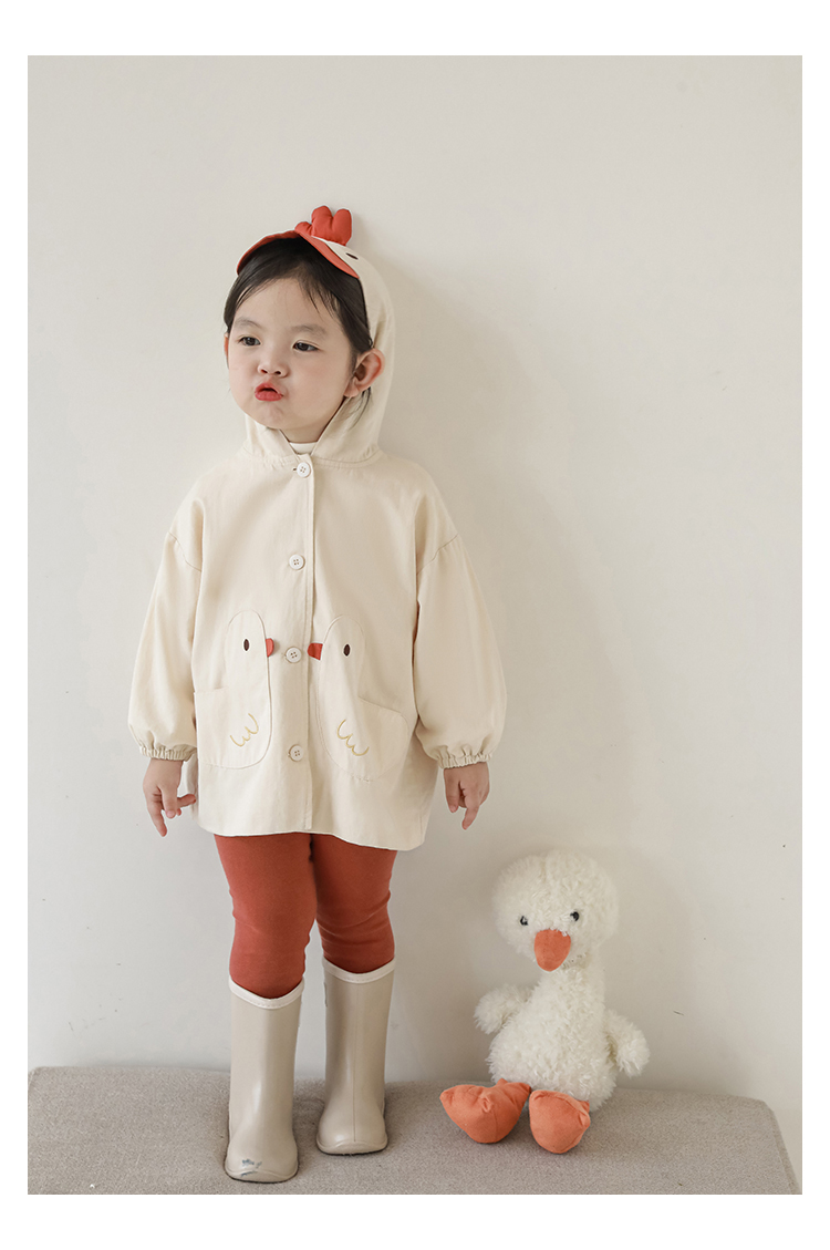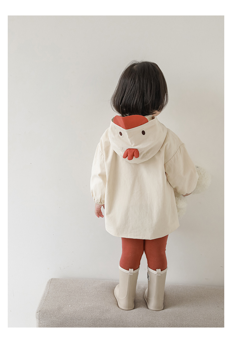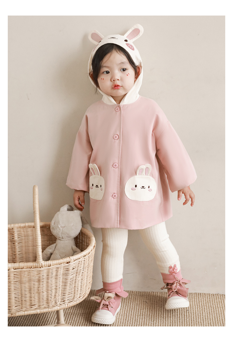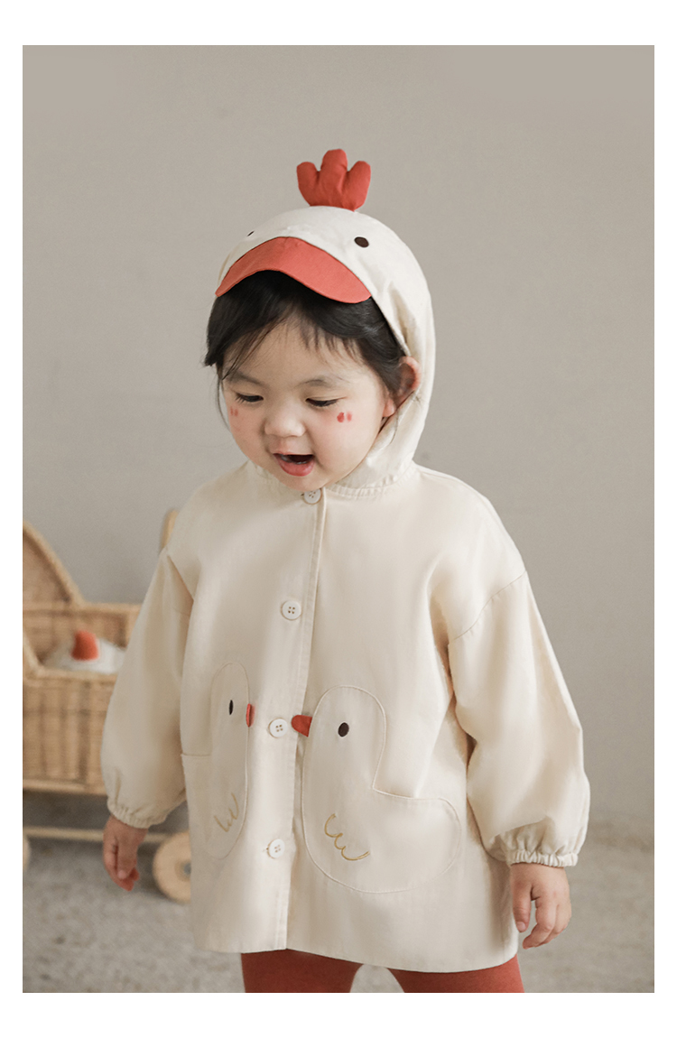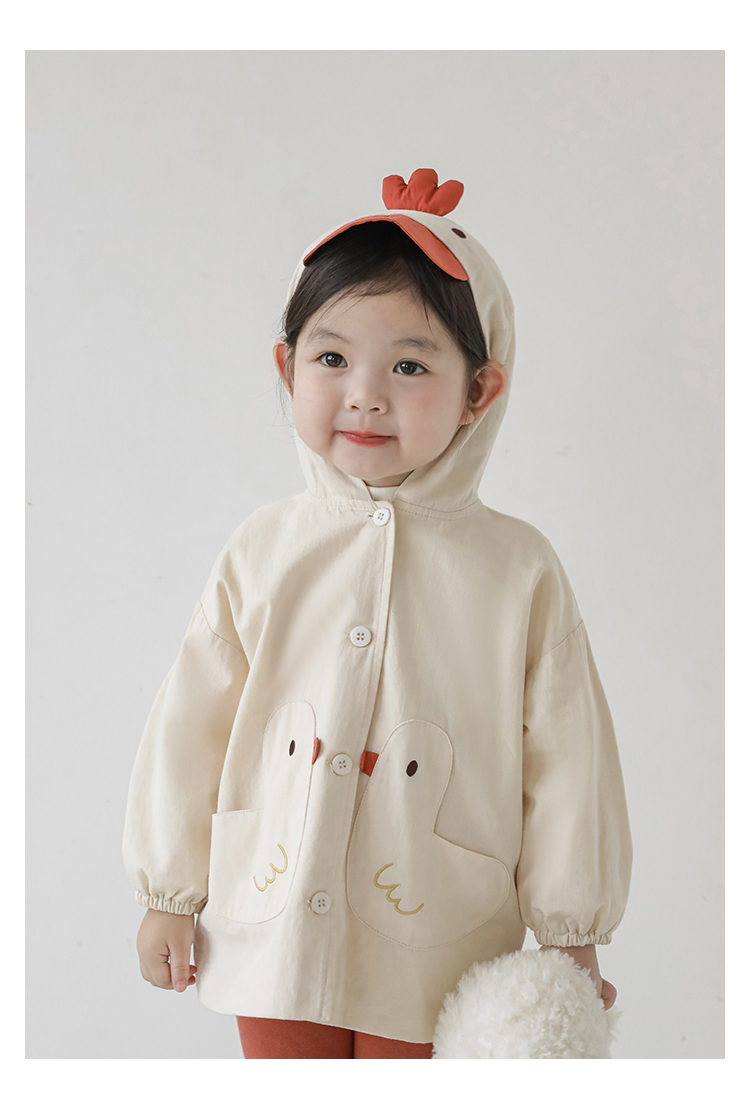 여자의 봄과 가을 코트 귀 후드 만화 트렌치 코트 어린이 패션 패치 자수 긴 소매 겉옷