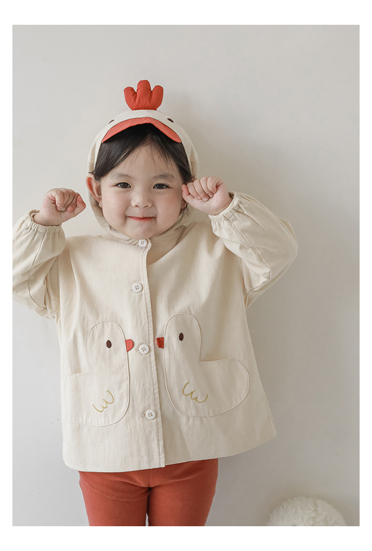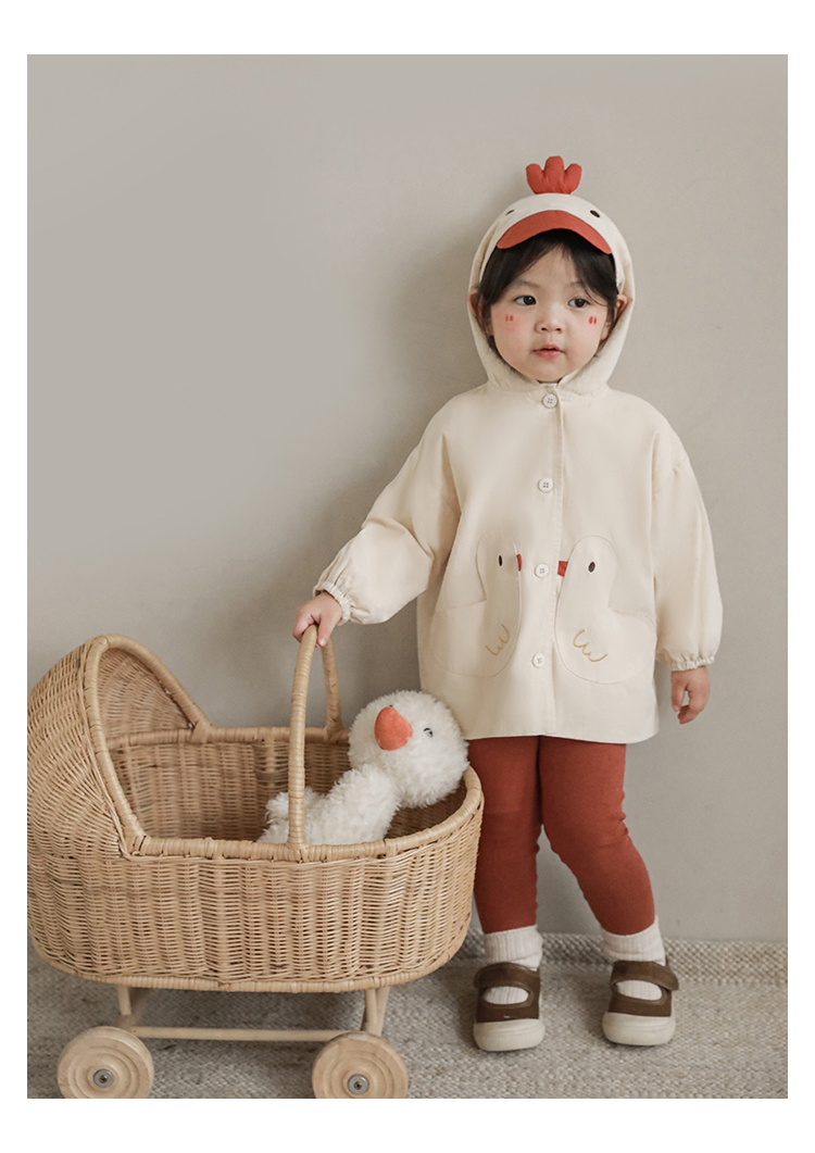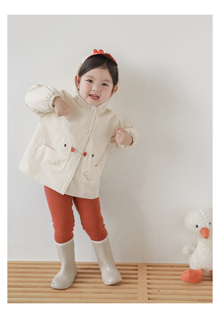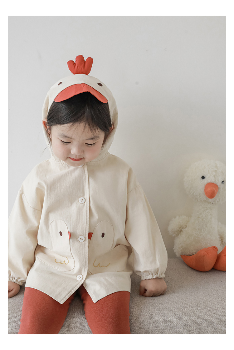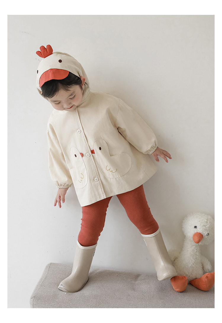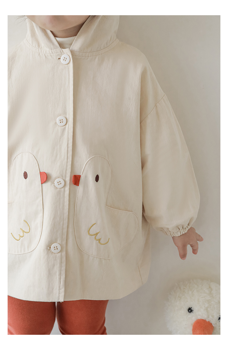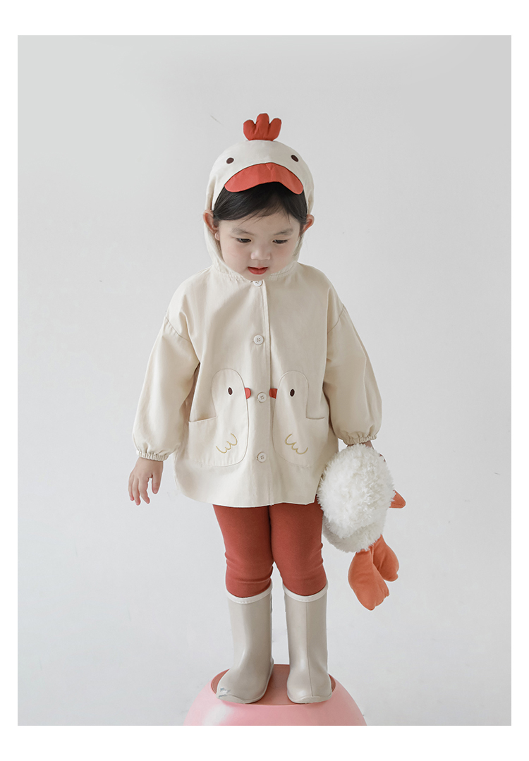 여자의 봄과 가을 코트 귀 후드 만화 트렌치 코트 어린이 패션 패치 자수 긴 소매 겉옷