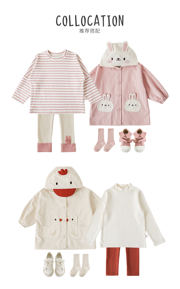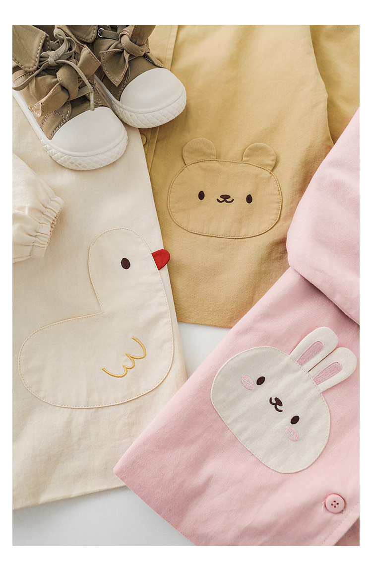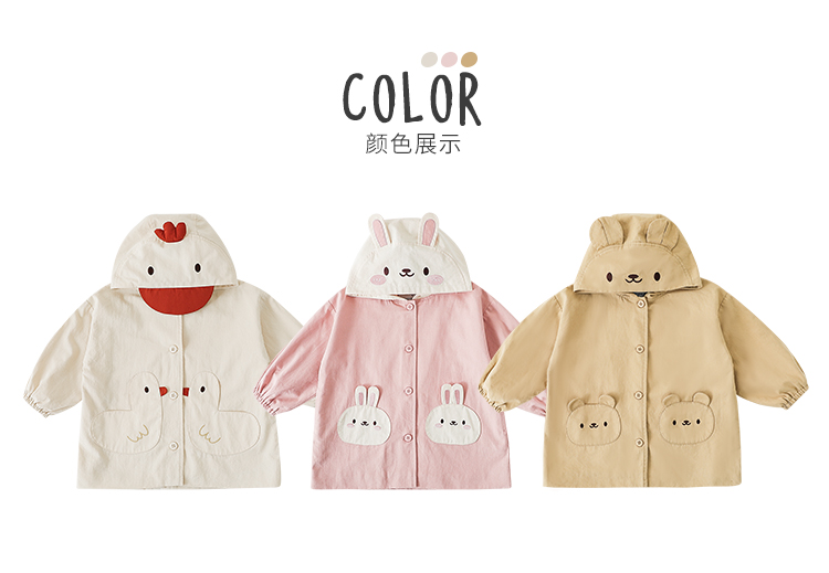 여자의 봄과 가을 코트 귀 후드 만화 트렌치 코트 어린이 패션 패치 자수 긴 소매 겉옷스토어 가기