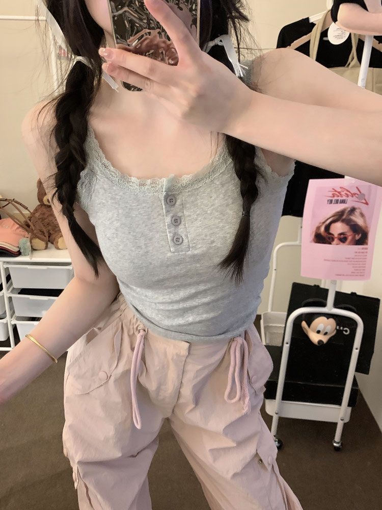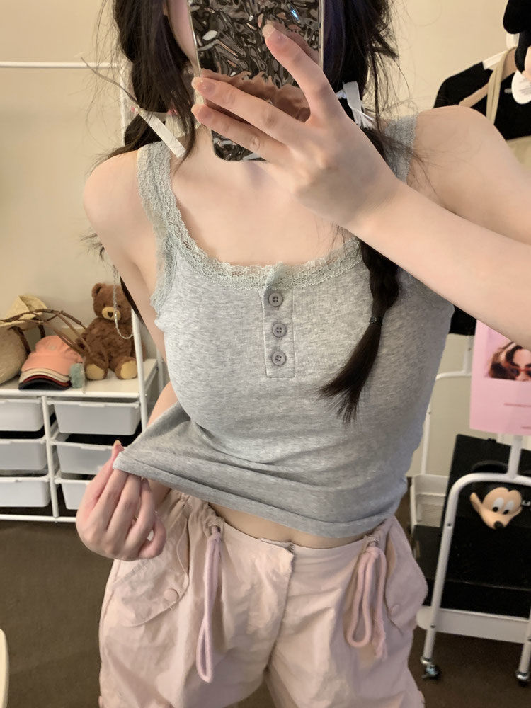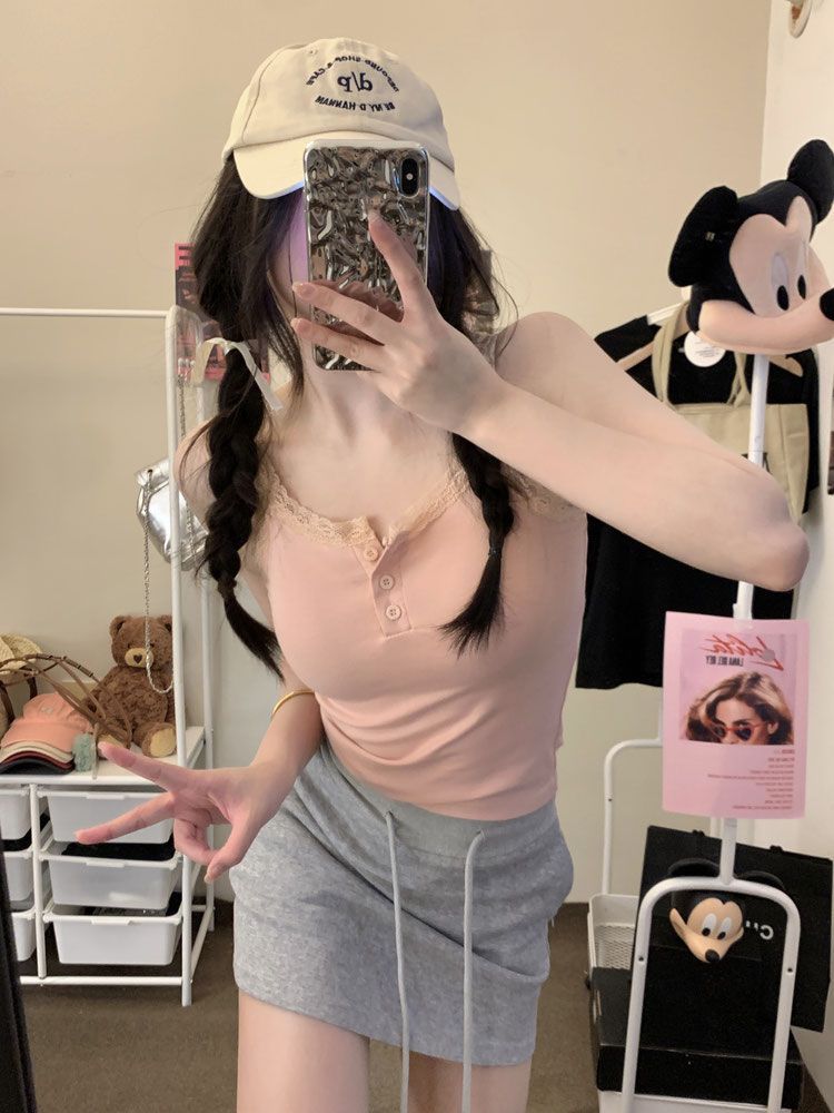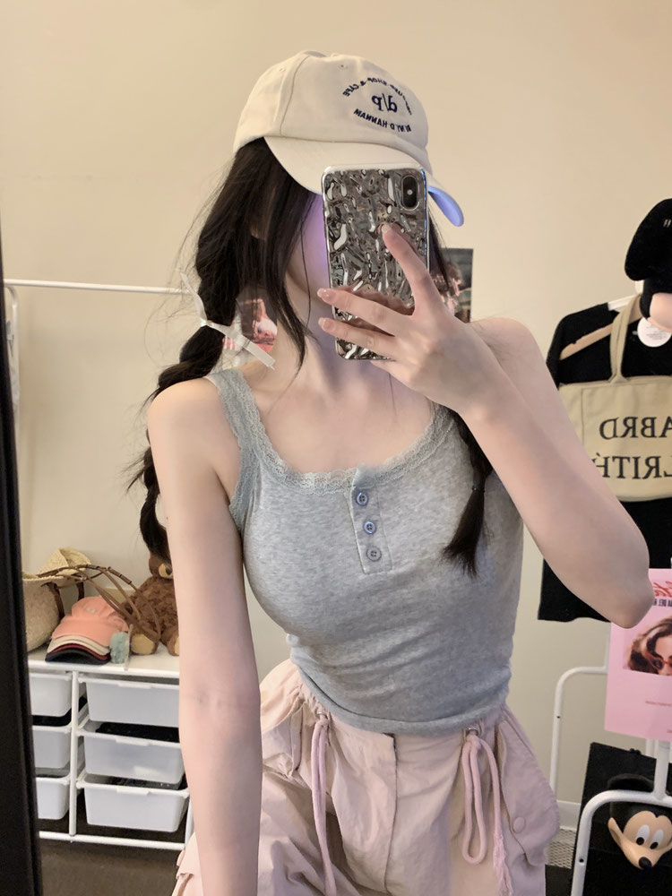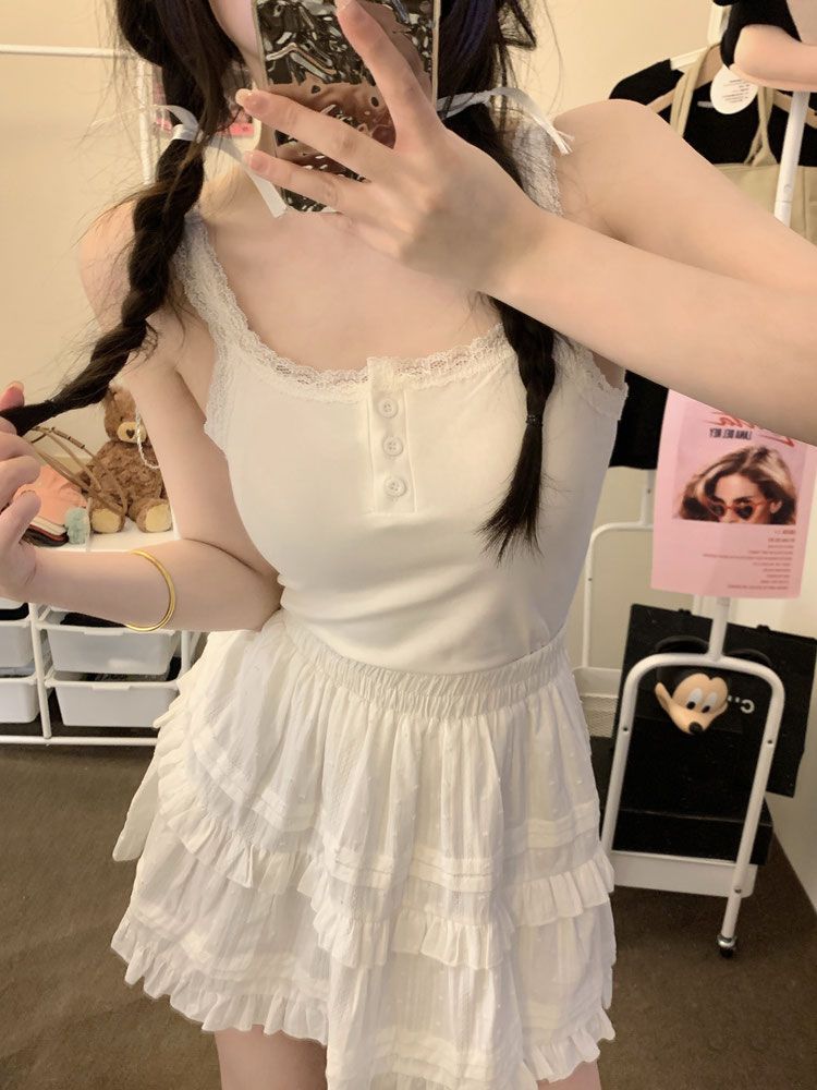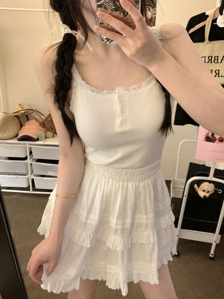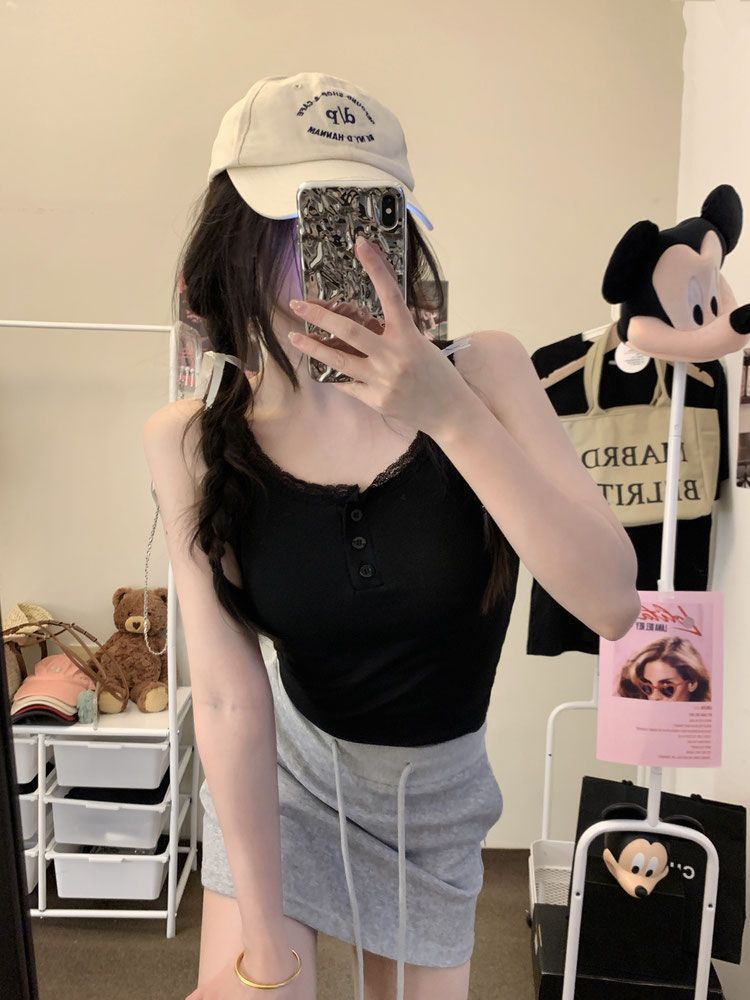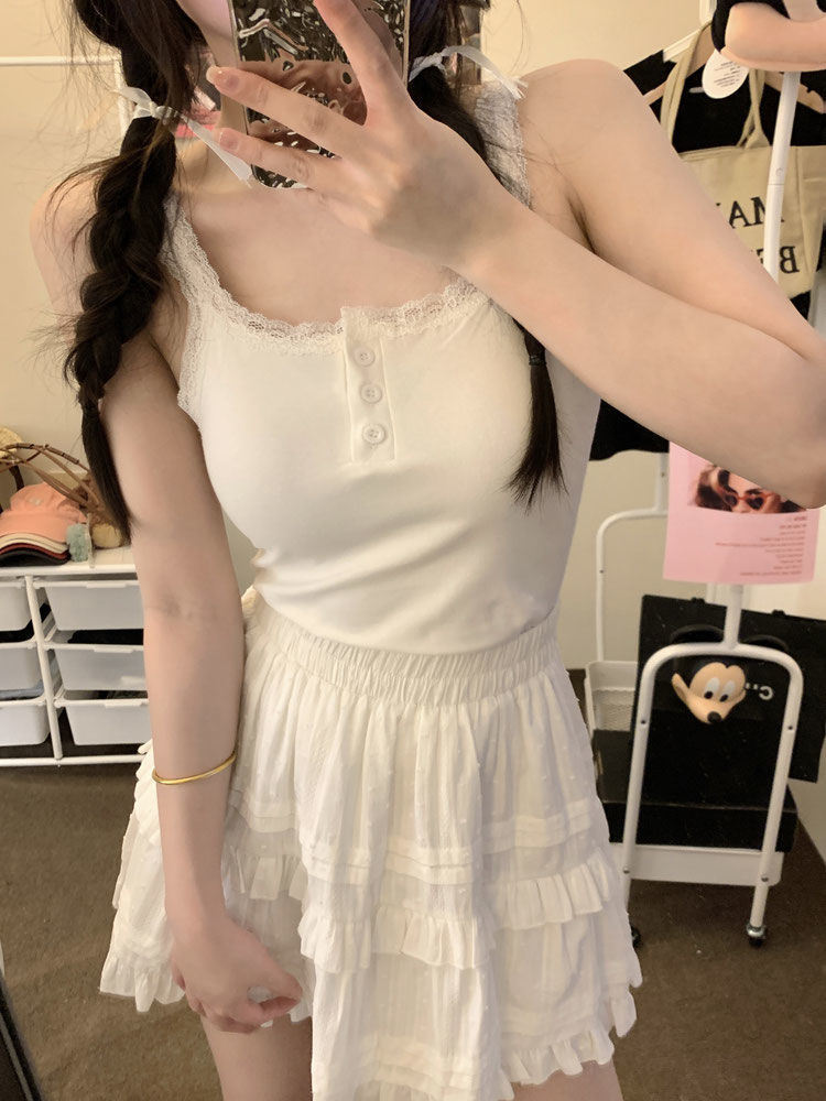 Spice Girls White Pure Desire Lace Small Vest with Sling Women's Slim-fit Inner 원피스베이스 쇼트 탑 (가슴 패드 포함)스토어 가기