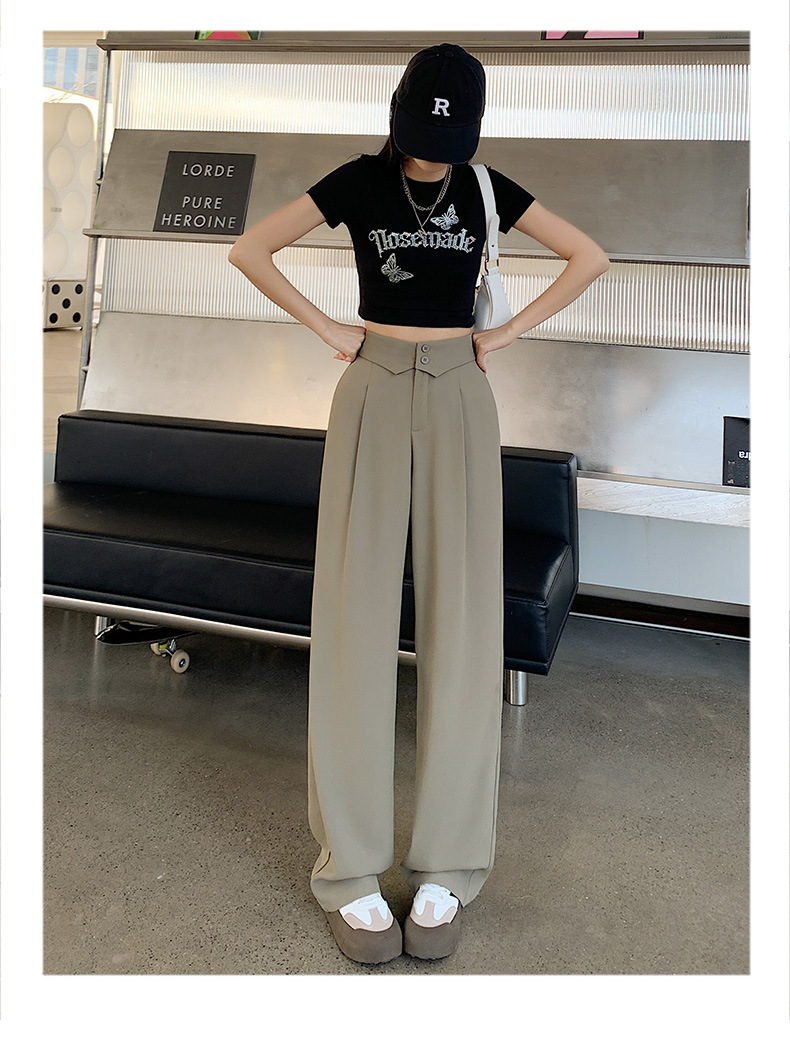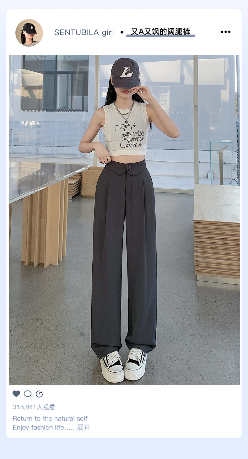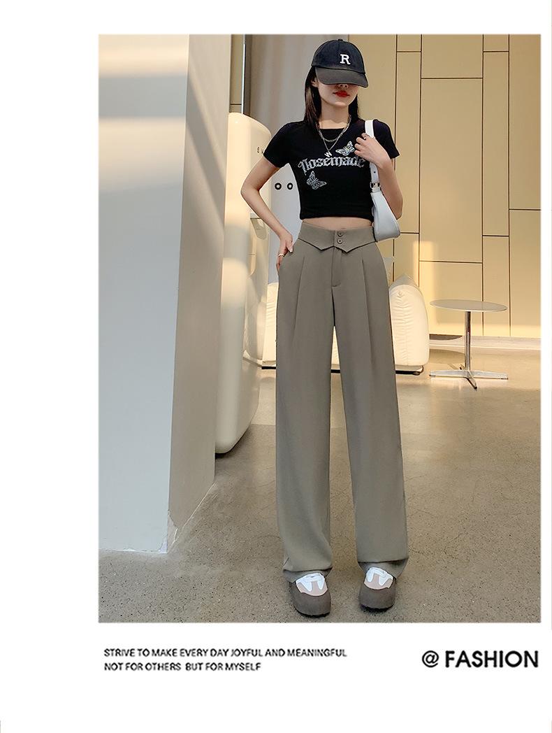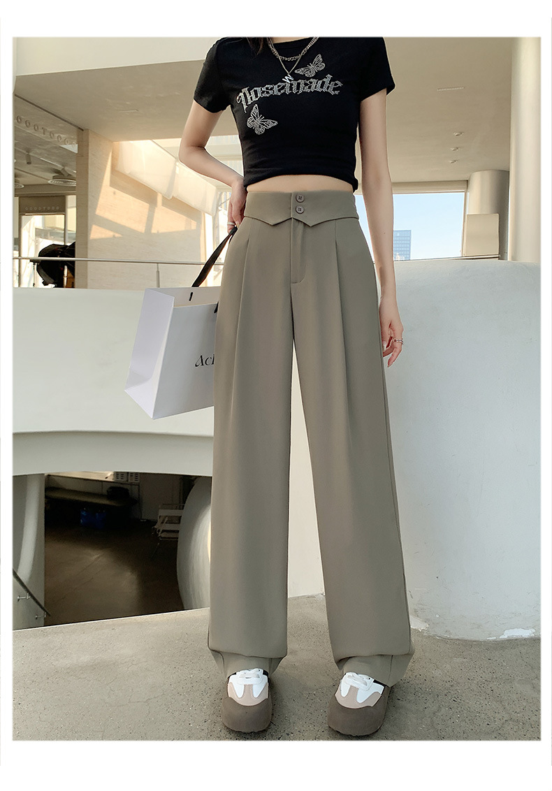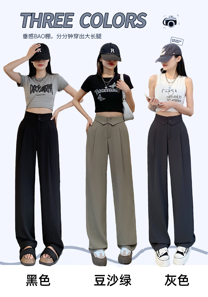 카메오 그린 와이드 레그 팬츠 여성 봄과 여름 작은 얇은 드레이프 고급 스트레이트 세트 캐주얼 바지 도매스토어 가기