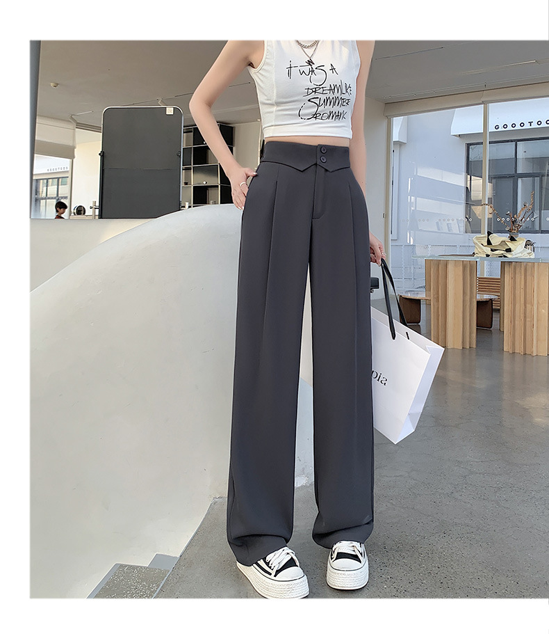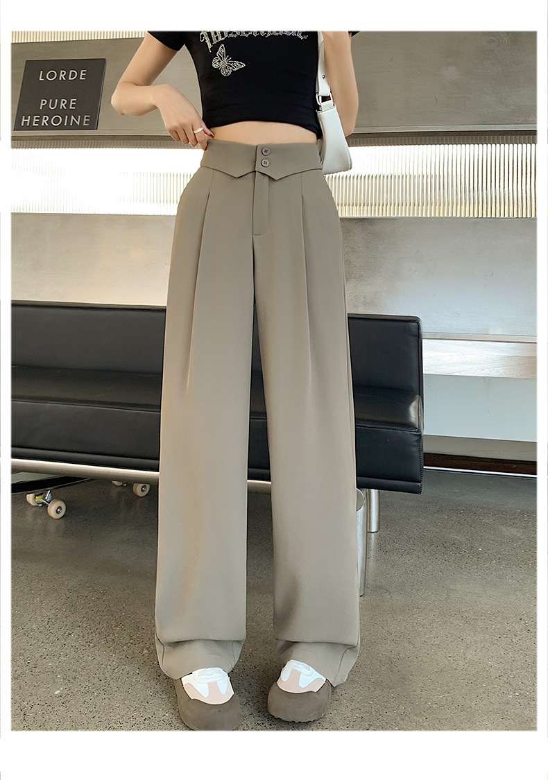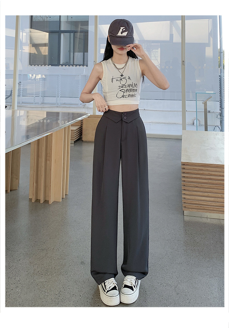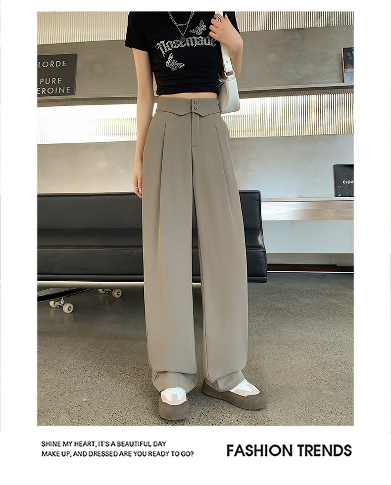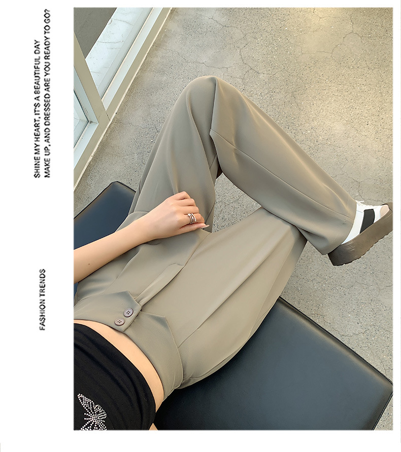 카메오 그린 와이드 레그 팬츠 여성 봄과 여름 작은 얇은 드레이프 고급 스트레이트 세트 캐주얼 바지 도매스토어 가기