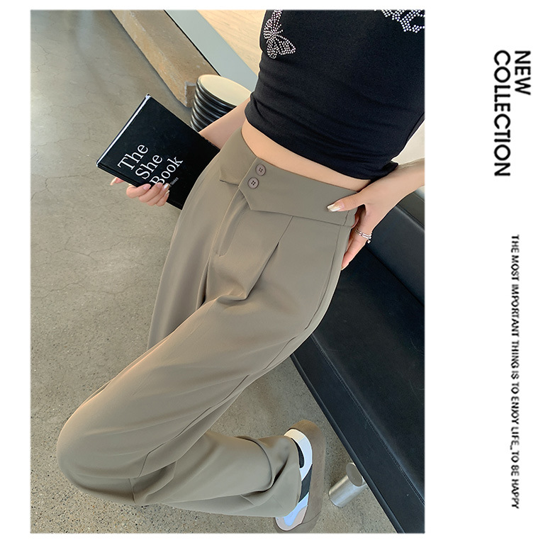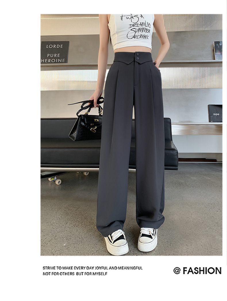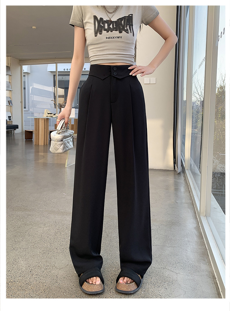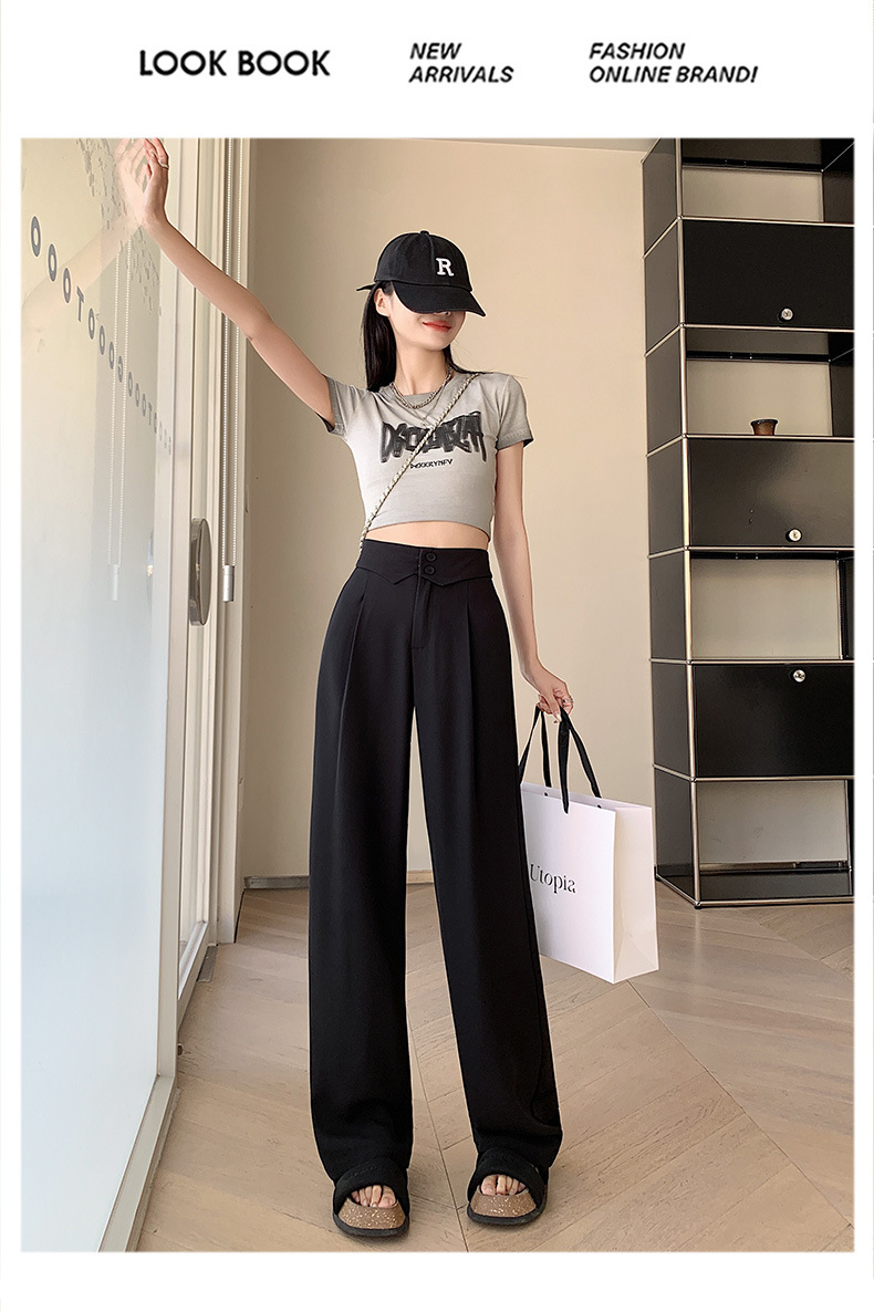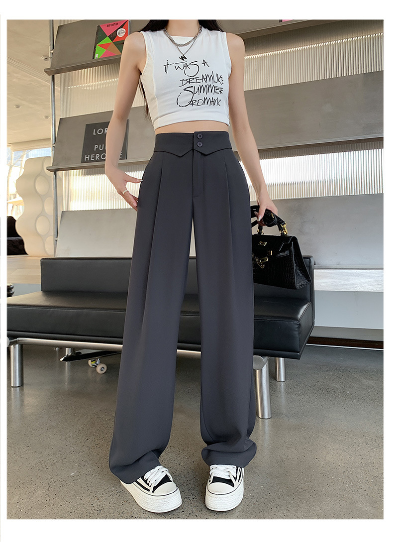 카메오 그린 와이드 레그 팬츠 여성 봄과 여름 작은 얇은 드레이프 고급 스트레이트 세트 캐주얼 바지 도매스토어 가기