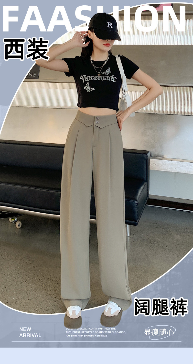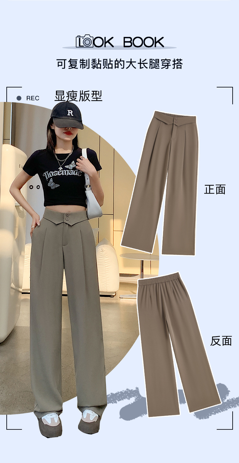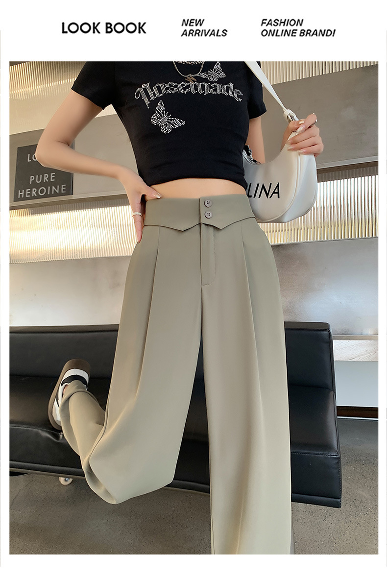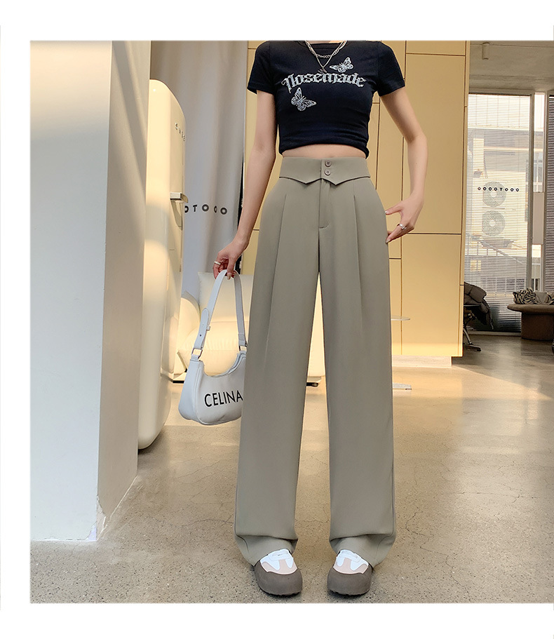 카메오 그린 와이드 레그 팬츠 여성 봄과 여름 작은 얇은 드레이프 고급 스트레이트 세트 캐주얼 바지 도매