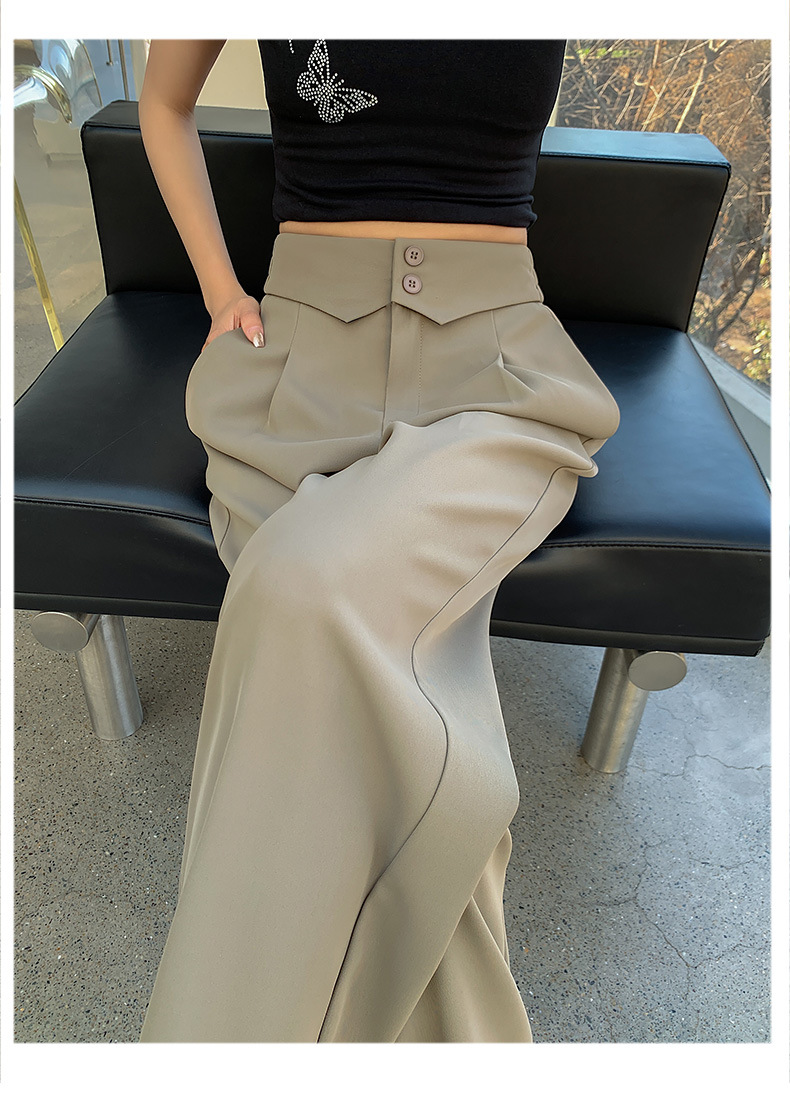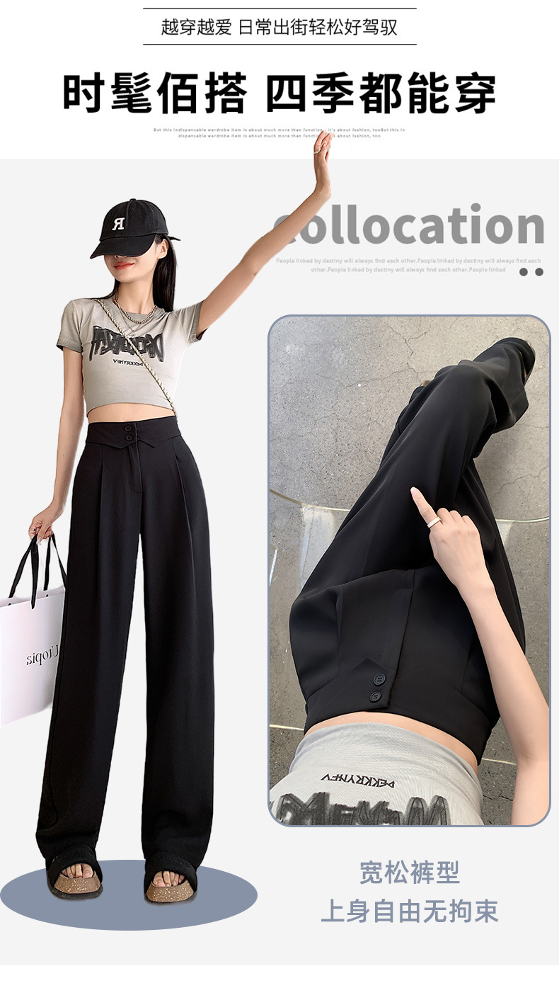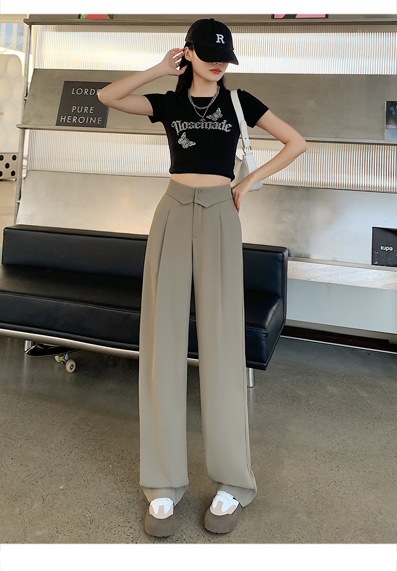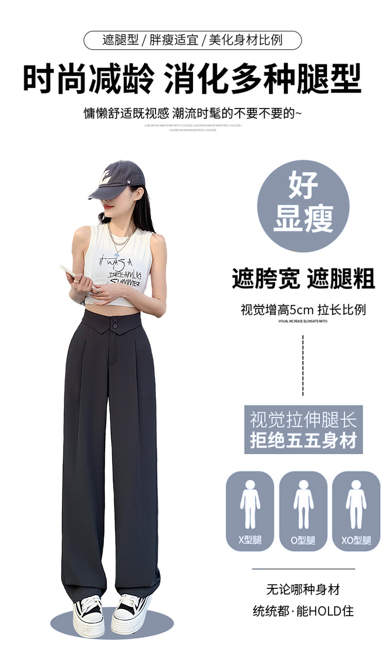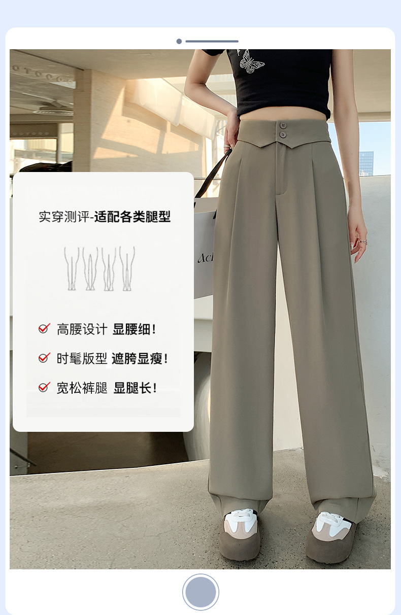 카메오 그린 와이드 레그 팬츠 여성 봄과 여름 작은 얇은 드레이프 고급 스트레이트 세트 캐주얼 바지 도매