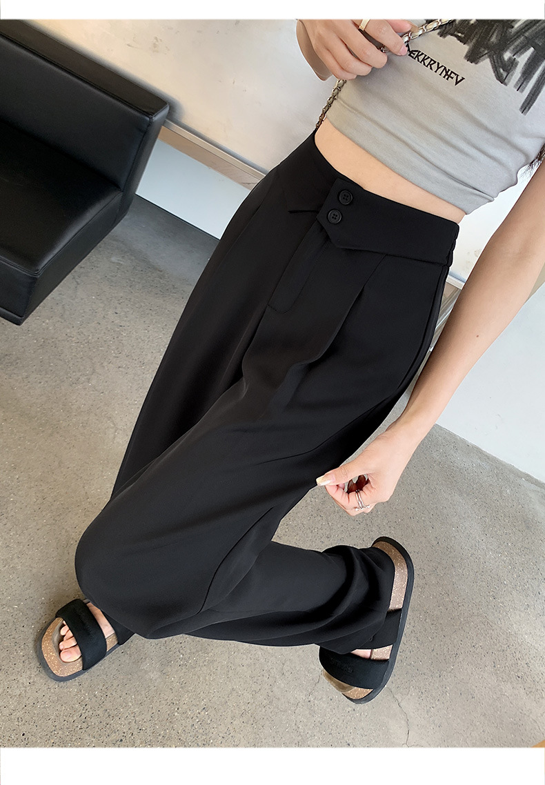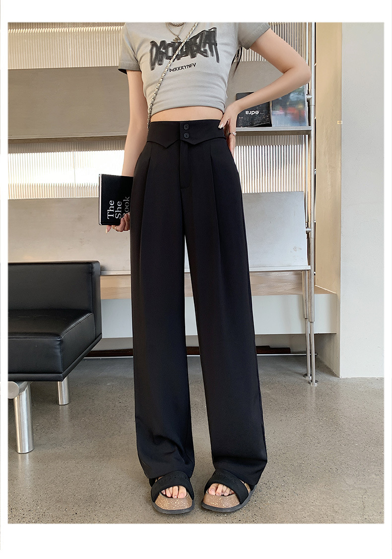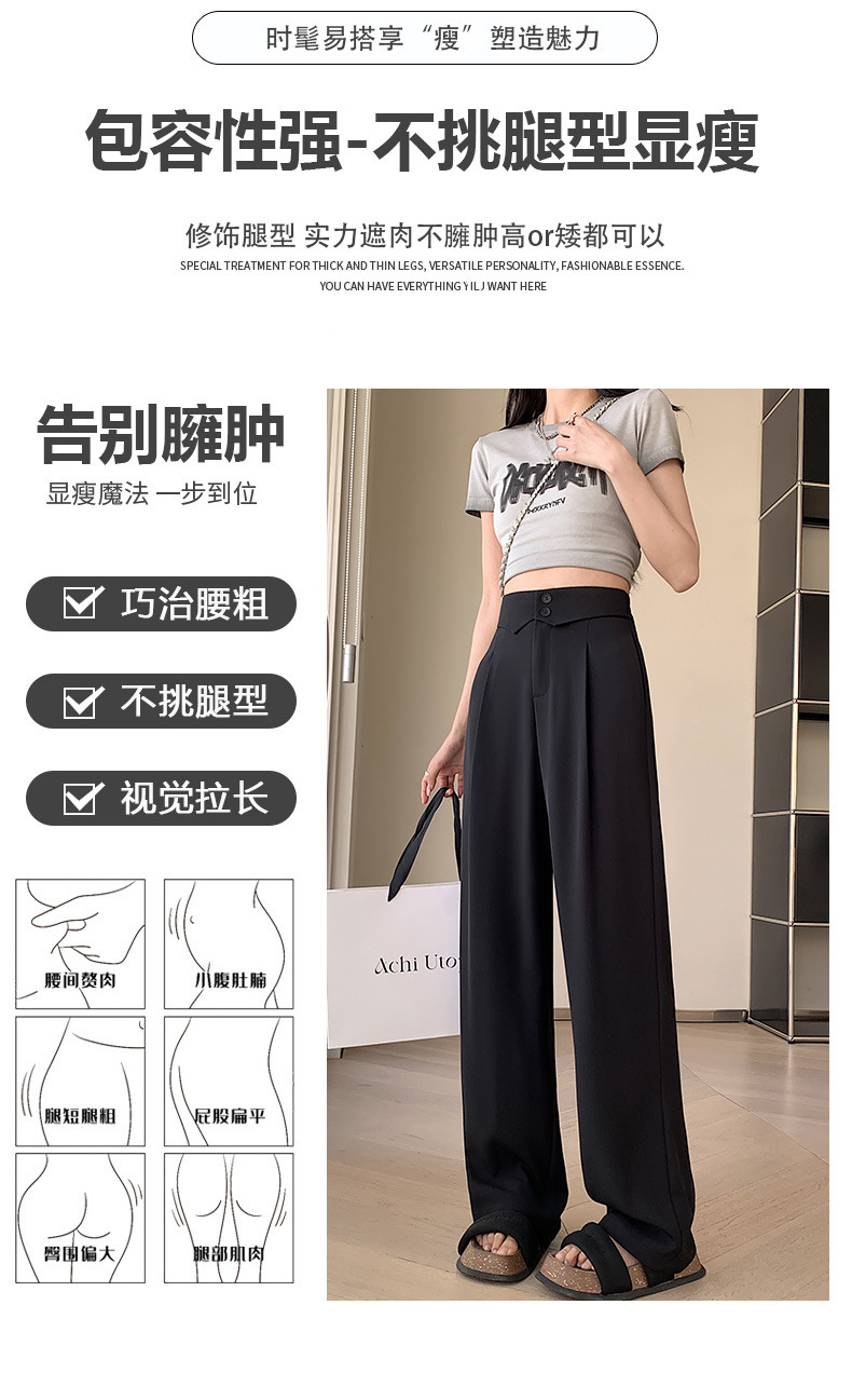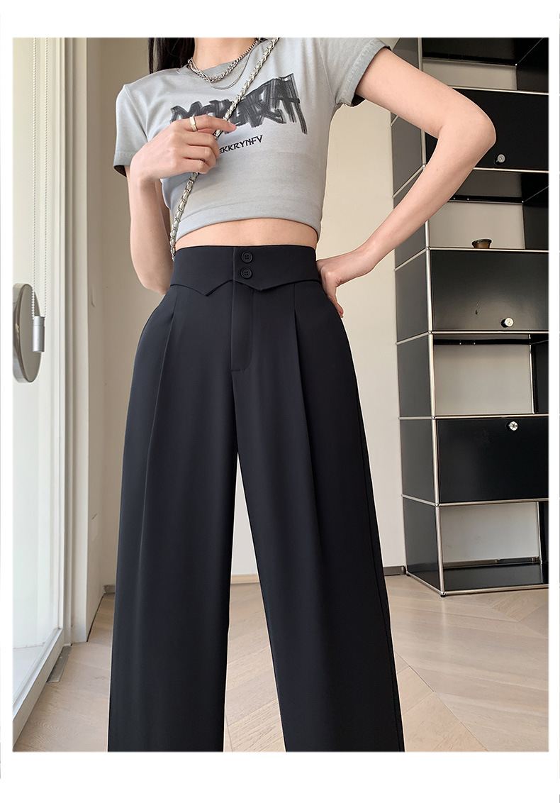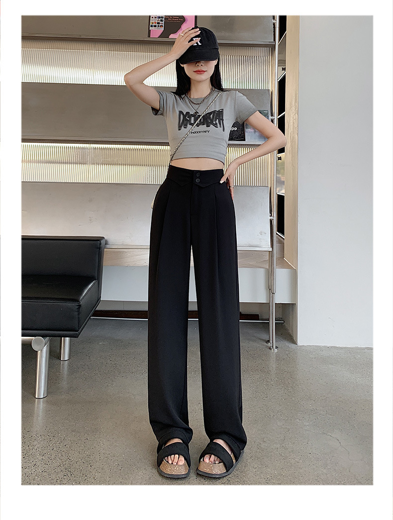 카메오 그린 와이드 레그 팬츠 여성 봄과 여름 작은 얇은 드레이프 고급 스트레이트 세트 캐주얼 바지 도매