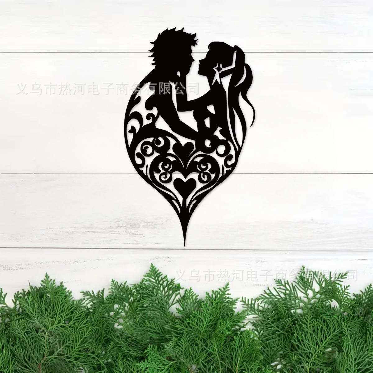 커플 부족 실루엣 아트 누보 벽 아트 금속 벽 아트 데코 벽 매달려 독특한 홈 선물