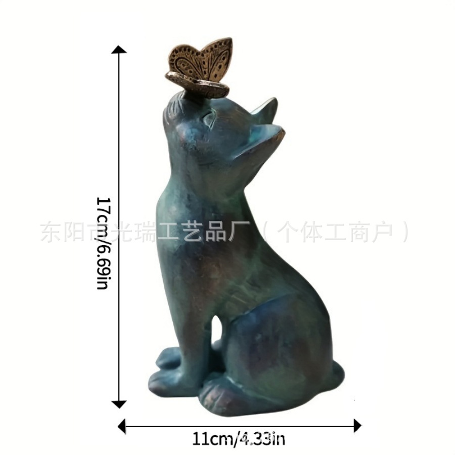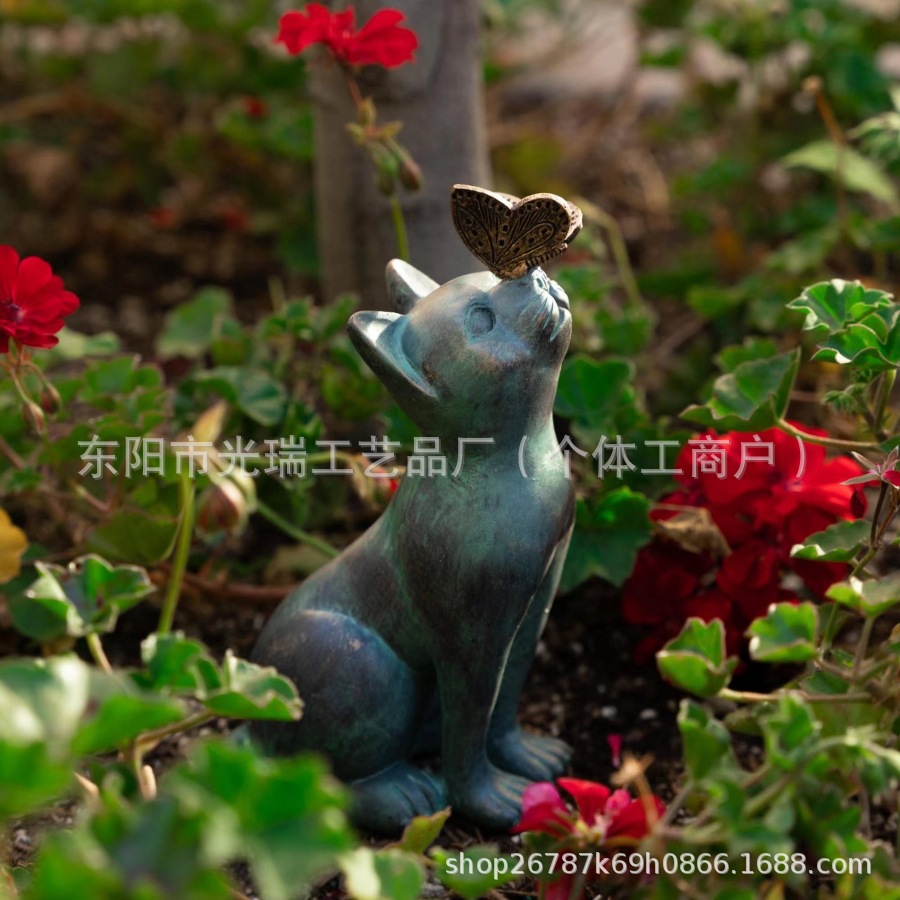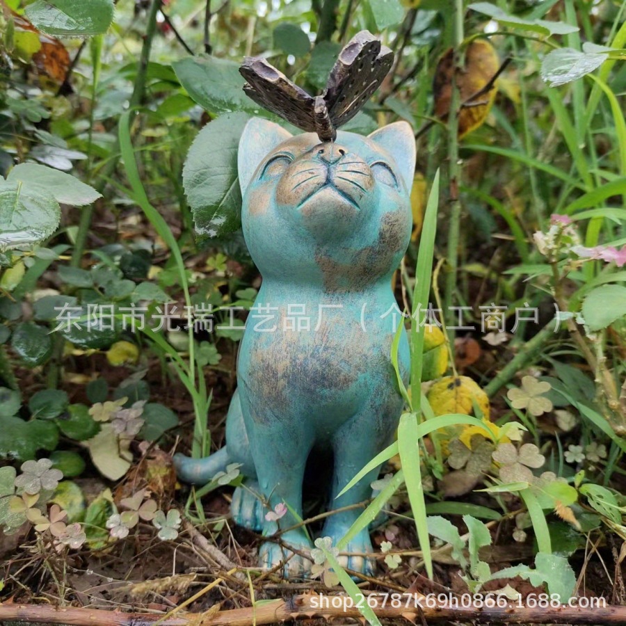 호기심 고양이를 쫓는 국경 나비 실내 및 실외 인형 수지 장식품 귀여운 정원 장식 장식품스토어 가기