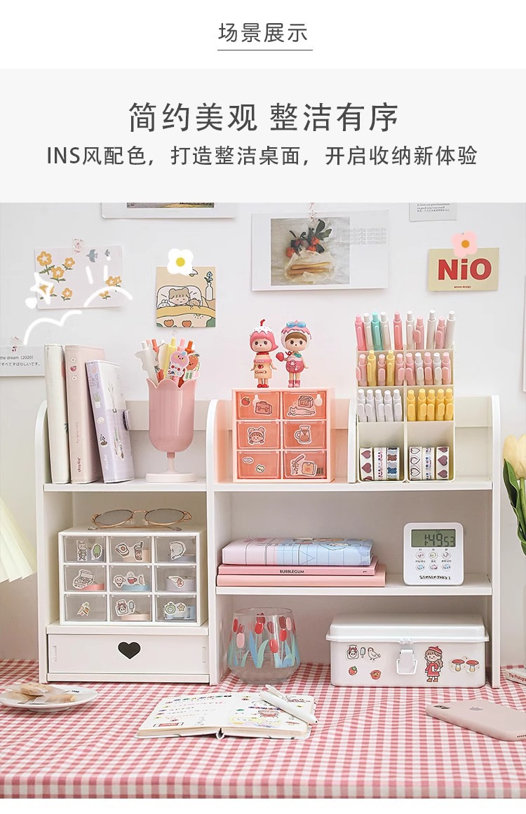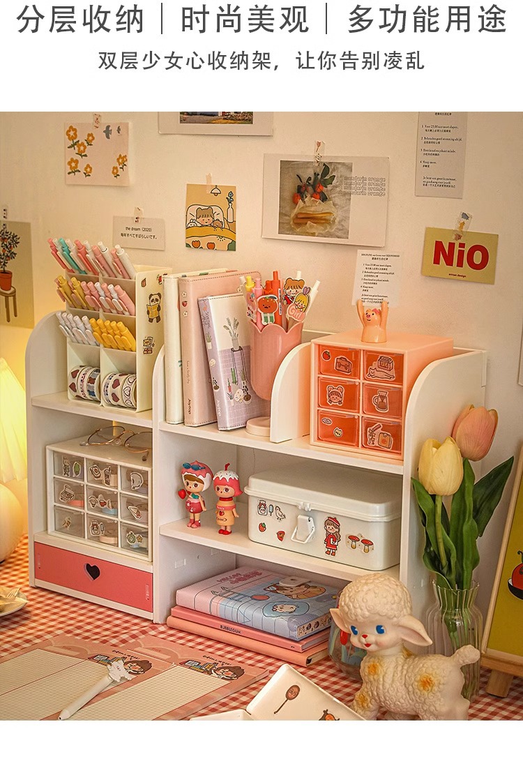 일본 소녀 하트 데스크 보관 상자 화장품 보관 선반 사무용품 데스크탑 정리 서랍 캐비닛스토어 가기