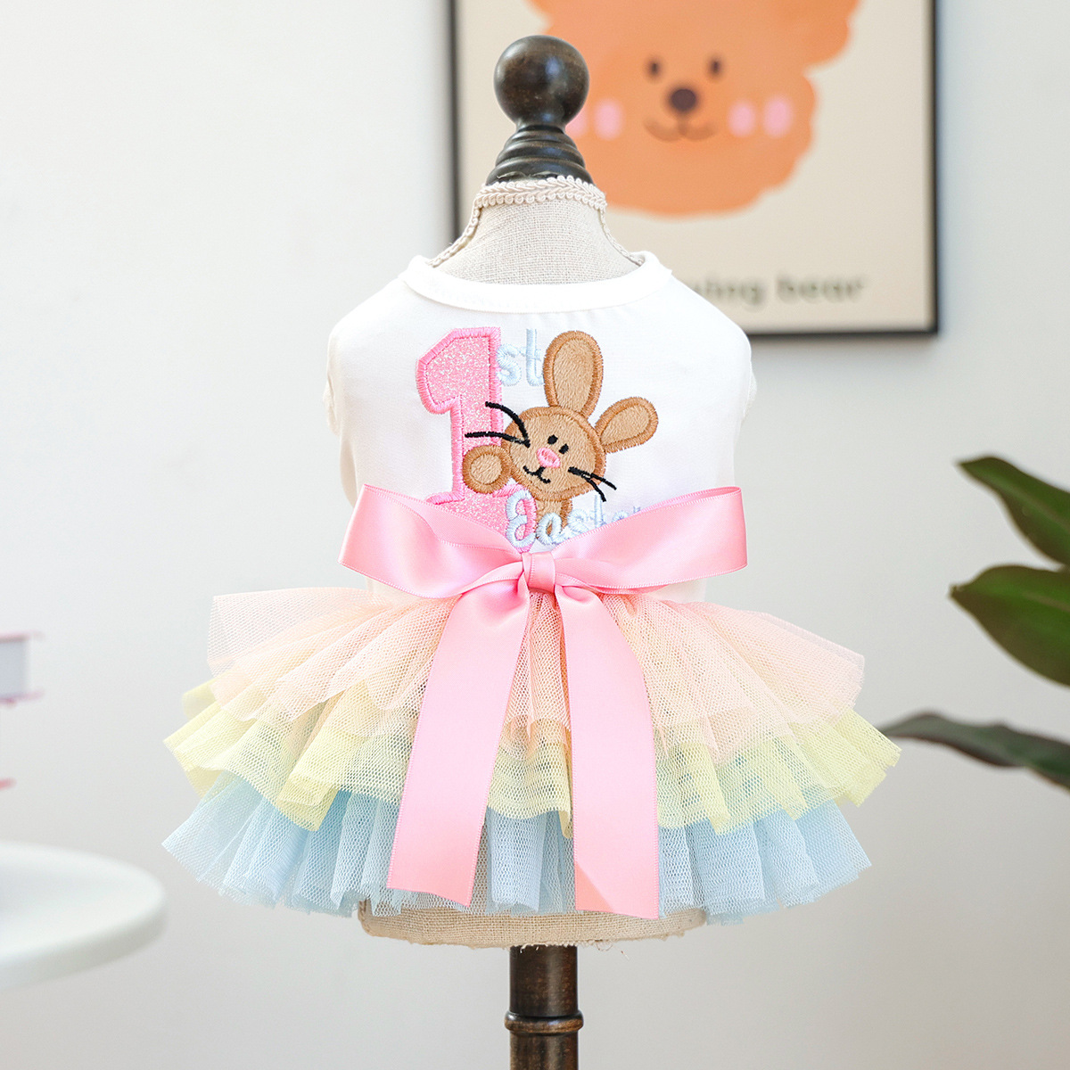 • 레인보우 토끼 부활절 쉬폰 드레스