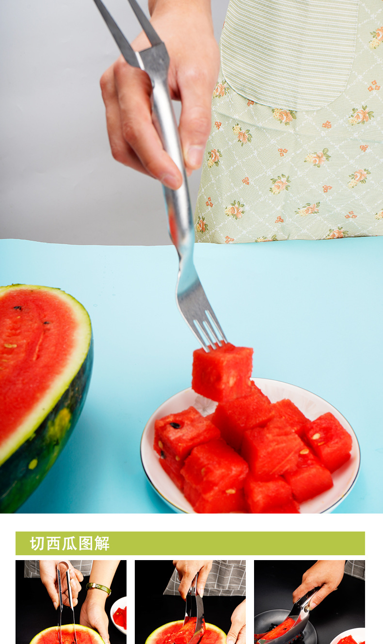 스테인레스 스틸 수박 절단 및 먹는 수박 유물 과일 오프닝 디바이더 과일 나이프 멋진 디바이더 다이싱스토어 가기